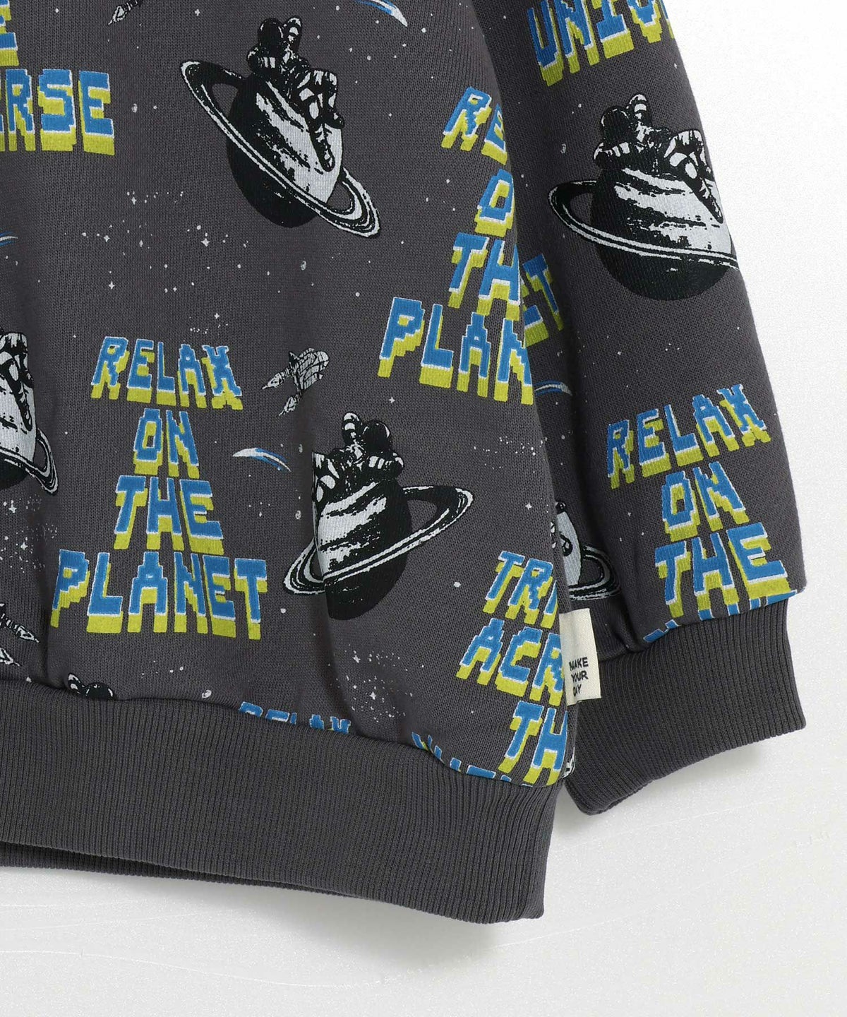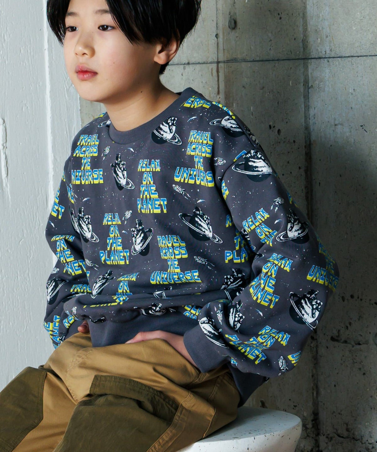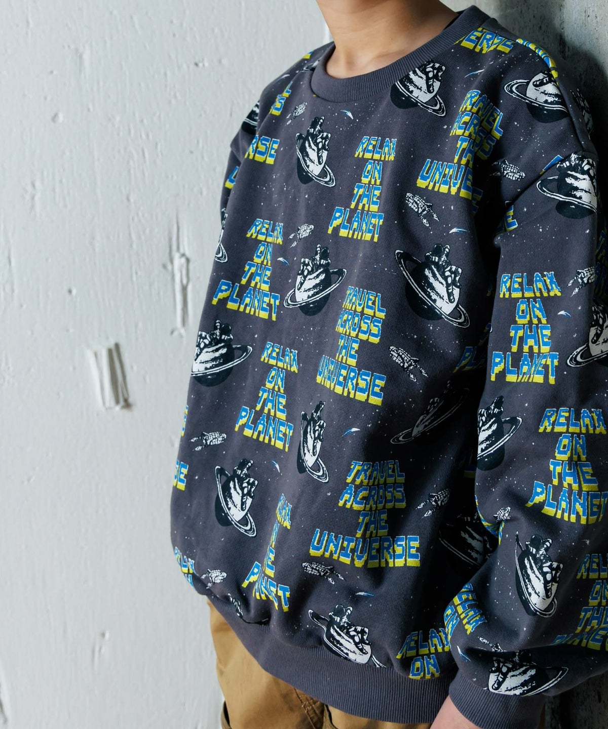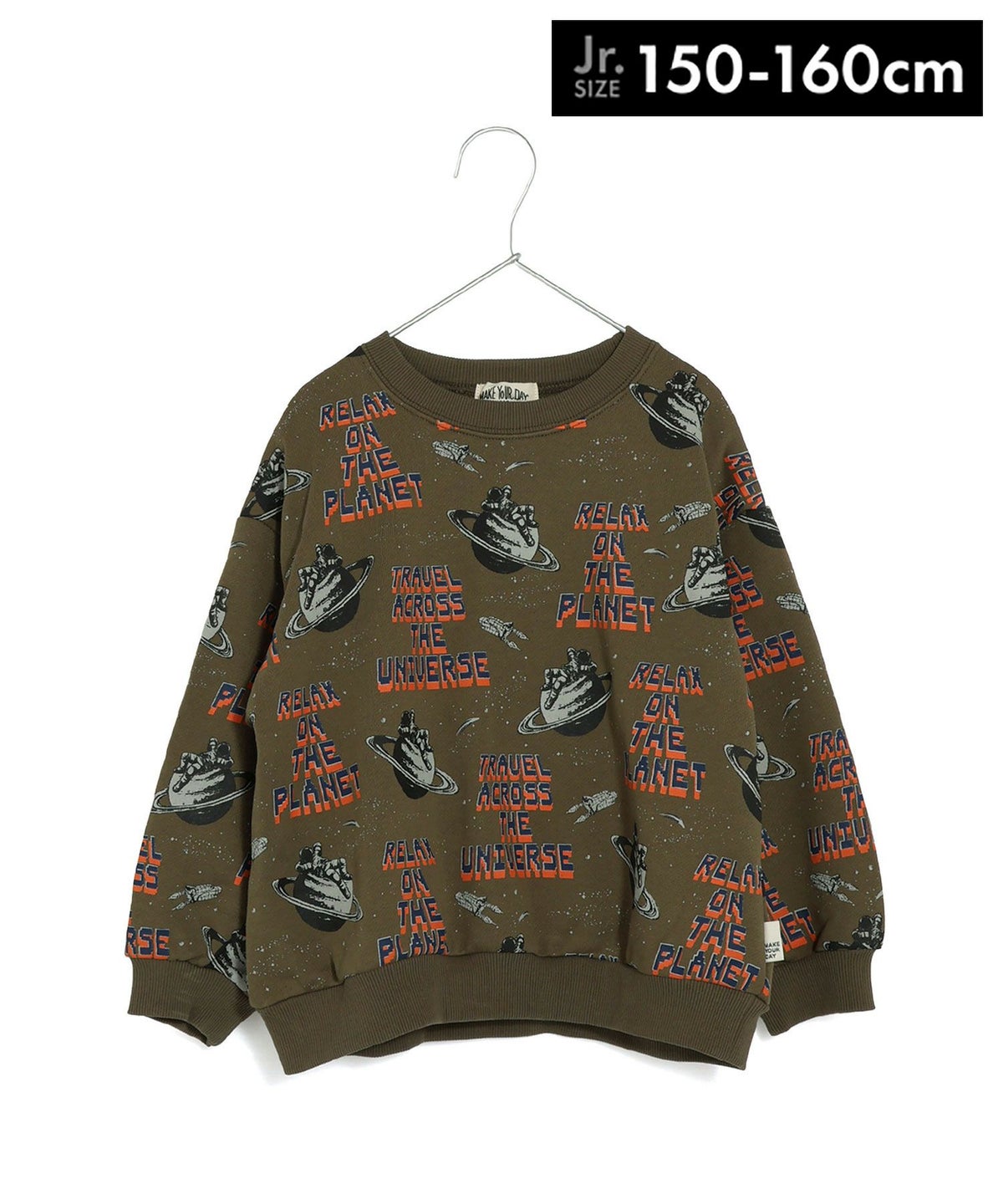 【セール】宇宙でひと休み総柄裏毛トレーナー■150.160cm