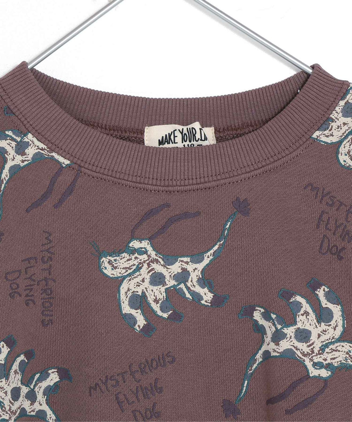 【セール】空飛ぶ犬総柄裏毛トレーナー■150.160cm