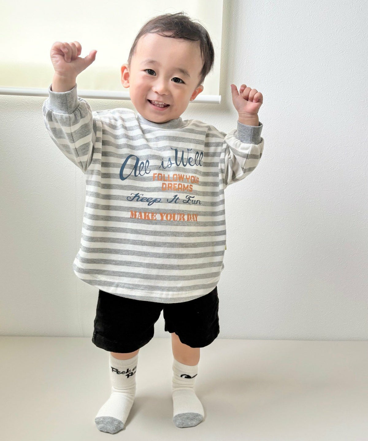 【セール】前後着用できるボーダー長袖Tシャツ■80~140cm
