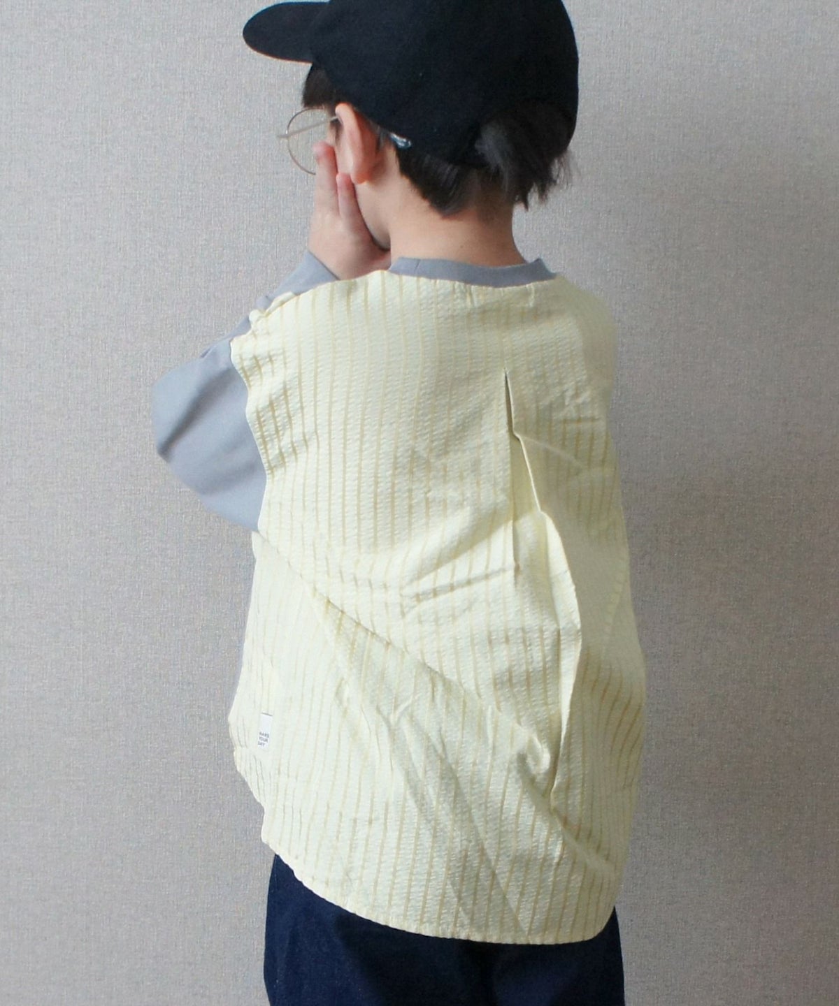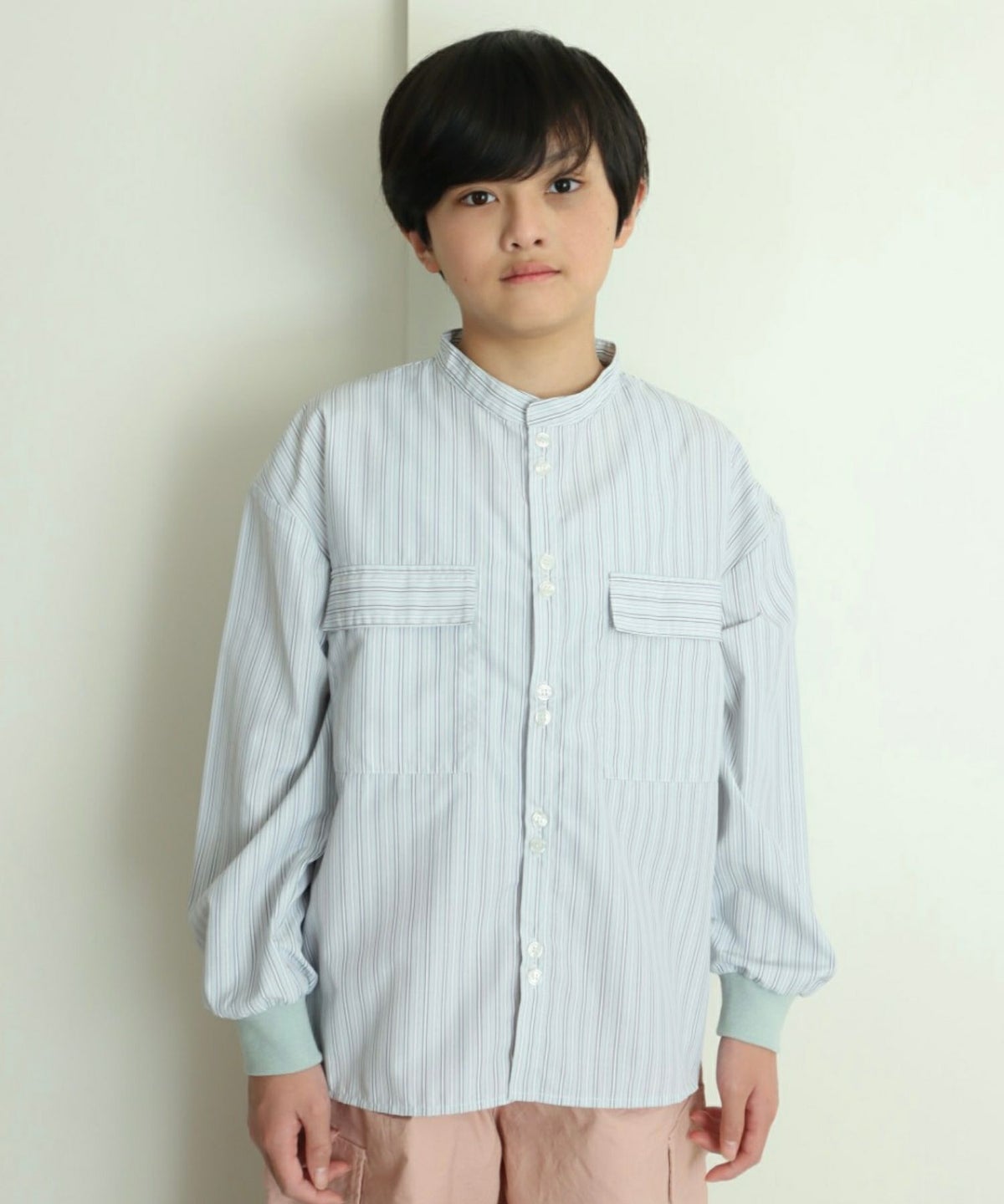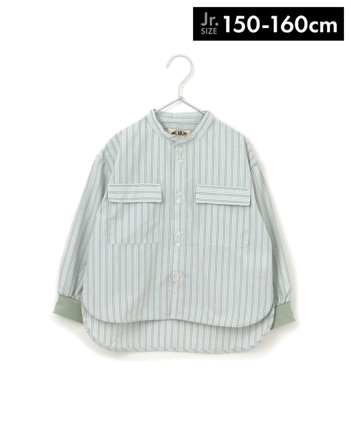 【セール】無地とストライプのバンドカラーシャツ■150.160cm