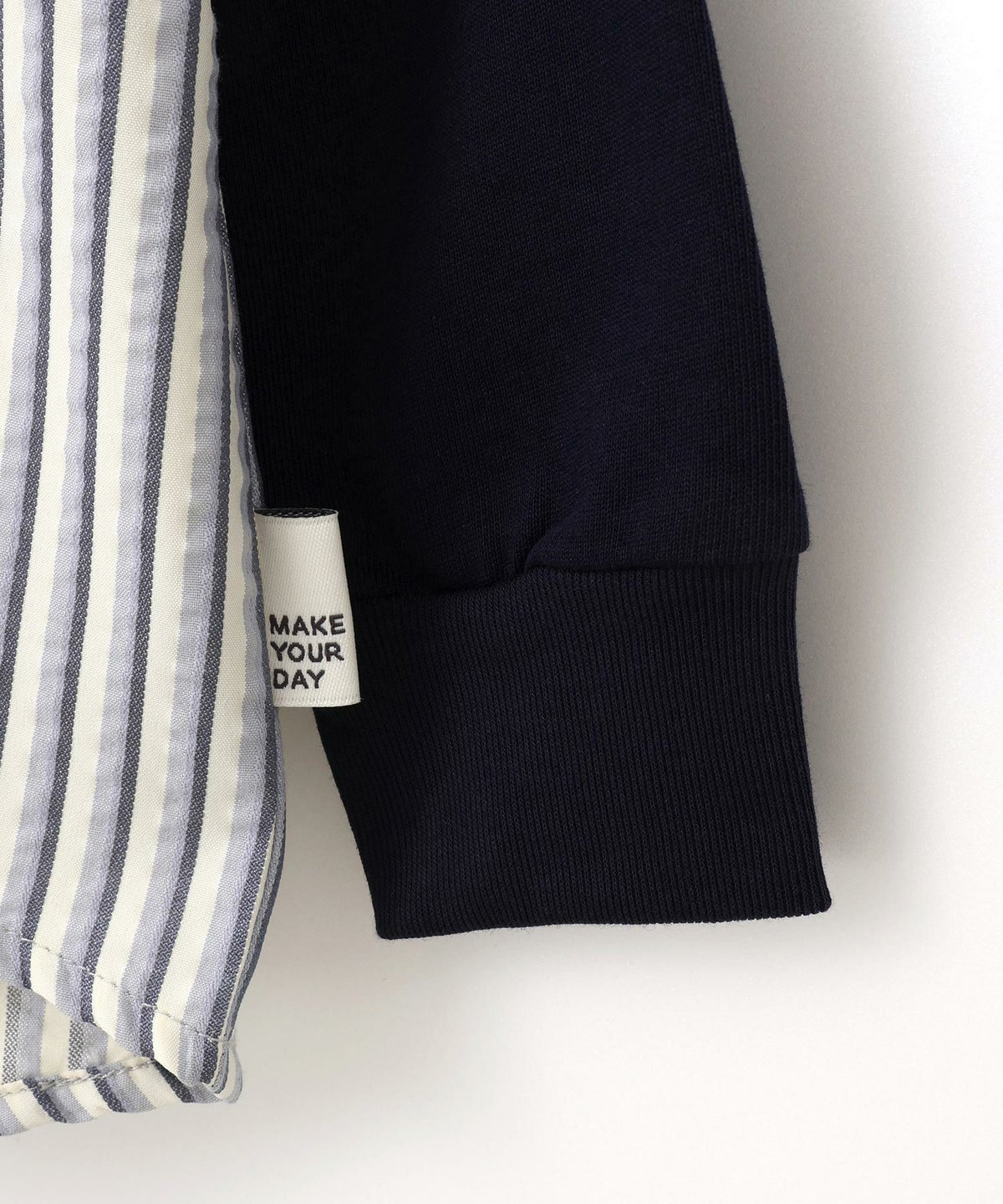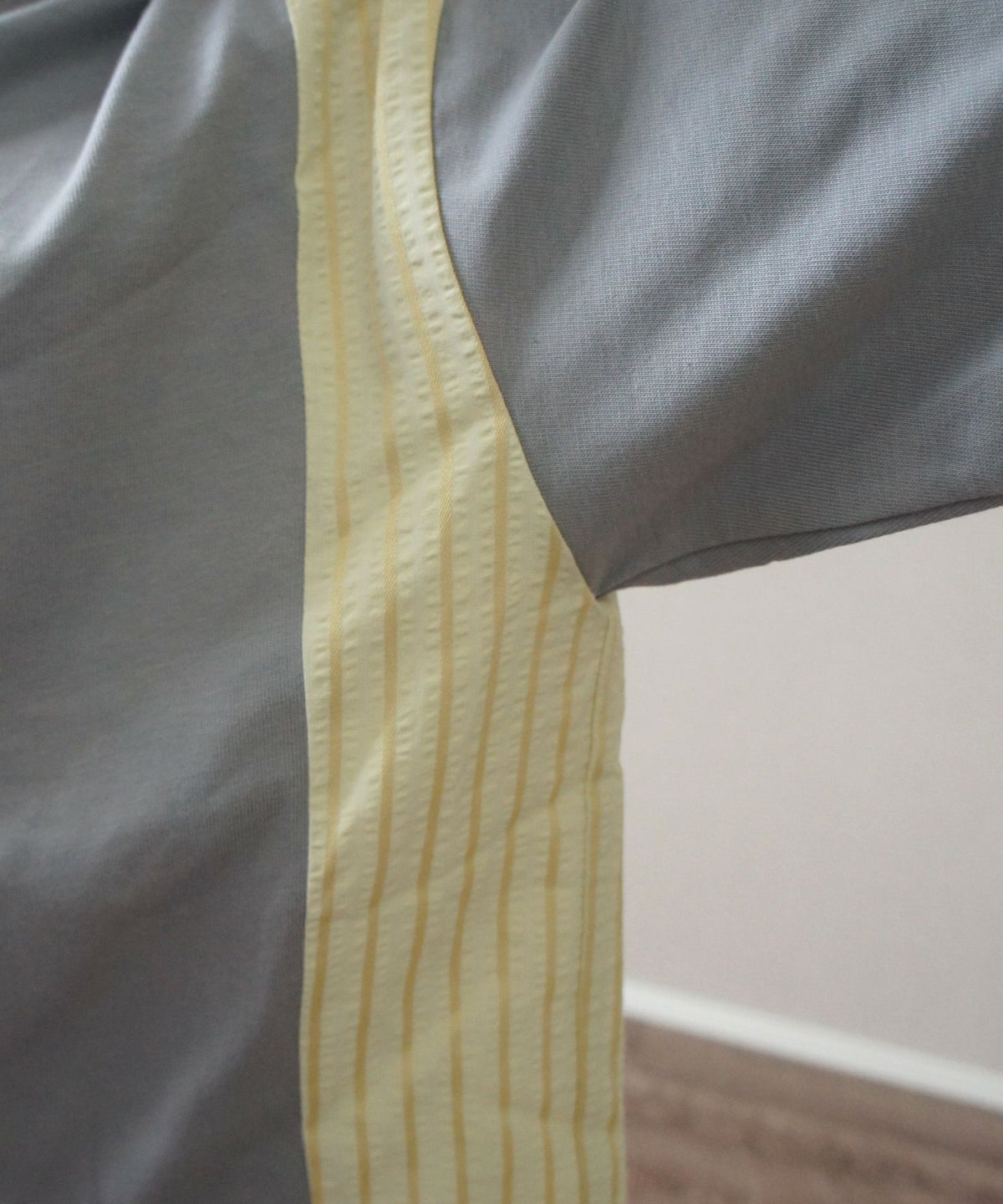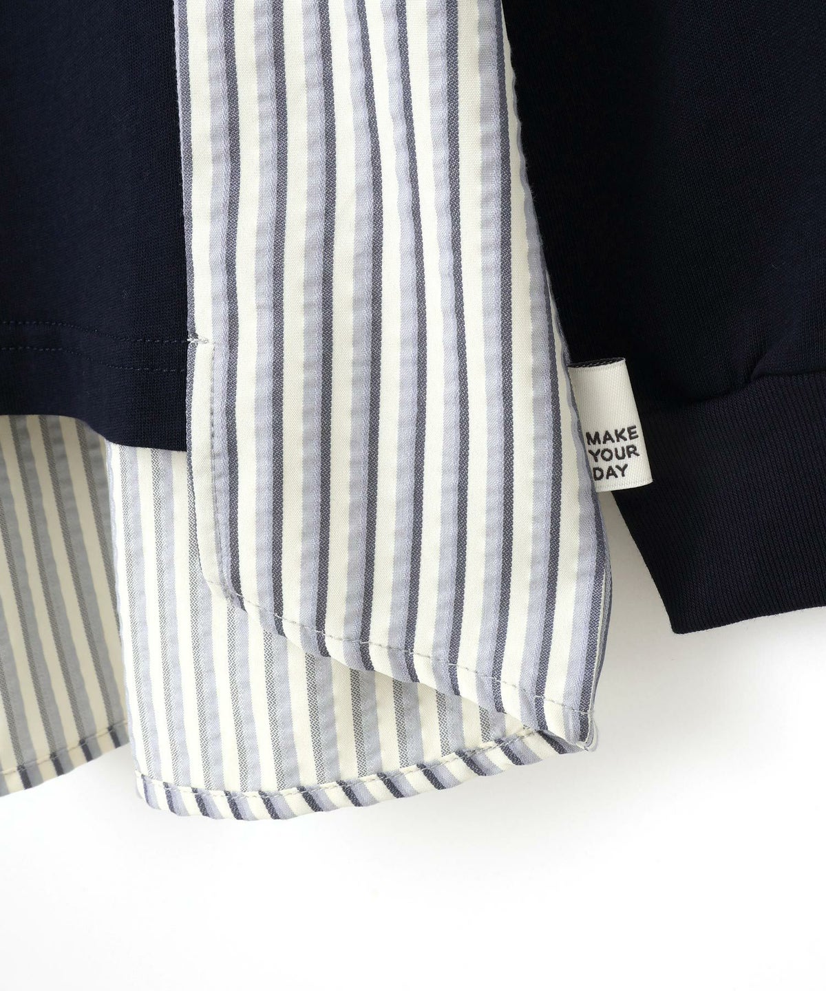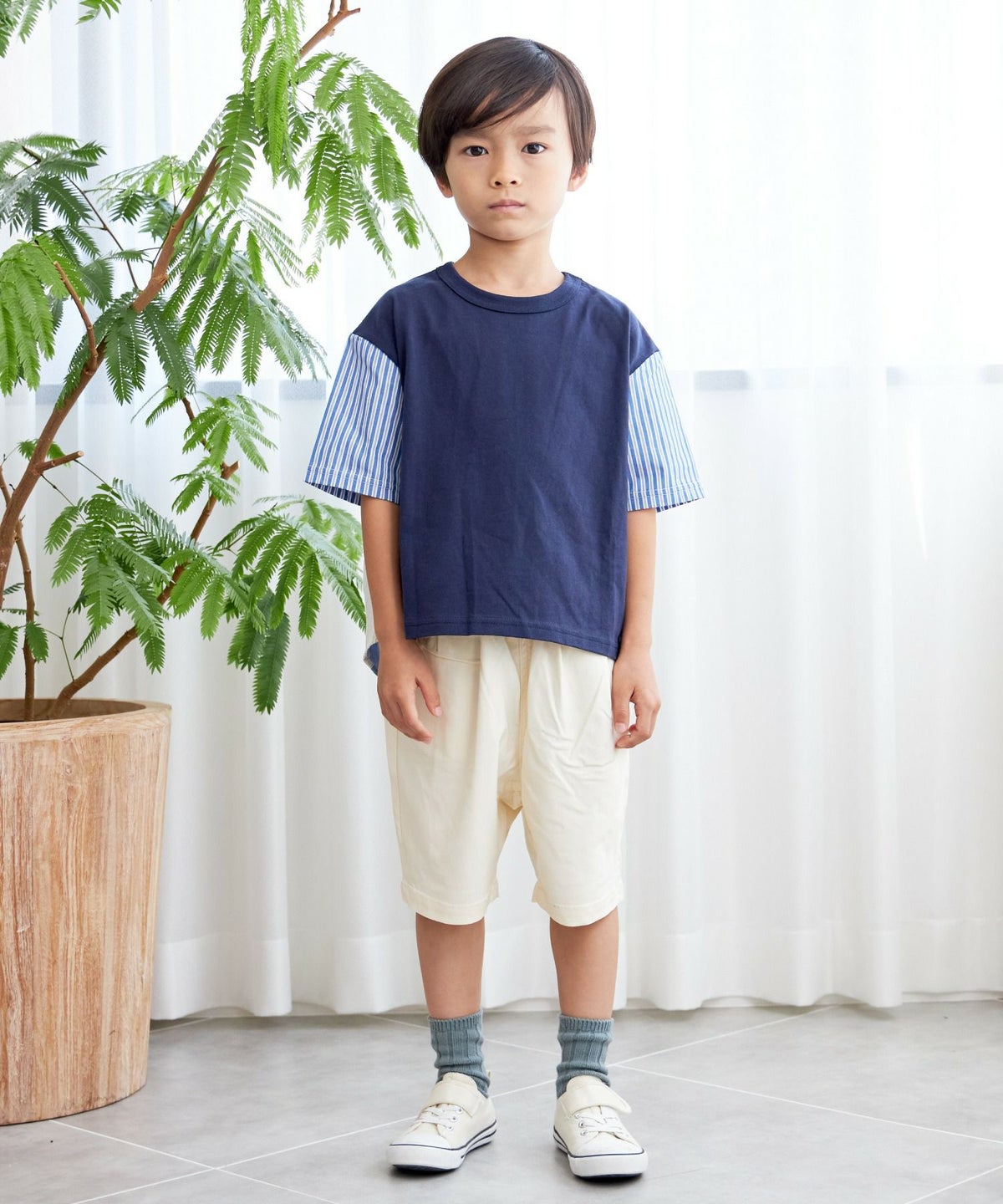 【セール】無地とストライプのバンドカラーシャツ■150.160cm