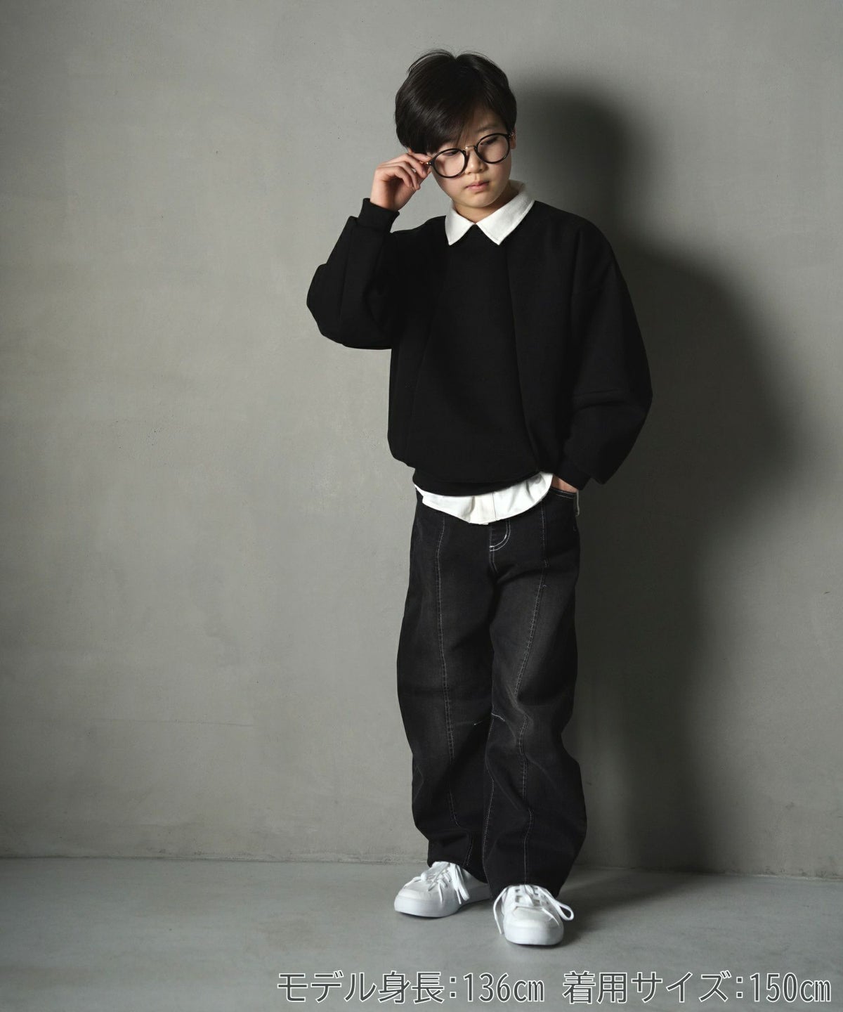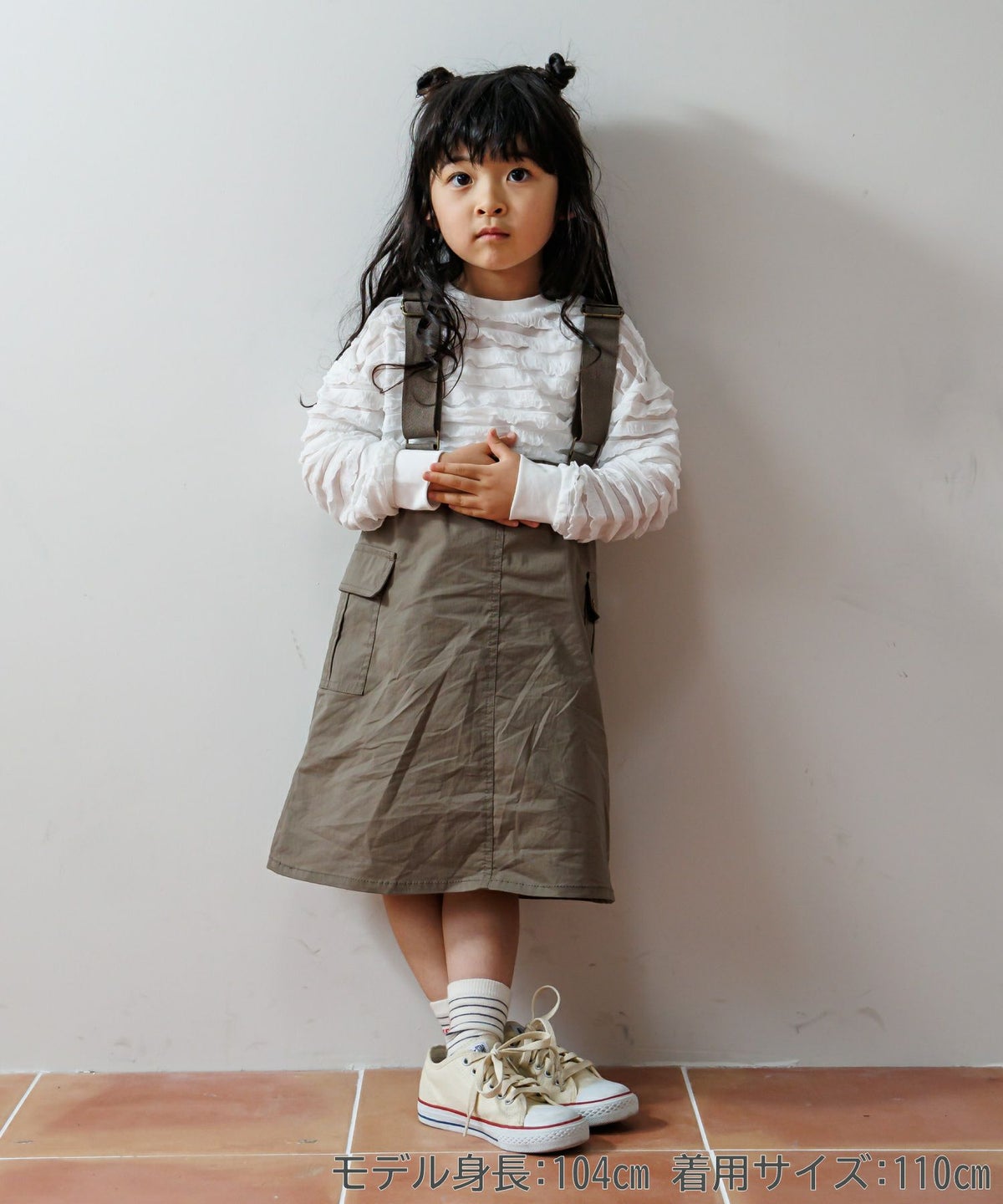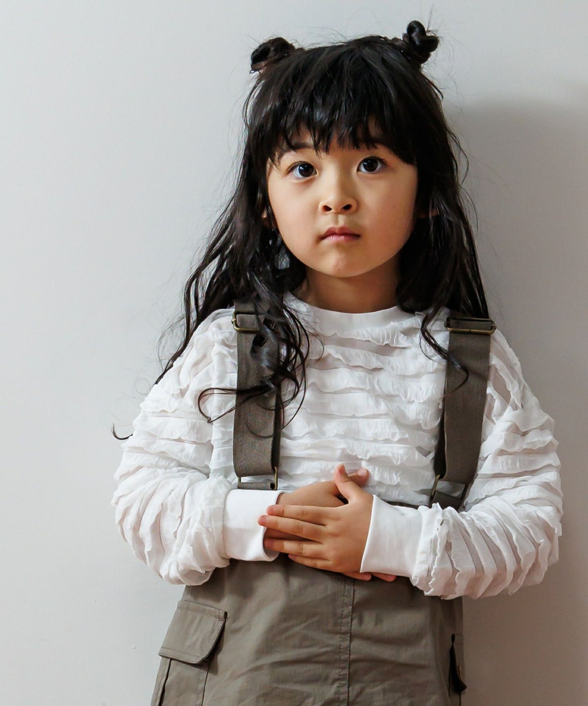 【セール】異素材フリルカラー長袖Tシャツ■150.160cm