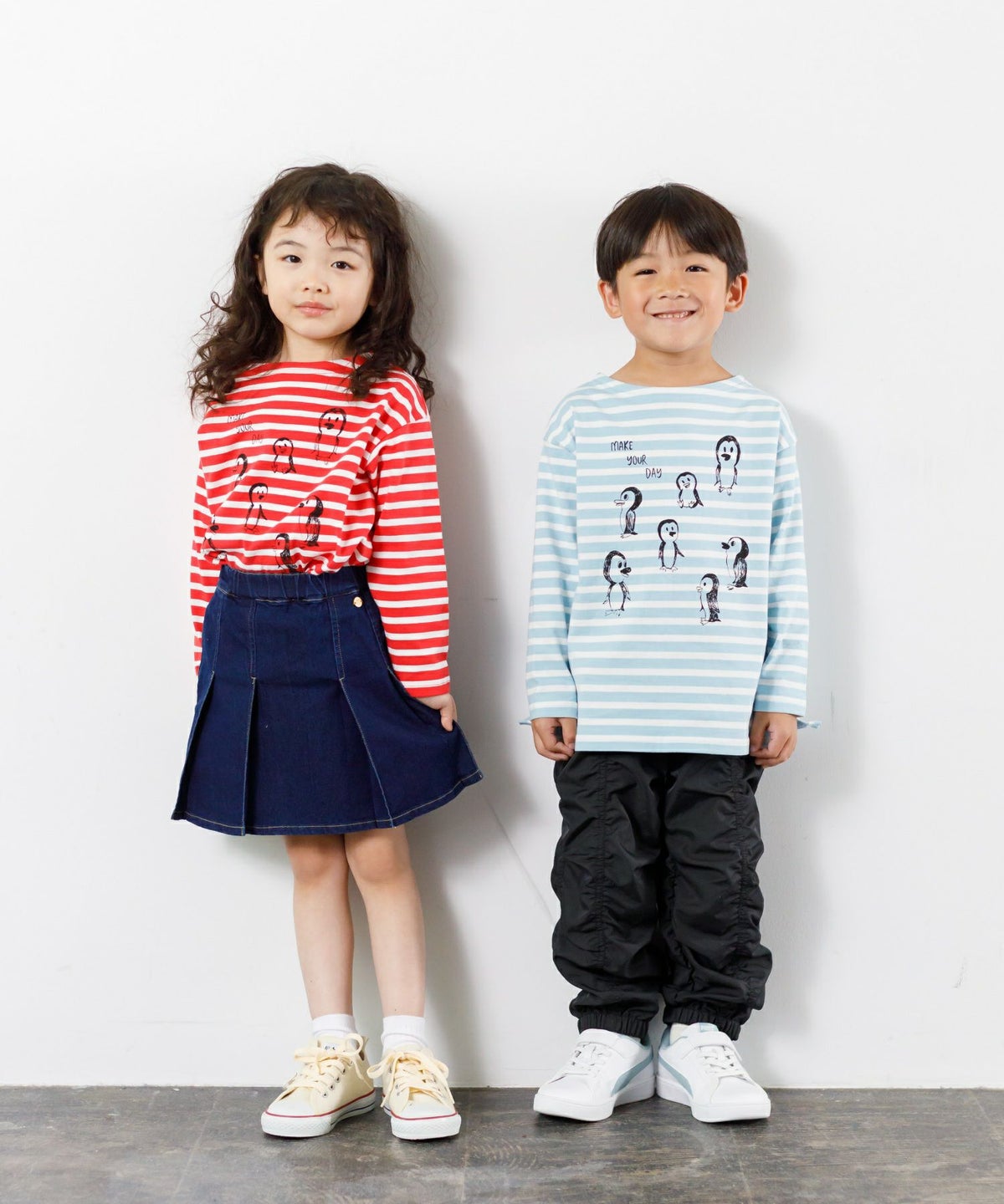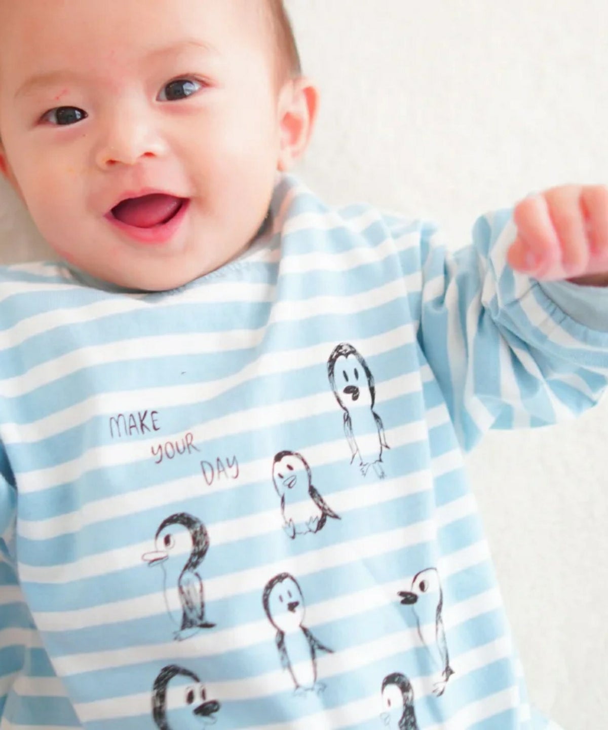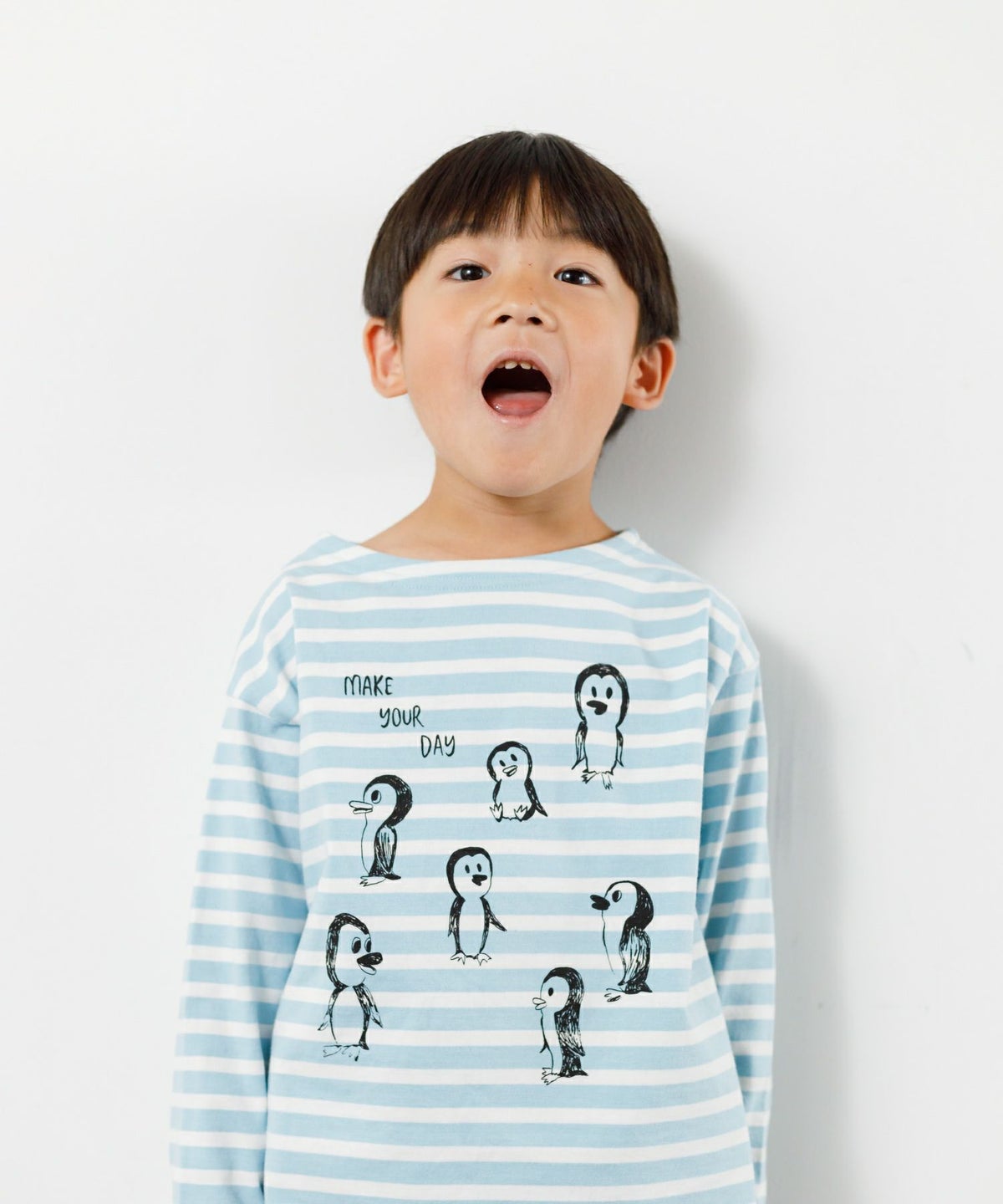 【セール】ペンギンボーダー長袖Tシャツ■80~140cm