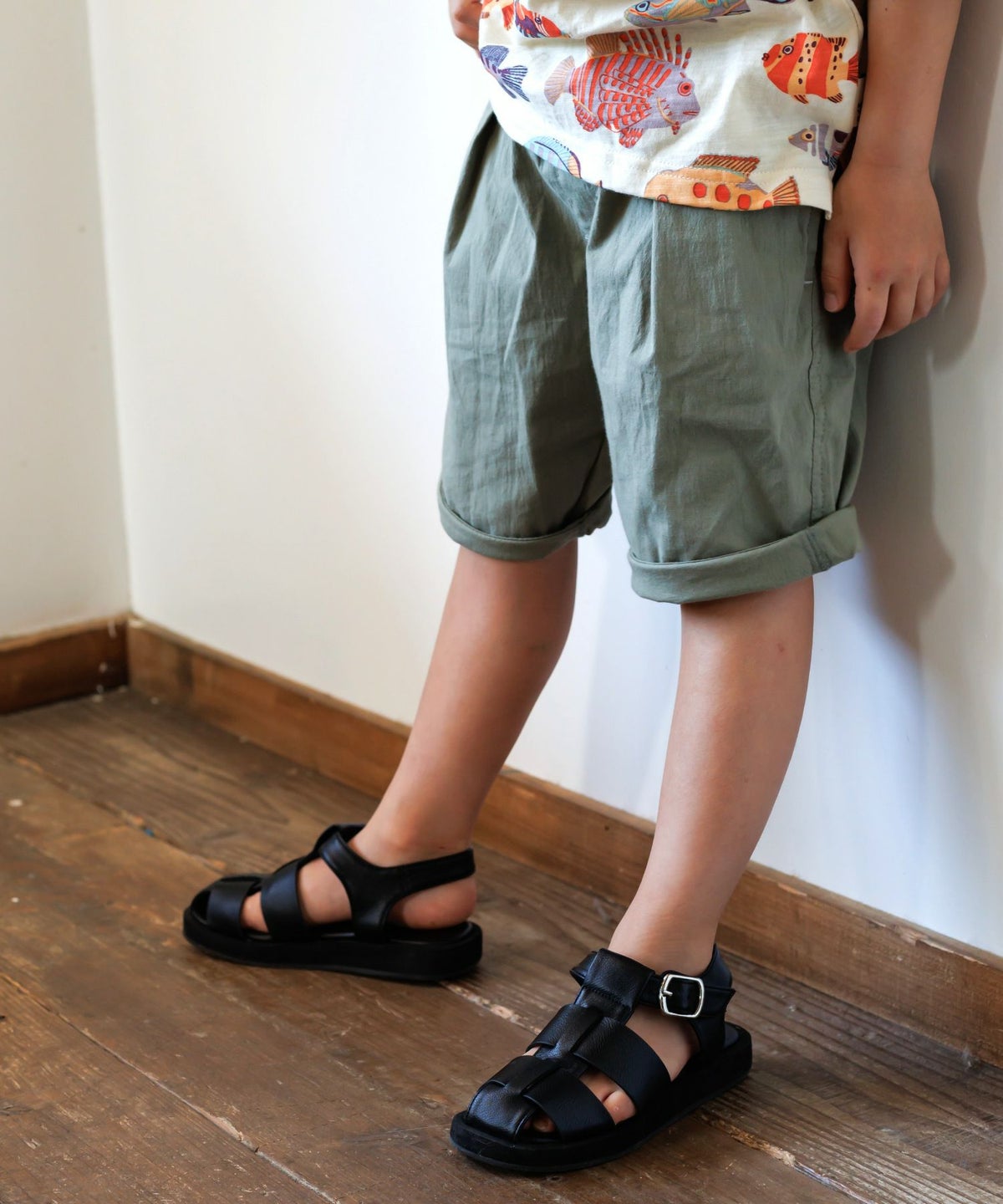 【セール】スーパーストレッチ5.5分丈タックパンツ■90~140cm