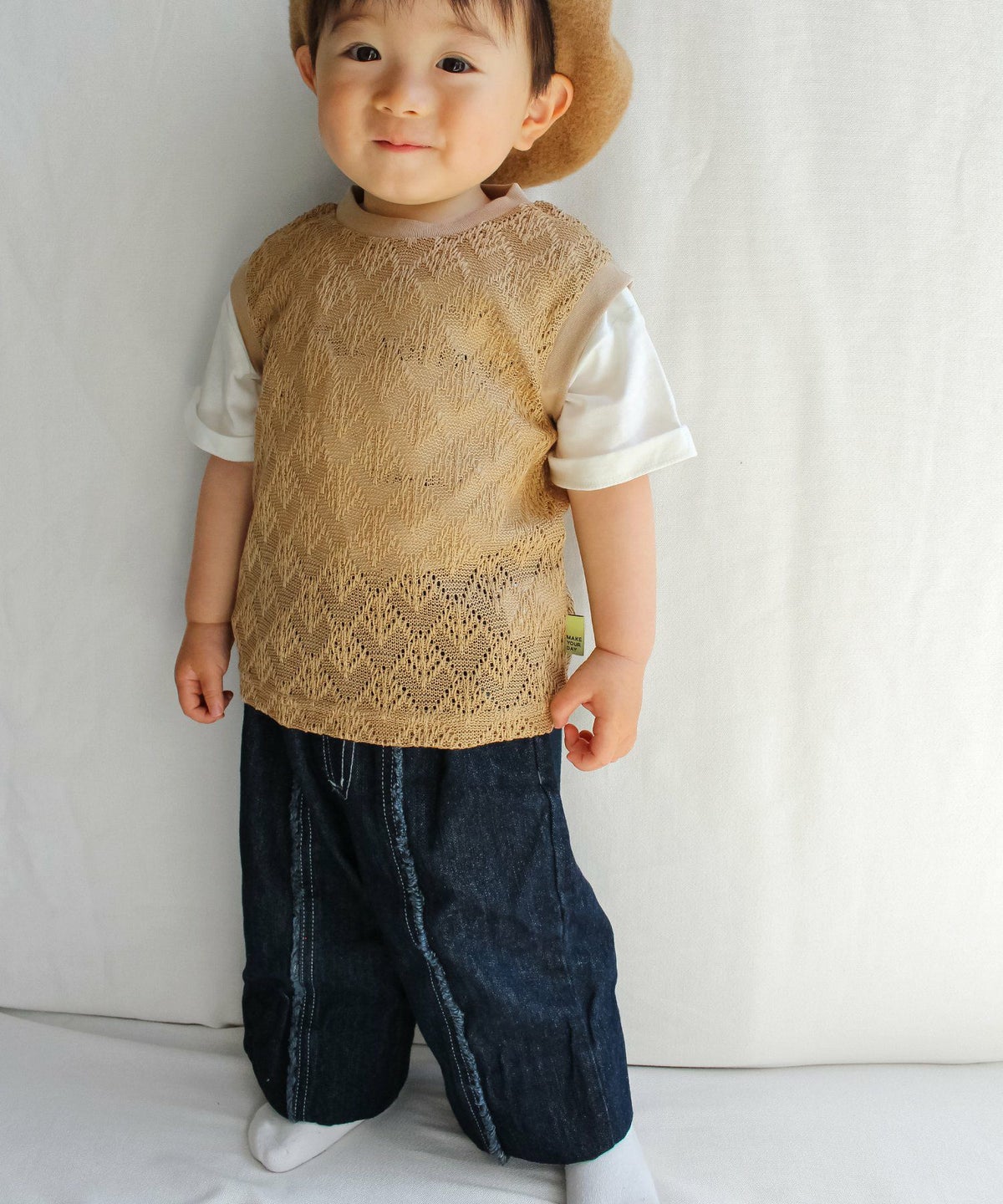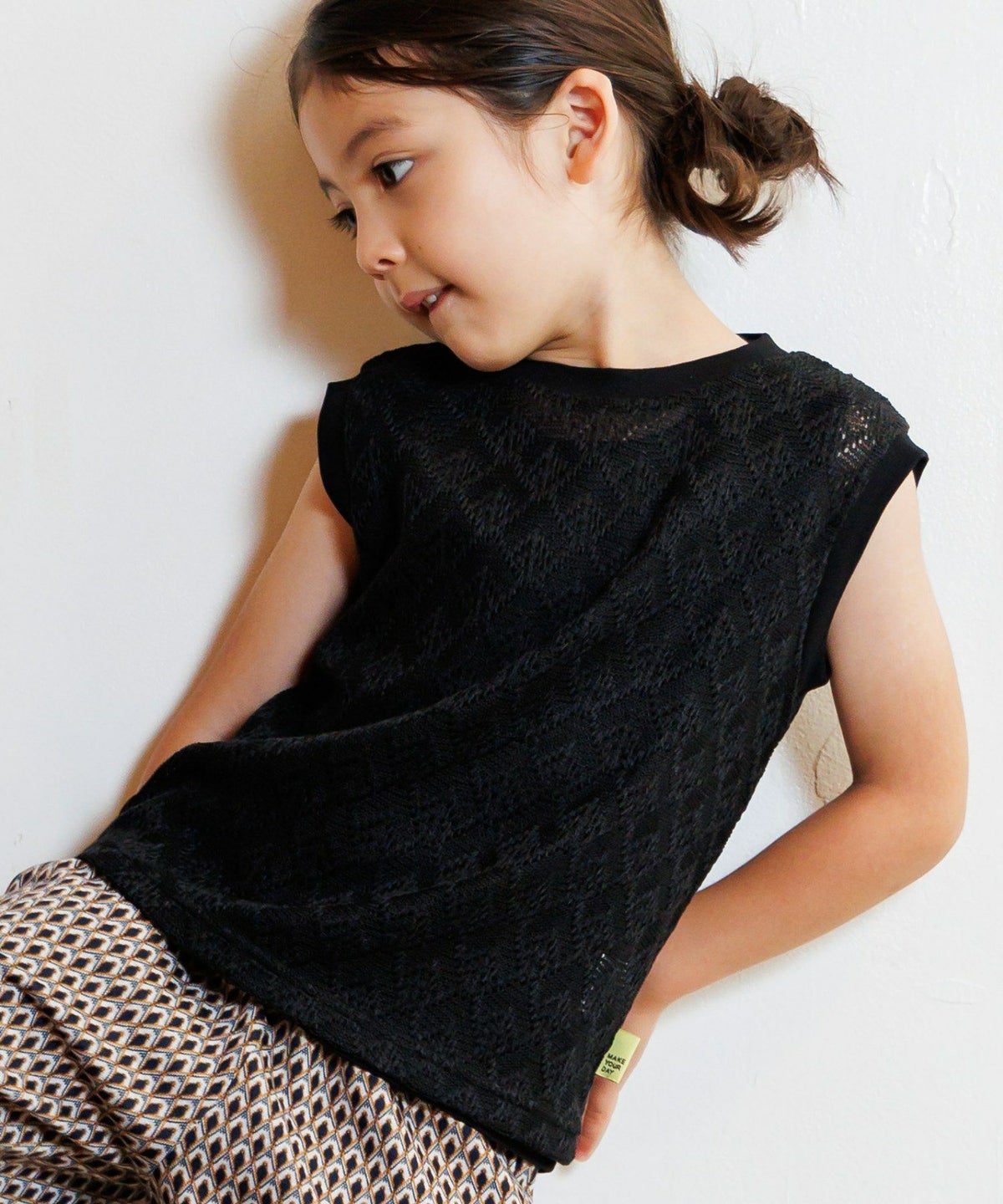 【セール】ママとおそろい なみなみシアーレース長袖Tシャツ■80~140cm