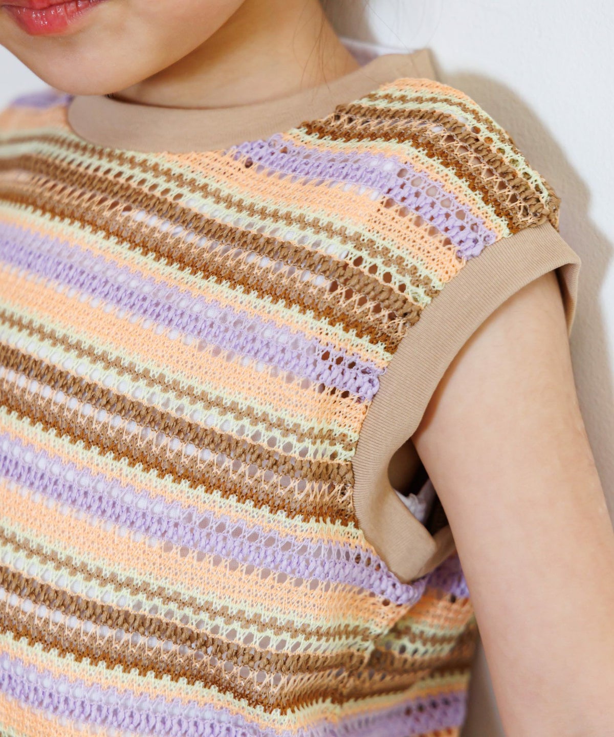 【セール】レイヤード風シアー長袖Tシャツ■150.160cm