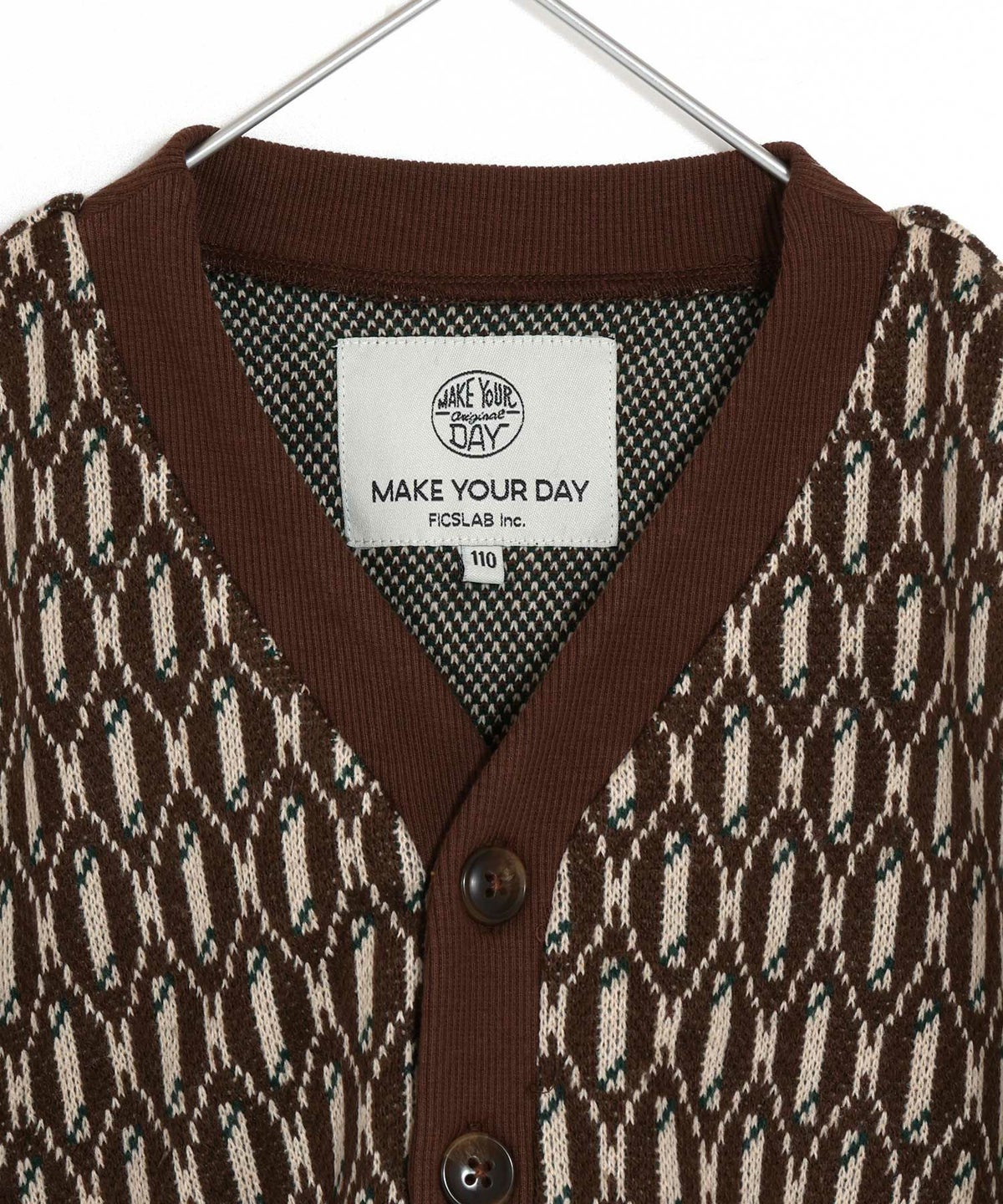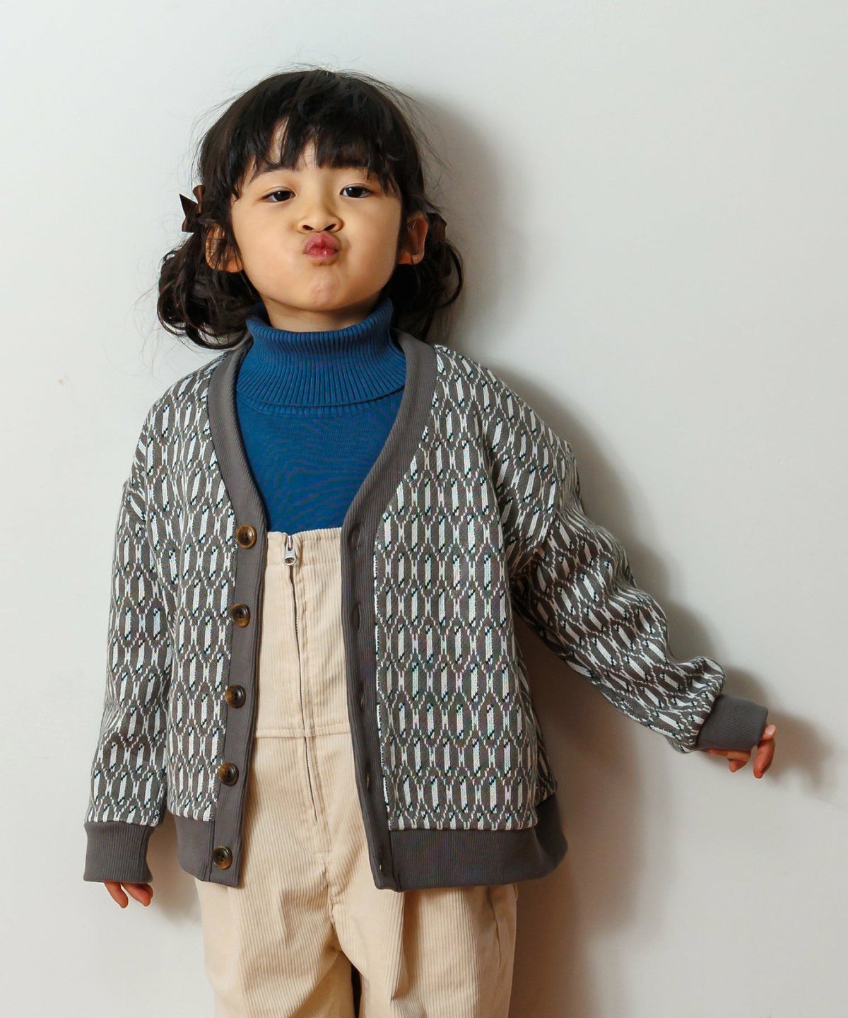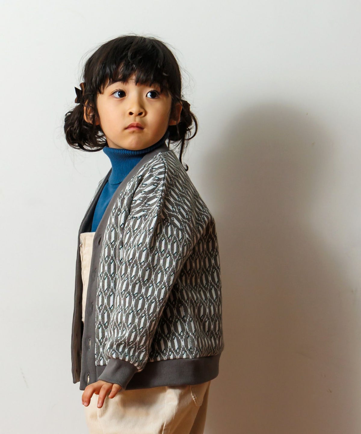 【セール】幾何学柄ジャガードカーディガン■80~140cm