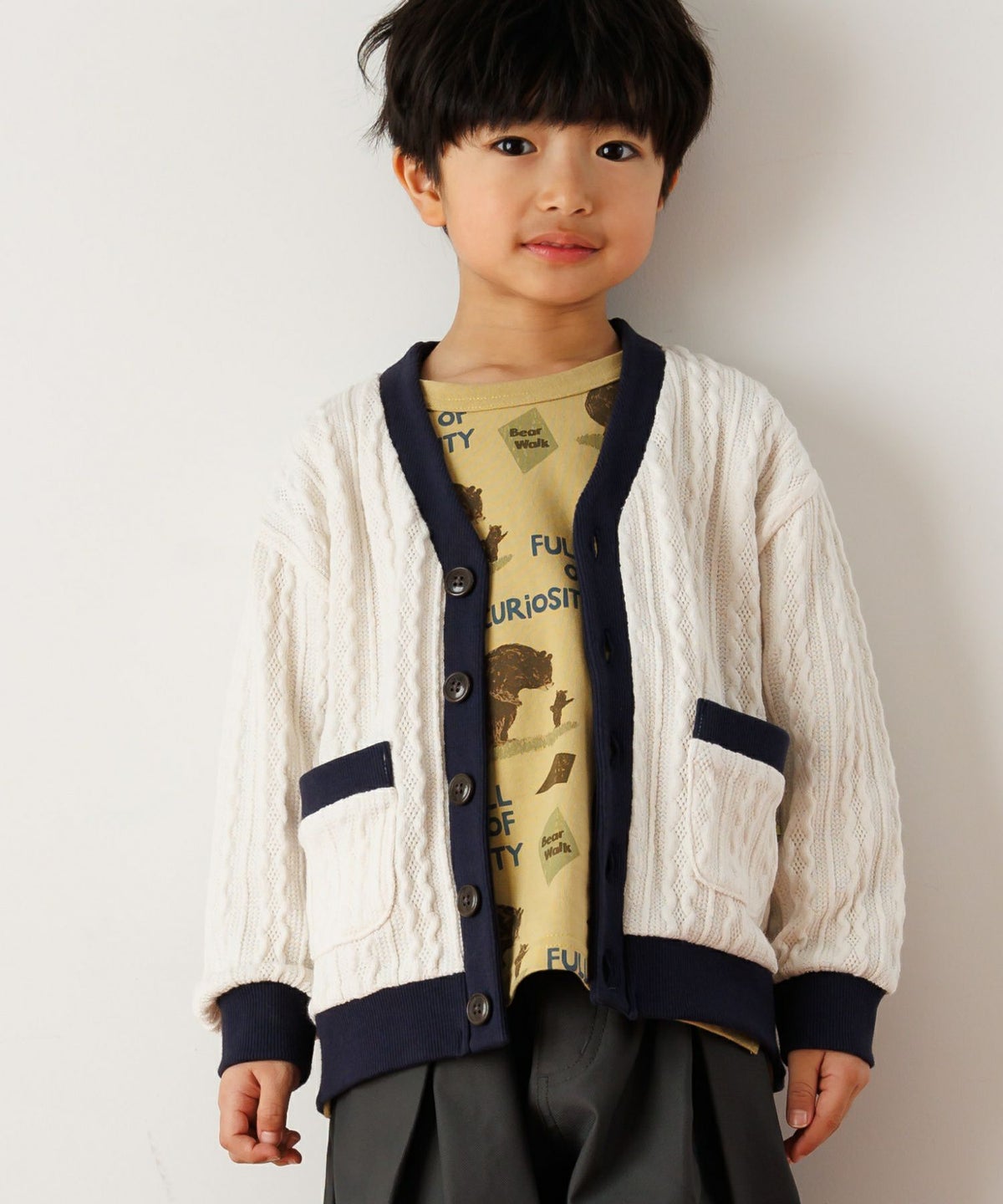 【セール】ケーブルニットソーカーディガン■80~140cm
