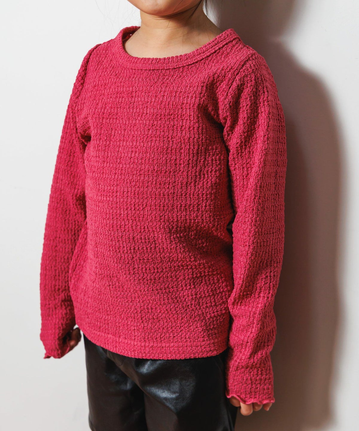【セール】無地ジャガード長袖Tシャツ■80~140cm