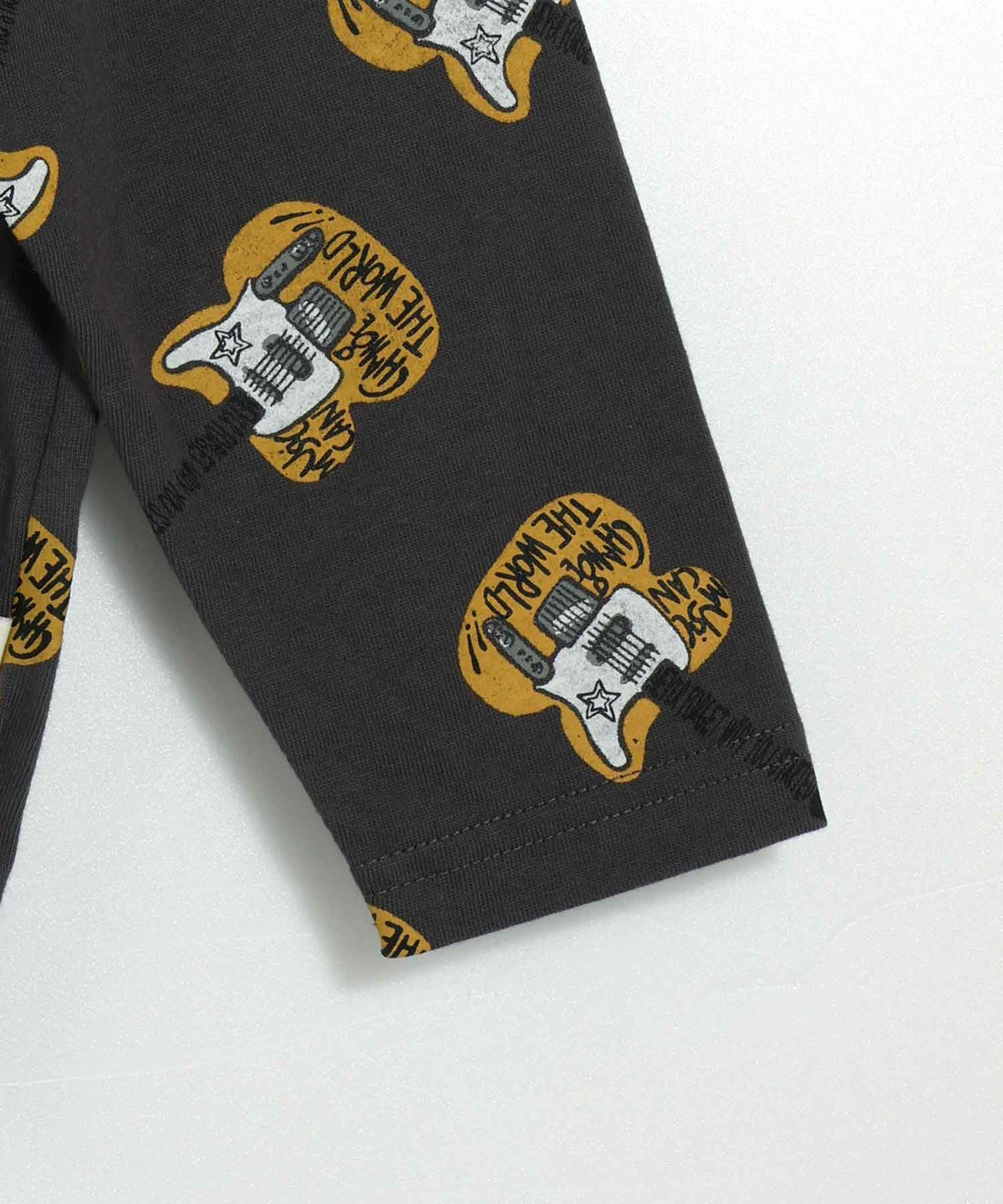 【セール】エレクトリックギター総柄長袖Tシャツ■150.160cm