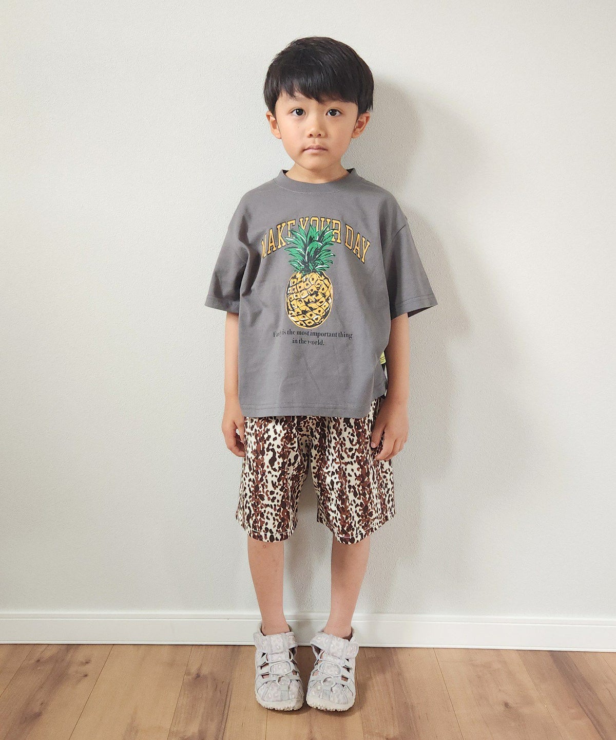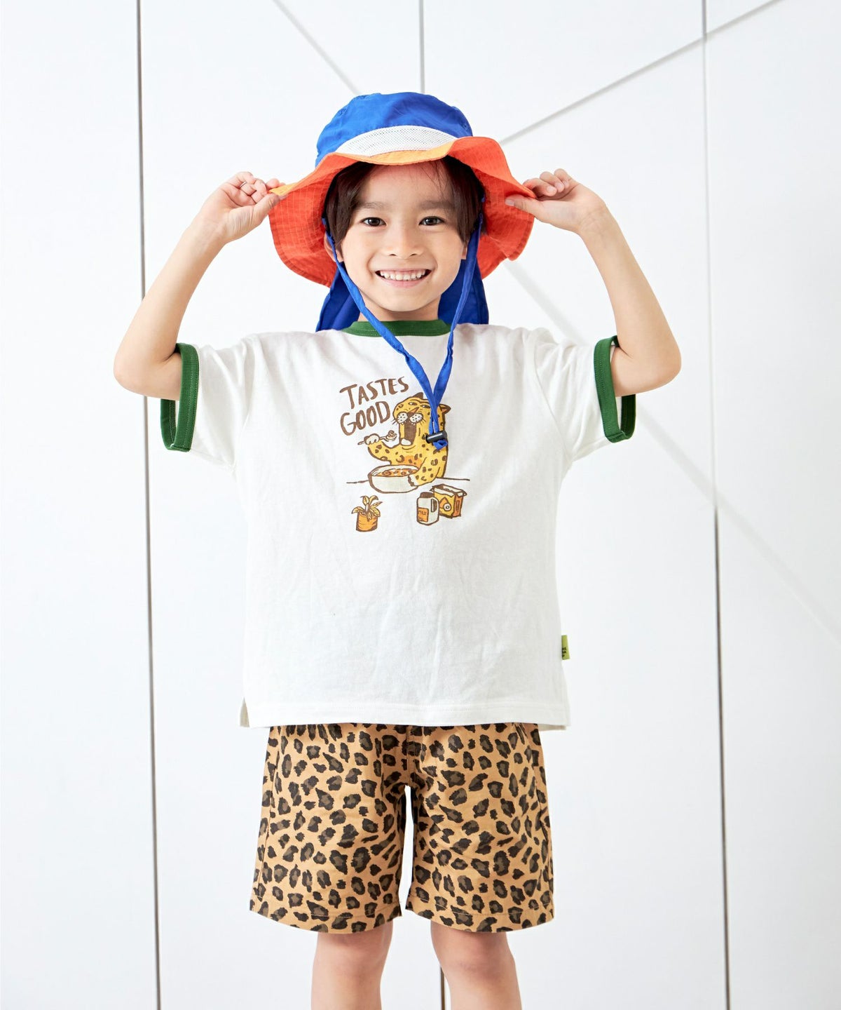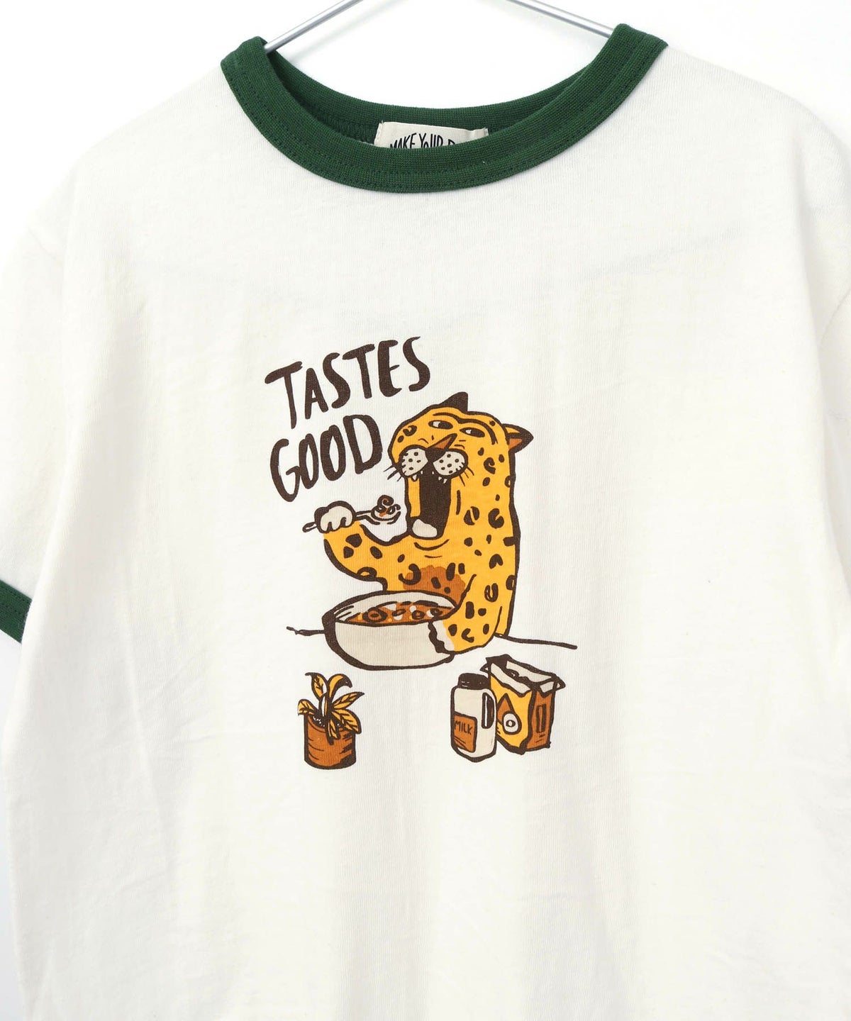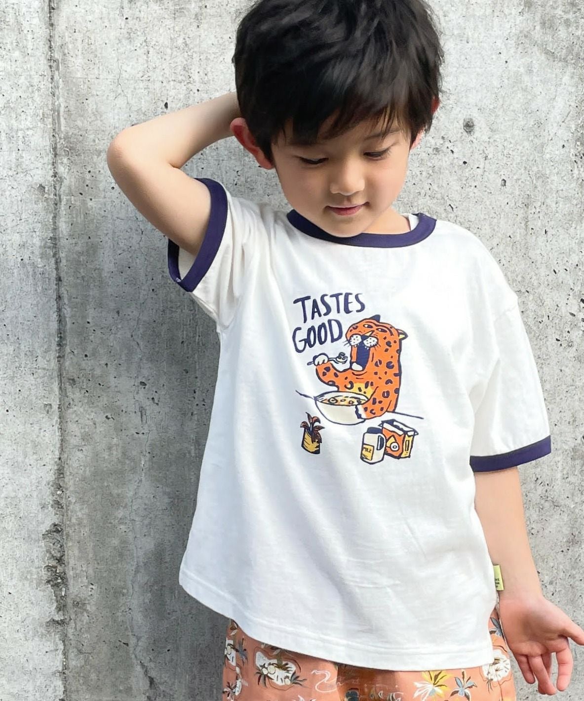 【セール】ヒョウの朝ごはんリンガー半袖Tシャツ■80~140cm