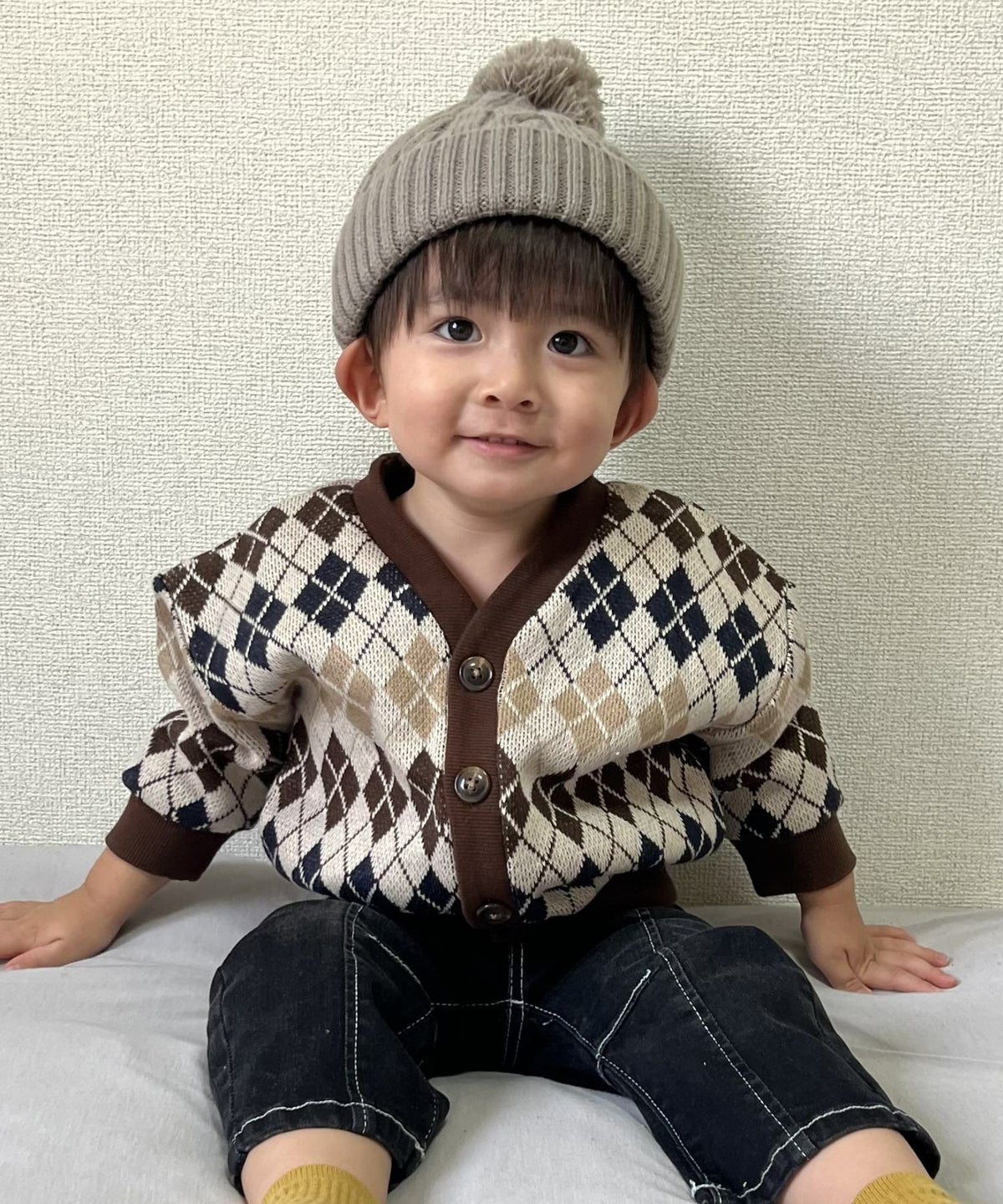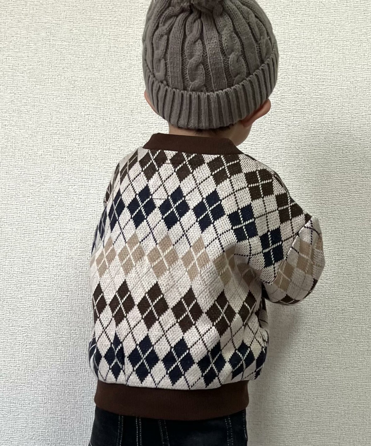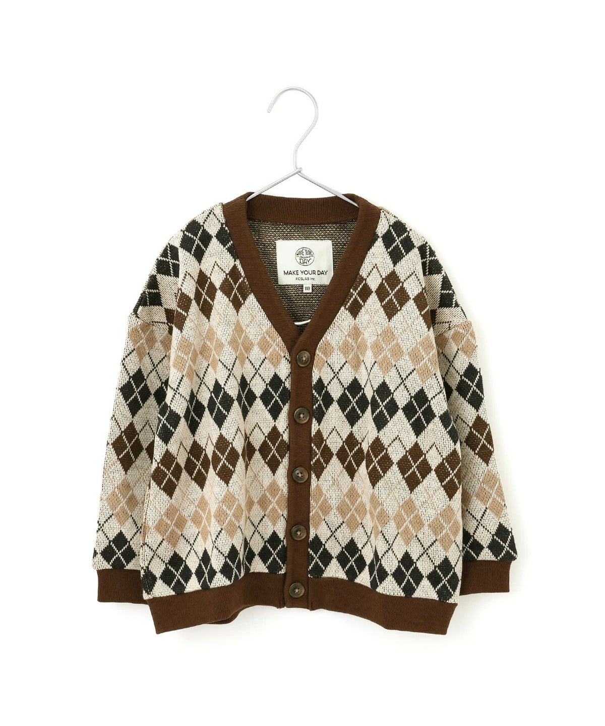 【セール】アーガイルとドットのジャガードカーディガン■80~140cm