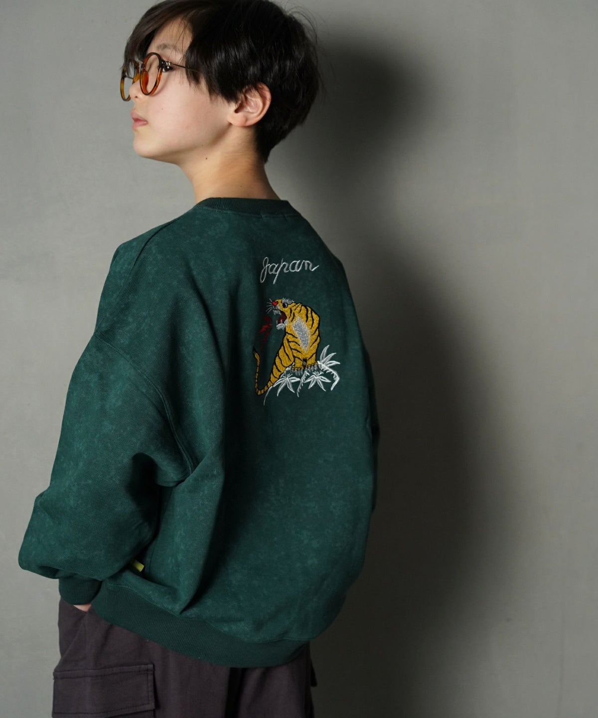 【セール】スカジャン風トラ刺繍裏毛トレーナー■150.160cm