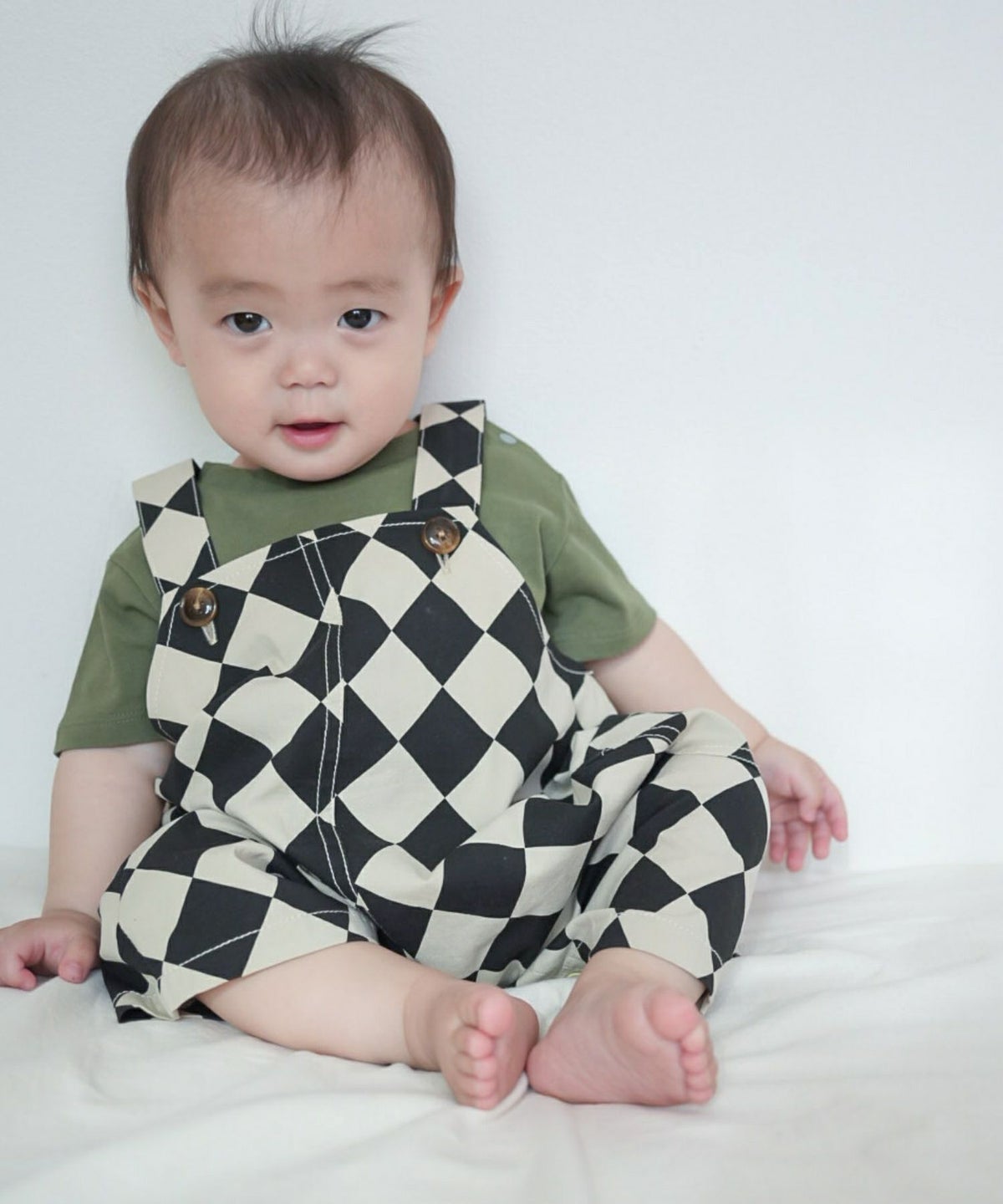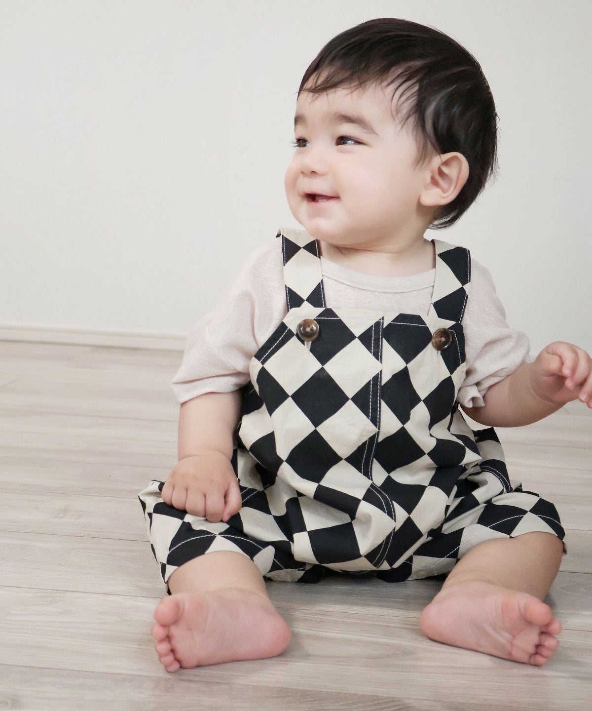 【セール】ダイヤ柄ベビーショートオール