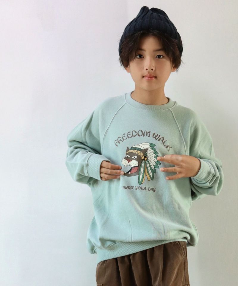 プリントに目が行きがちだけど、ラグランの切り替えやドルマンスリーブになっているデザインなど形もかわいいおしゃれなトレーナーです。
