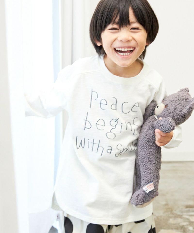 おこどもさんが一生懸命書いたような、今の時代にぐっとくるメッセージをプリントにしたロンT。