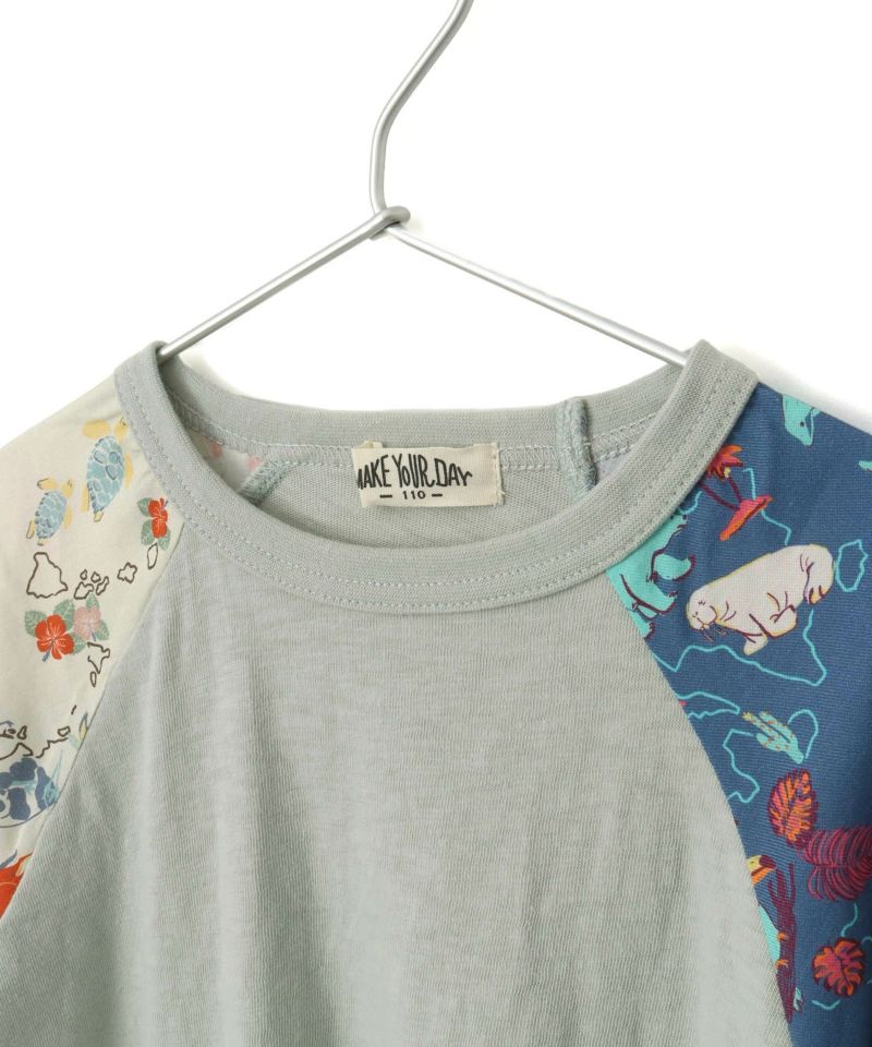 【セール】袖素材切替ラグラン半袖Tシャツ■90~140cm