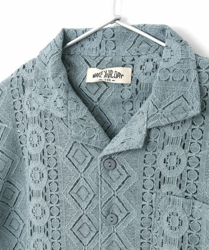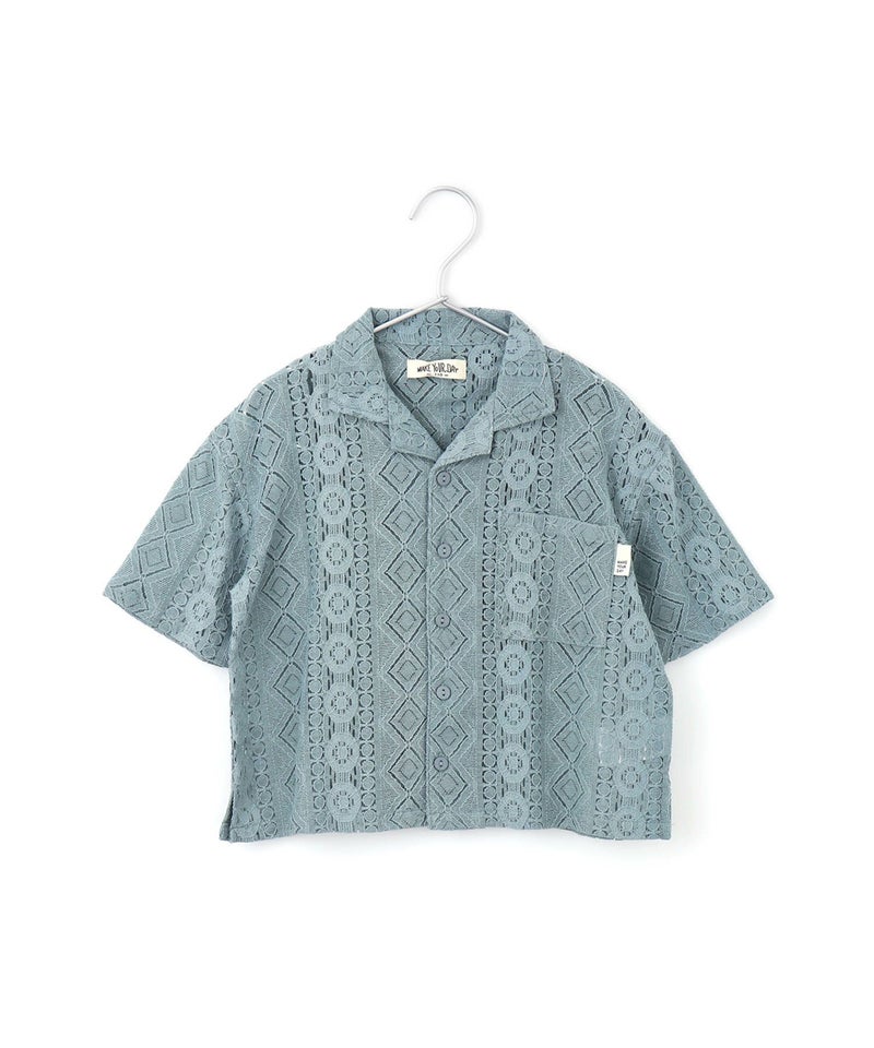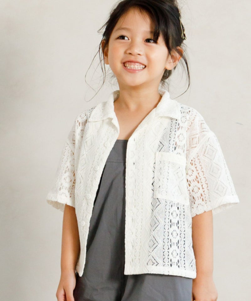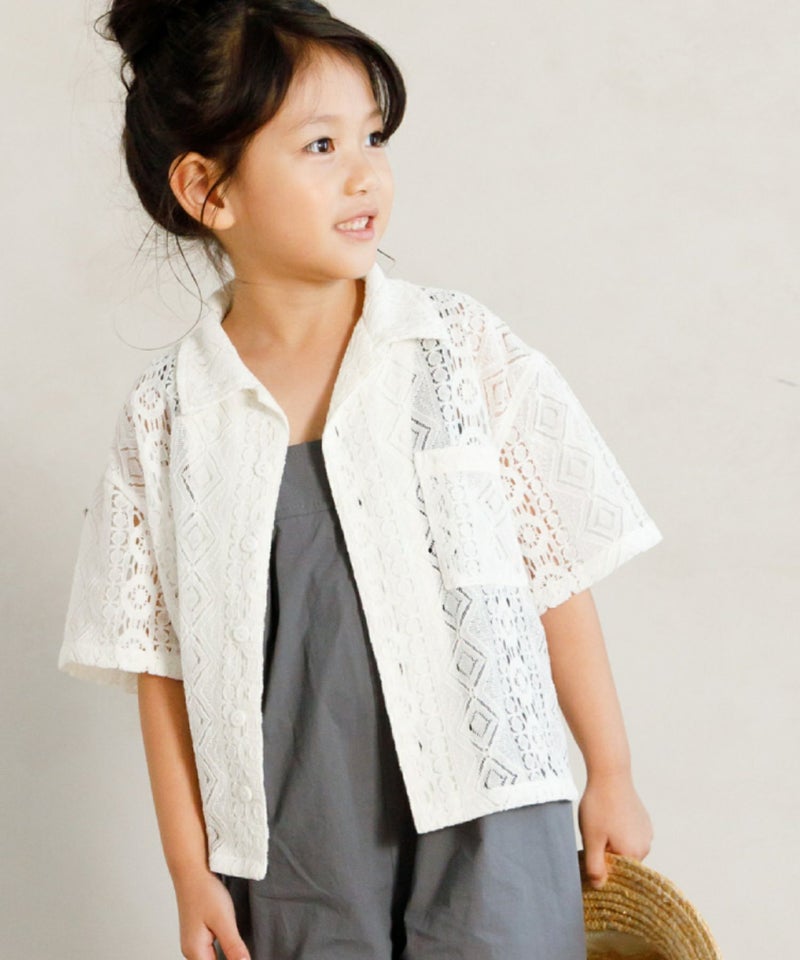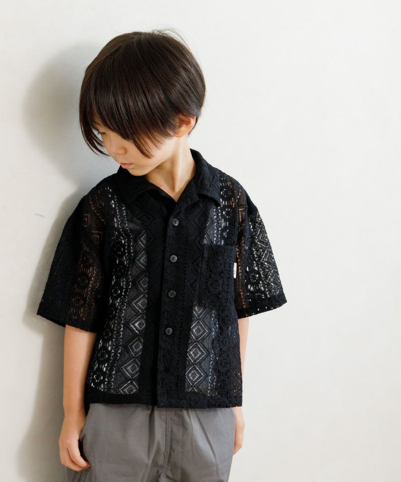 【セール】レース半袖オープンカラーシャツ■90~140cm
