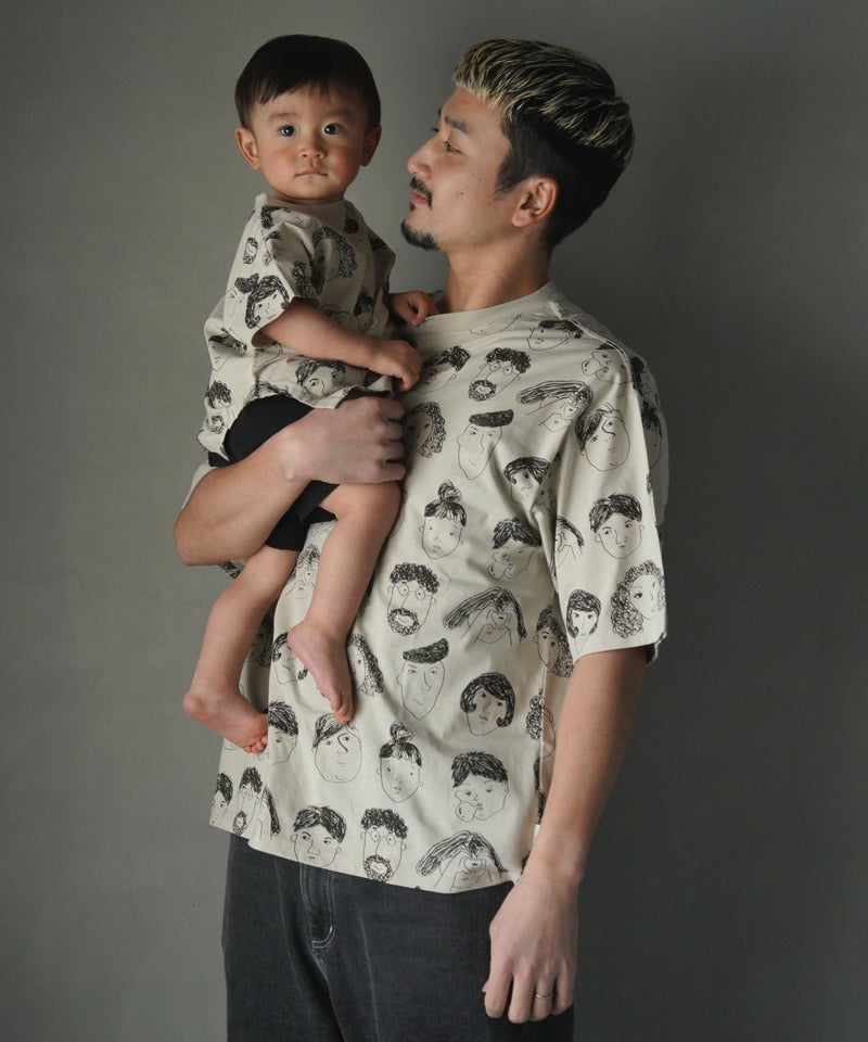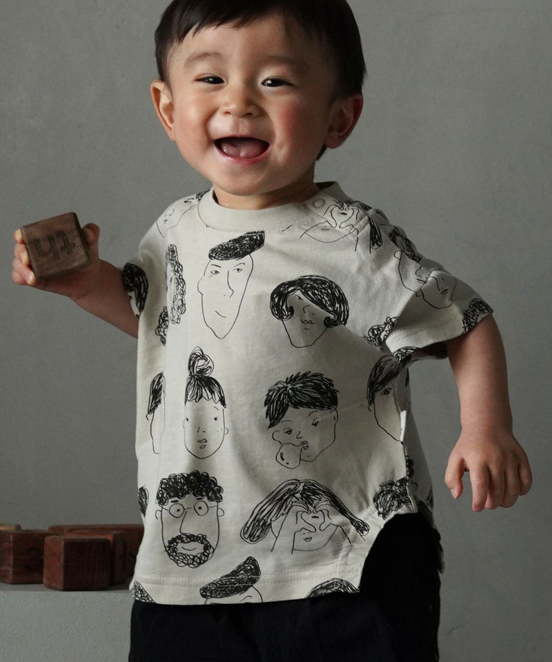 いろんな顔総柄半袖Tシャツ■80~140cm