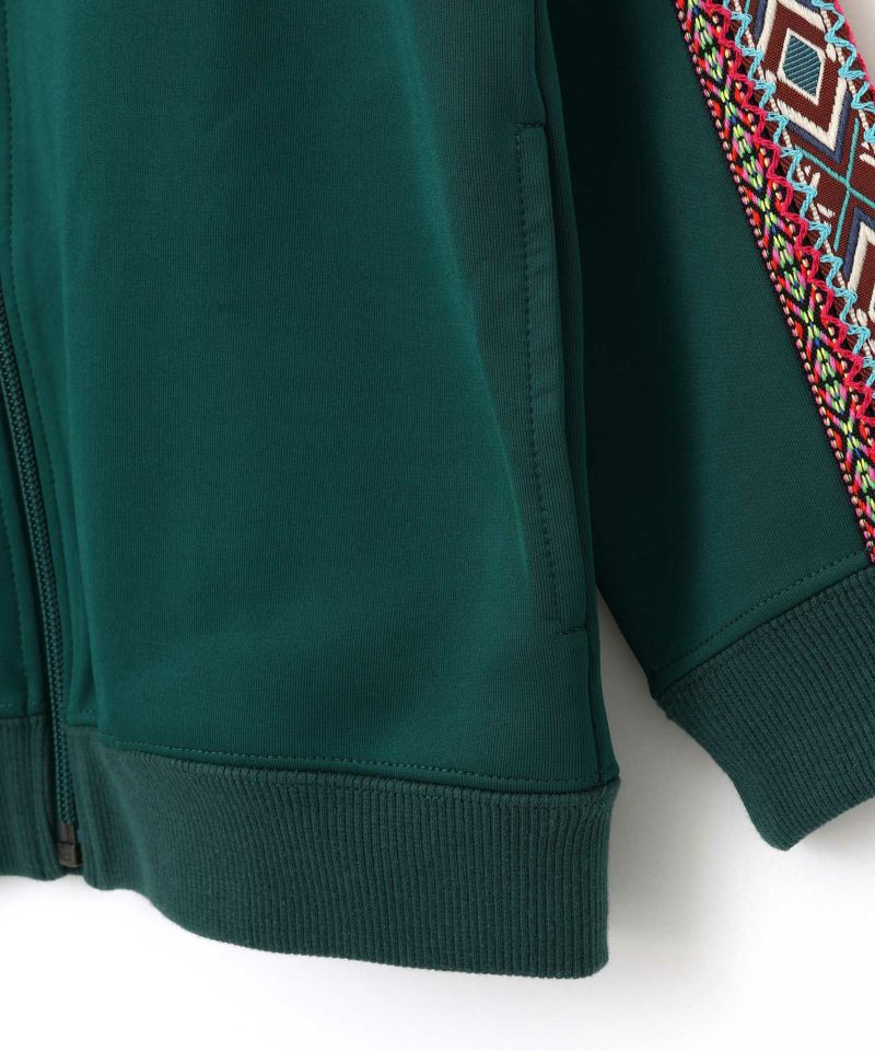 本体)ポリエステル97% ポリウレタン3% 袖ライン部分)ポリエステル100% リブ部分)綿95% ポリウレタン5%