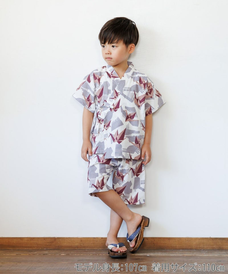 日本的でレトロでかっこいい折り鶴柄の甚平。