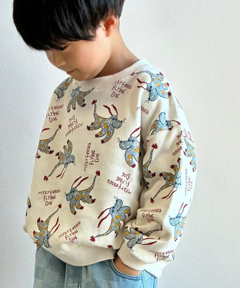 空飛ぶ犬総柄裏毛トレーナー■80~140cm