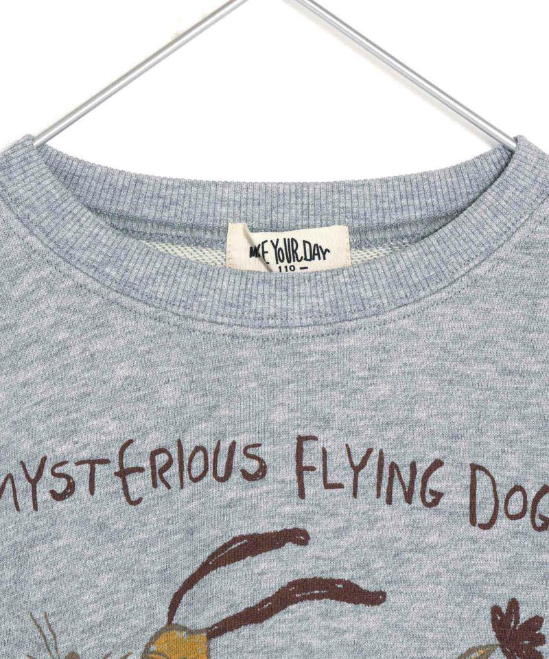 空飛ぶ犬プリント裏毛トレーナー■80~140cm