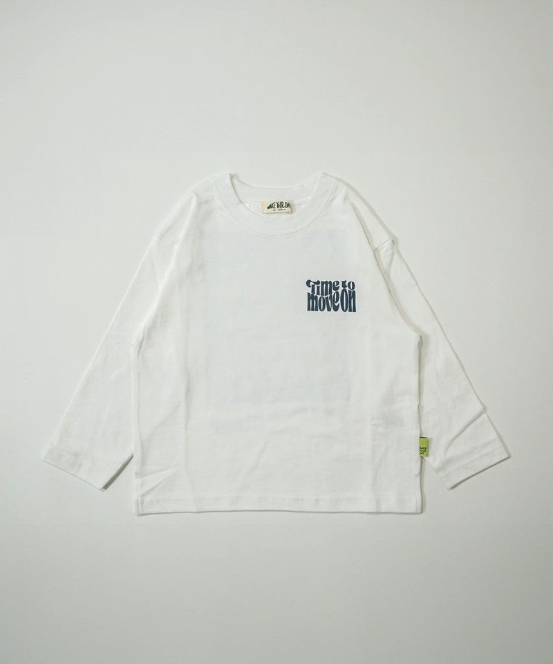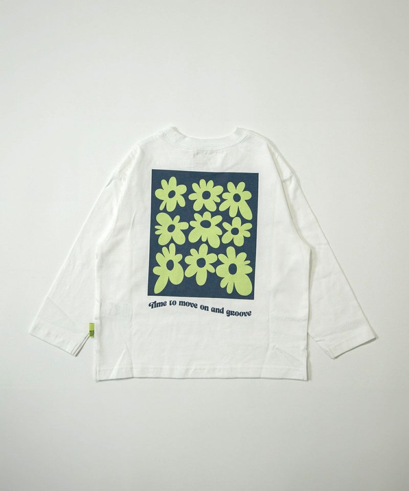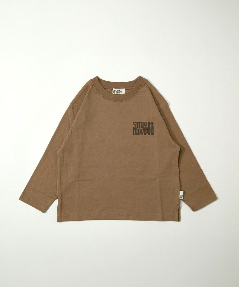 親子でおそろいはちょっとハードルが高いという大人も挑戦しやすいシンプルな胸ロゴとバックプリントの長袖Tシャツ。