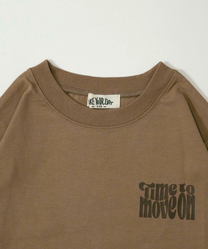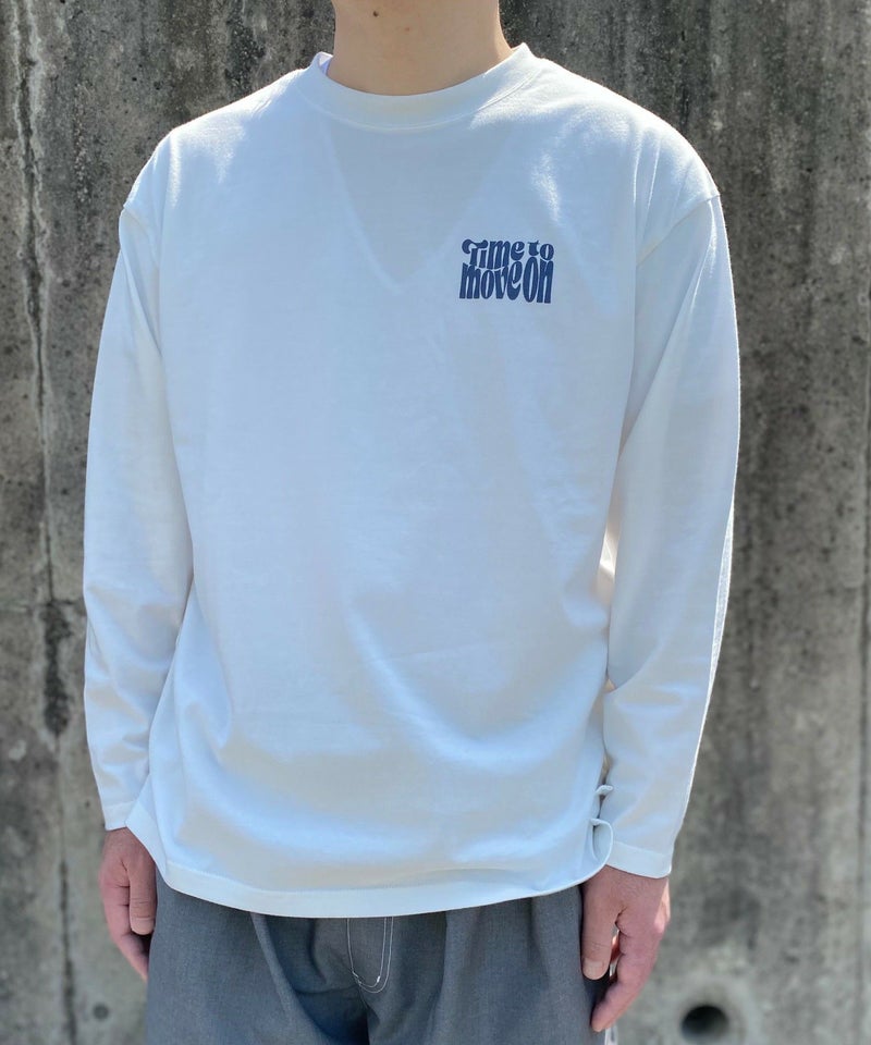 親子でおそろいはちょっとハードルが高いという大人も挑戦しやすいシンプルな胸ロゴとバックプリントの長袖Tシャツ。