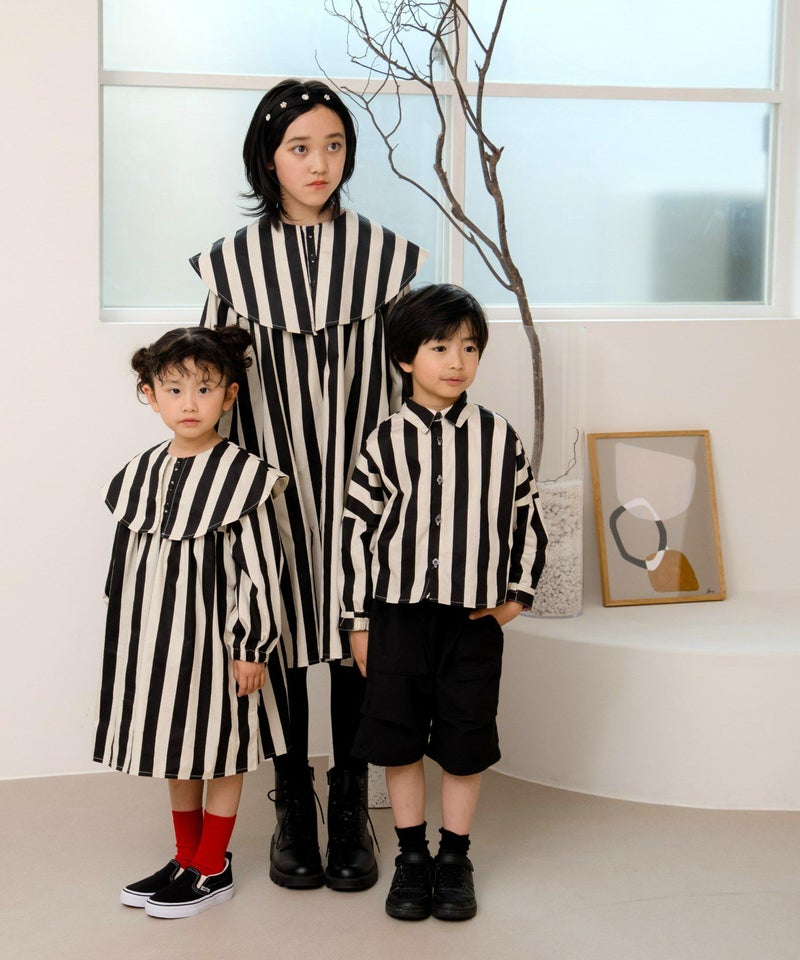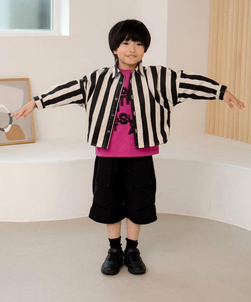 ママとおそろいチェックとストライプのドルマンシャツ■80~140cm