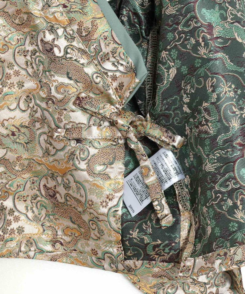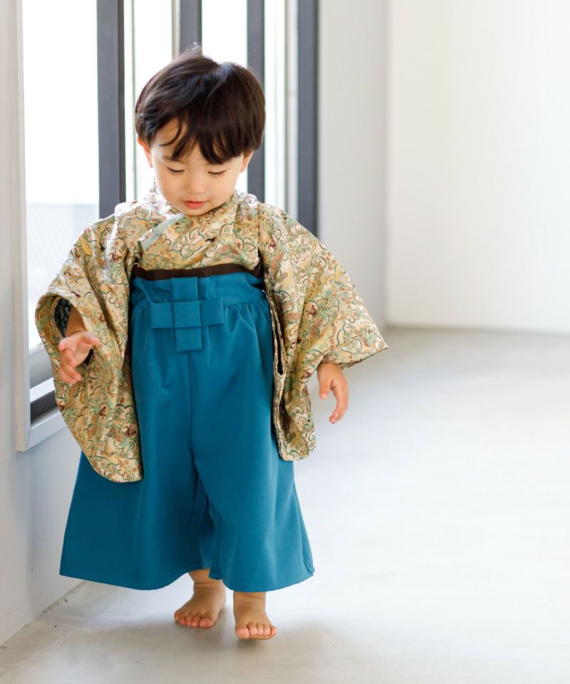 落ち着いた大人っぽい和柄の羽織と、十文字の前紐がかっこよく、まるで大人の袴を着せているようなデザイン。
