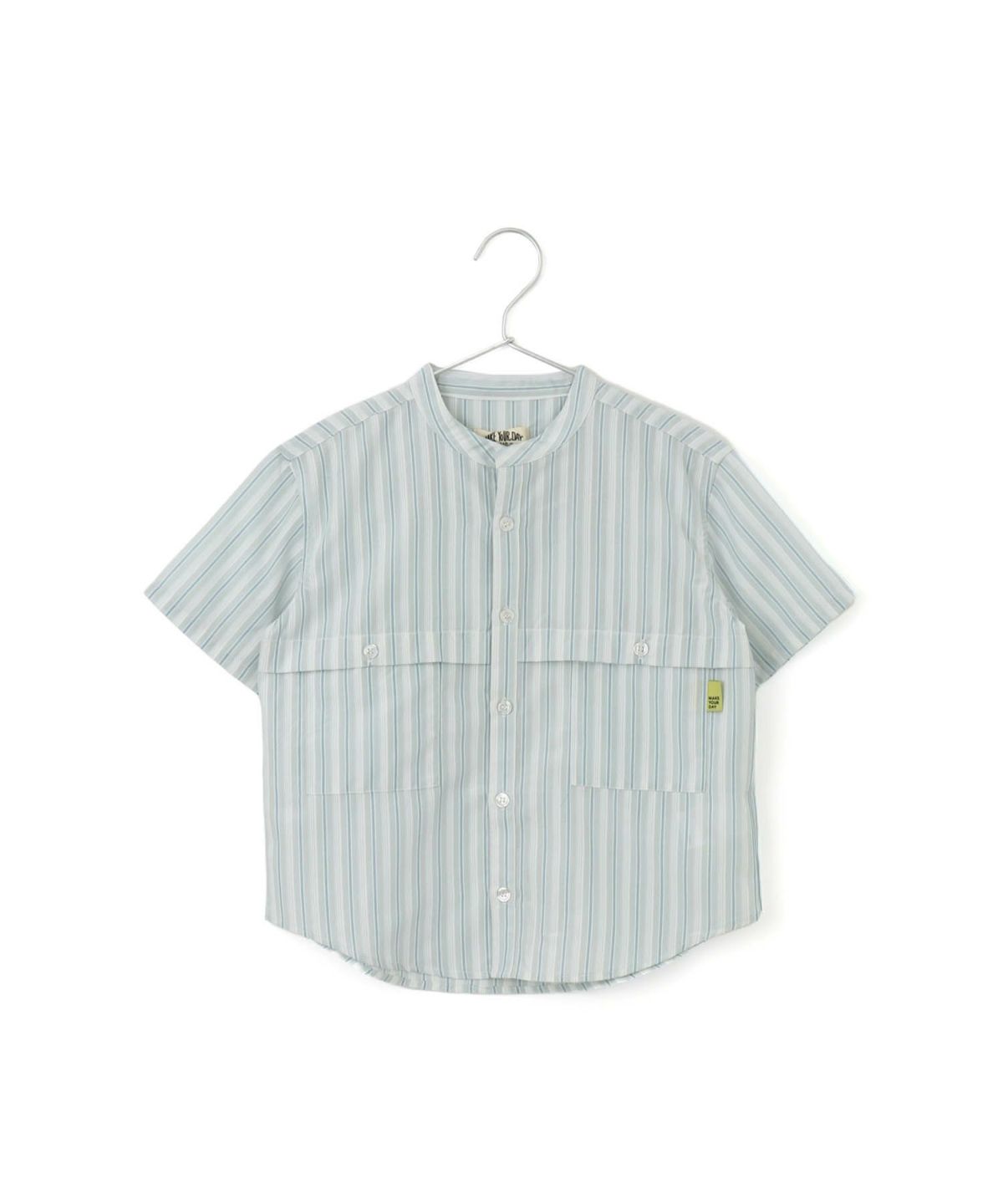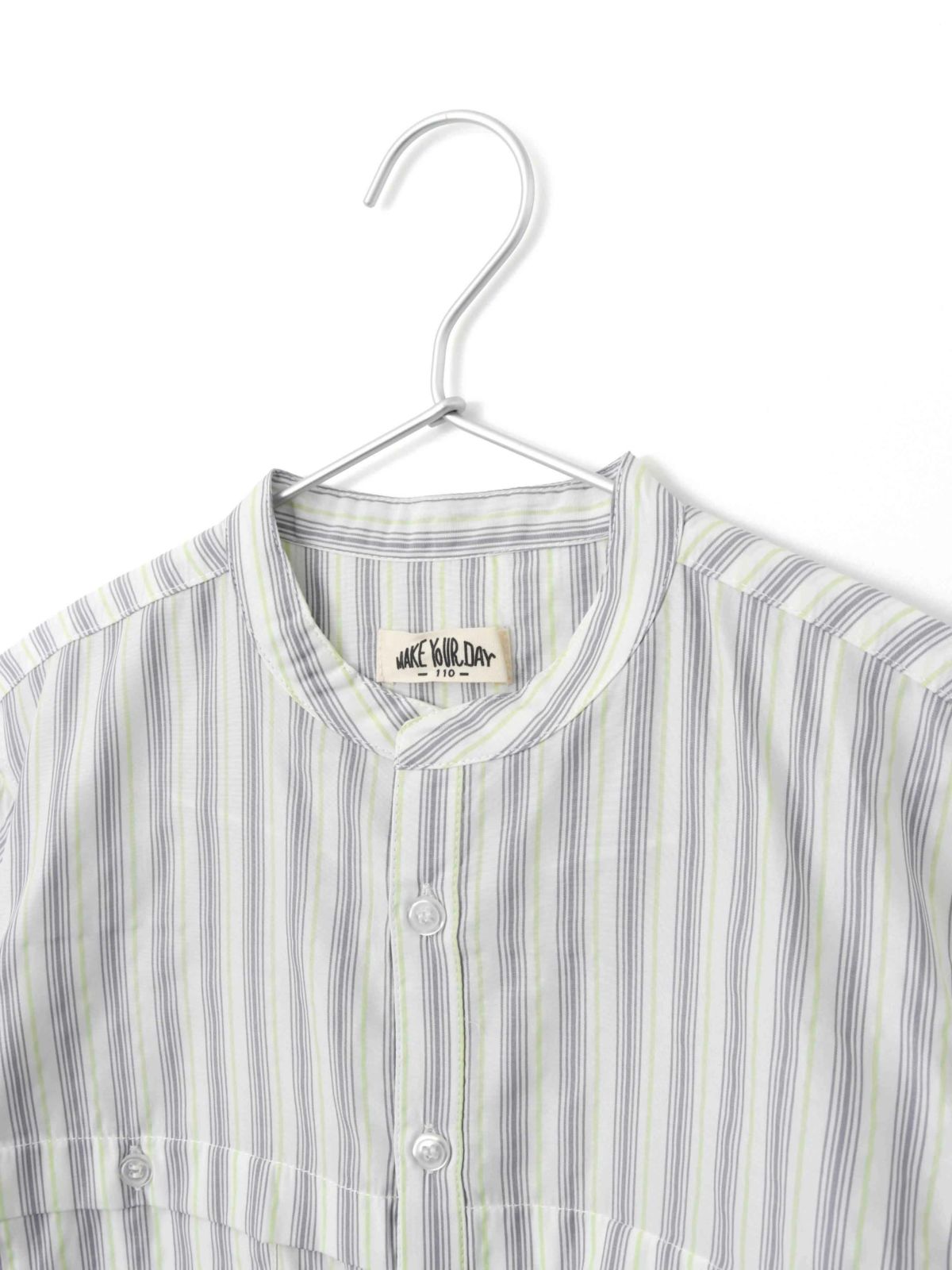 【セール】マルチストライプ半袖バンドカラーシャツ■90~140cm
