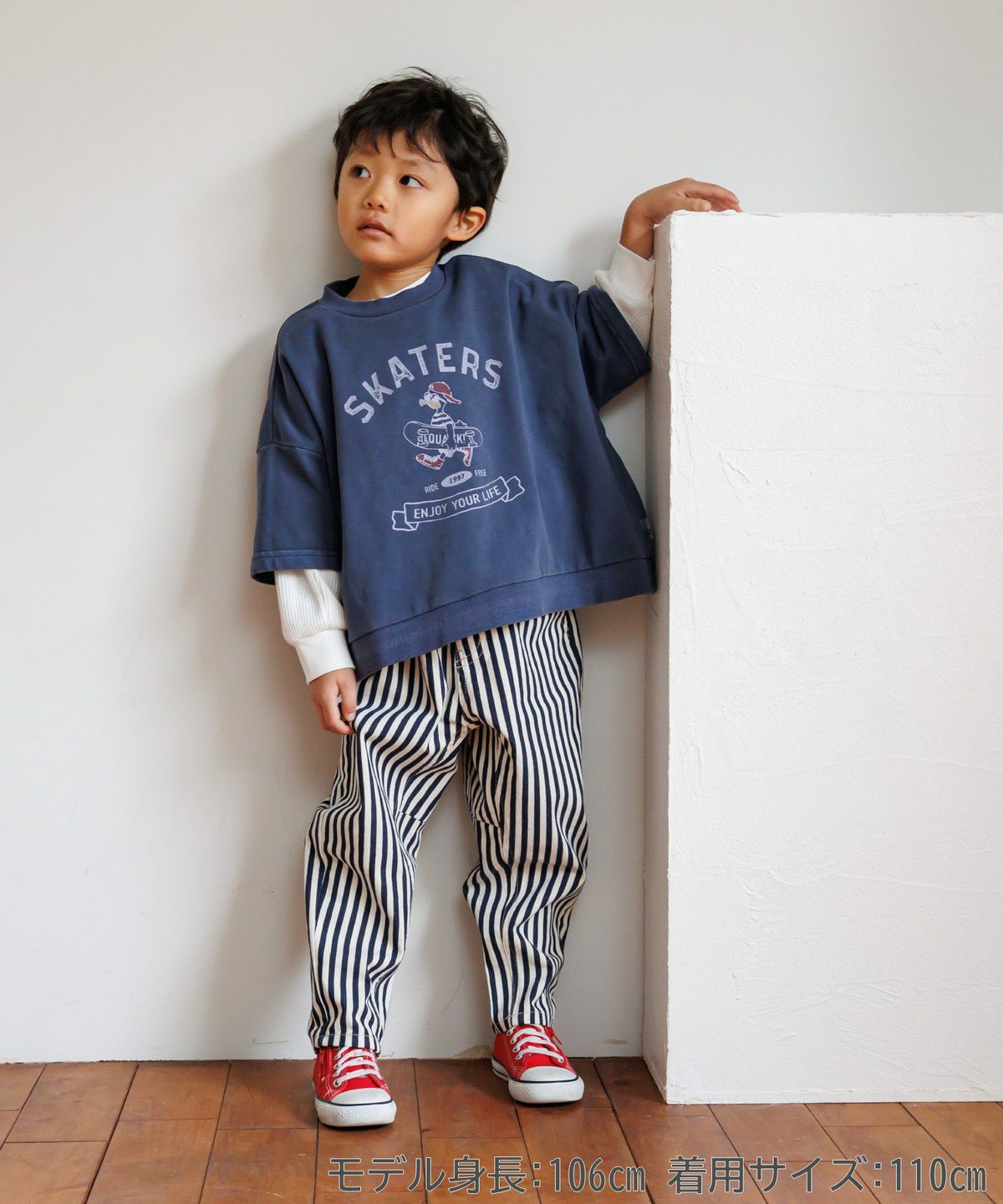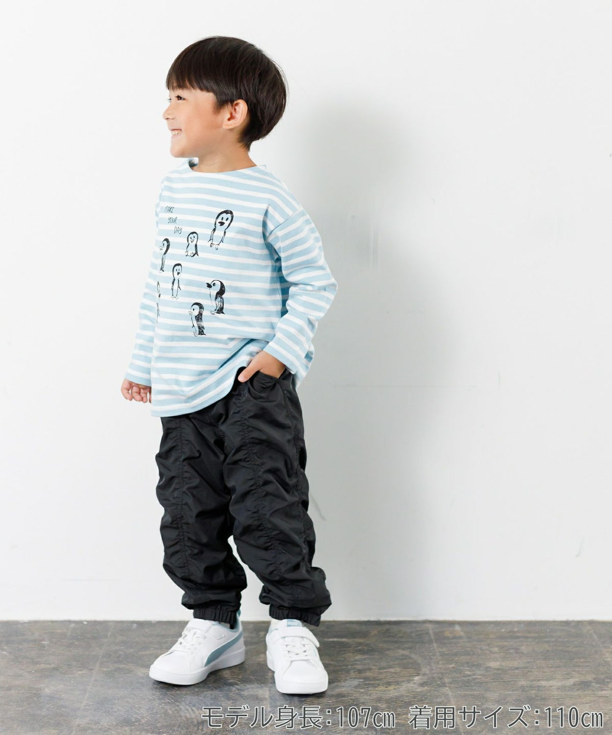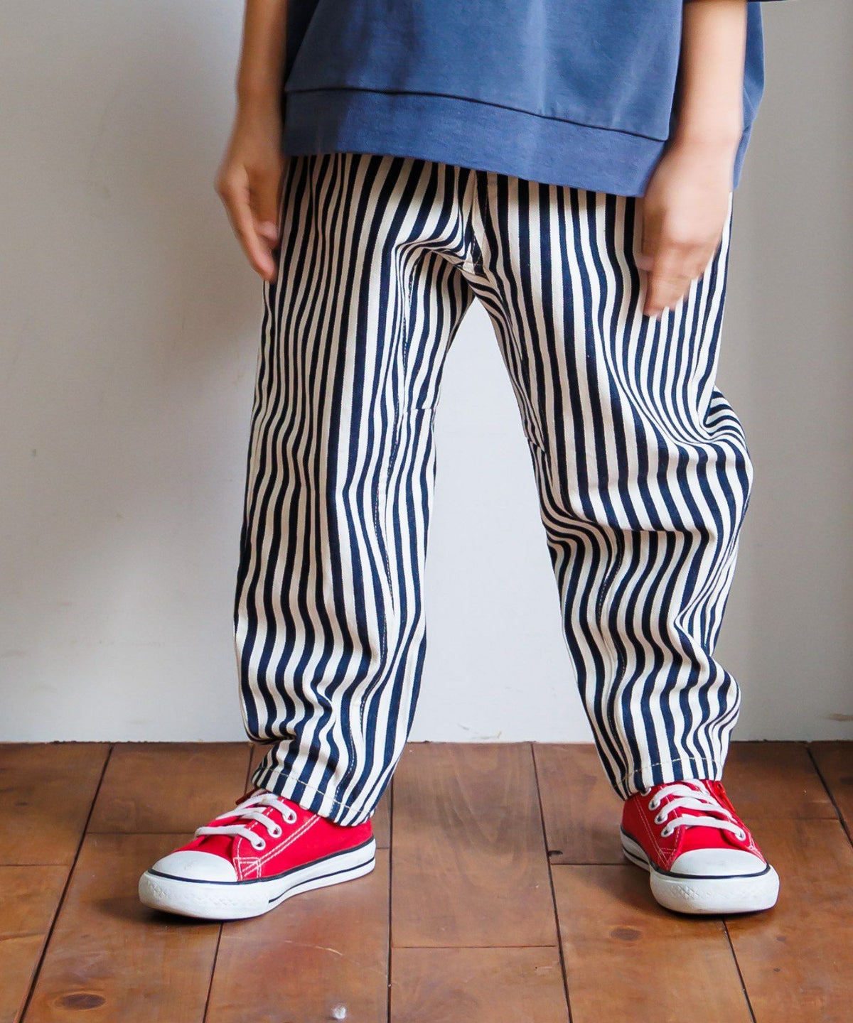 無地とストライプのアシンメトリーパンツ■80~140cm