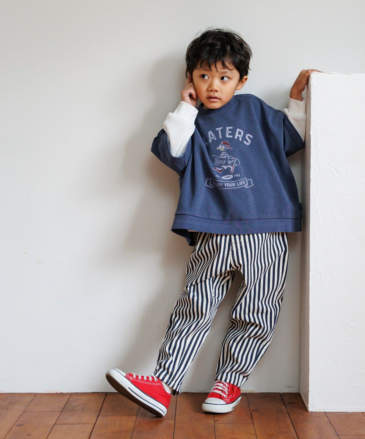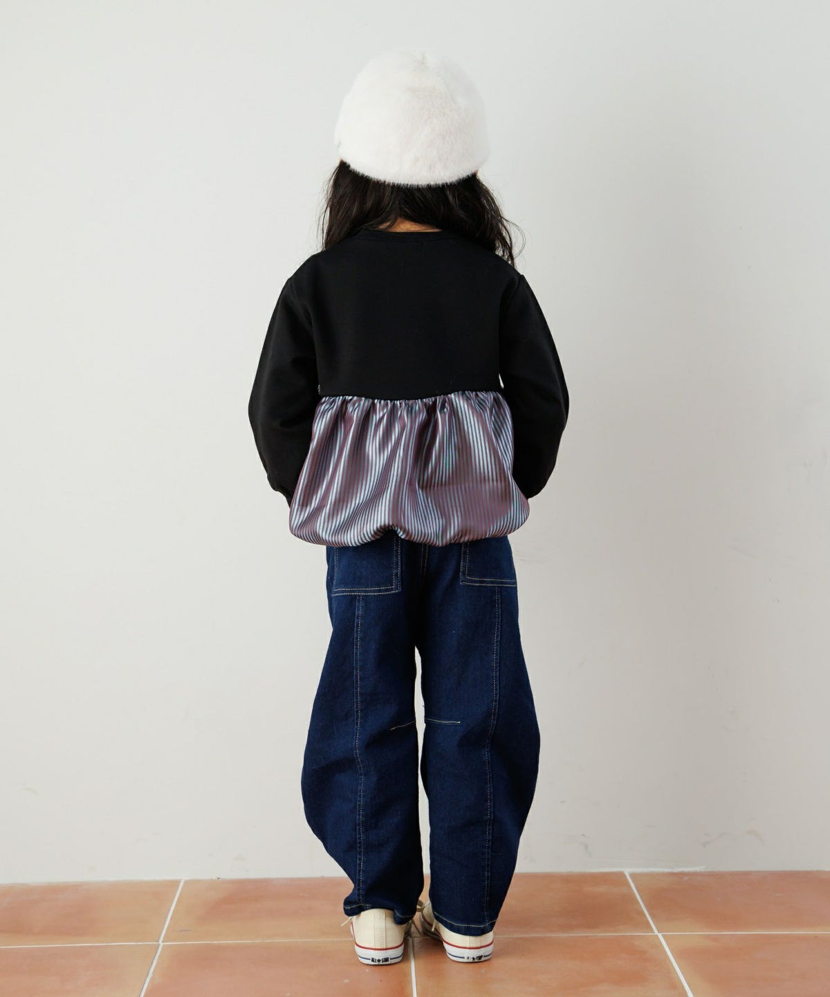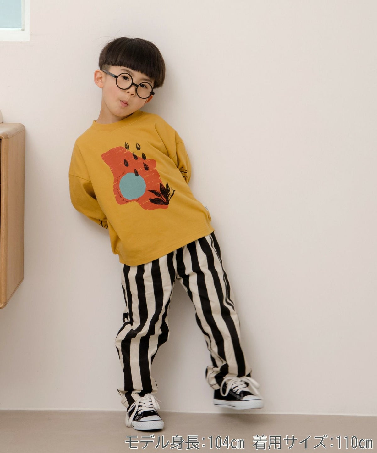 無地とストライプのアシンメトリーパンツ■80~140cm