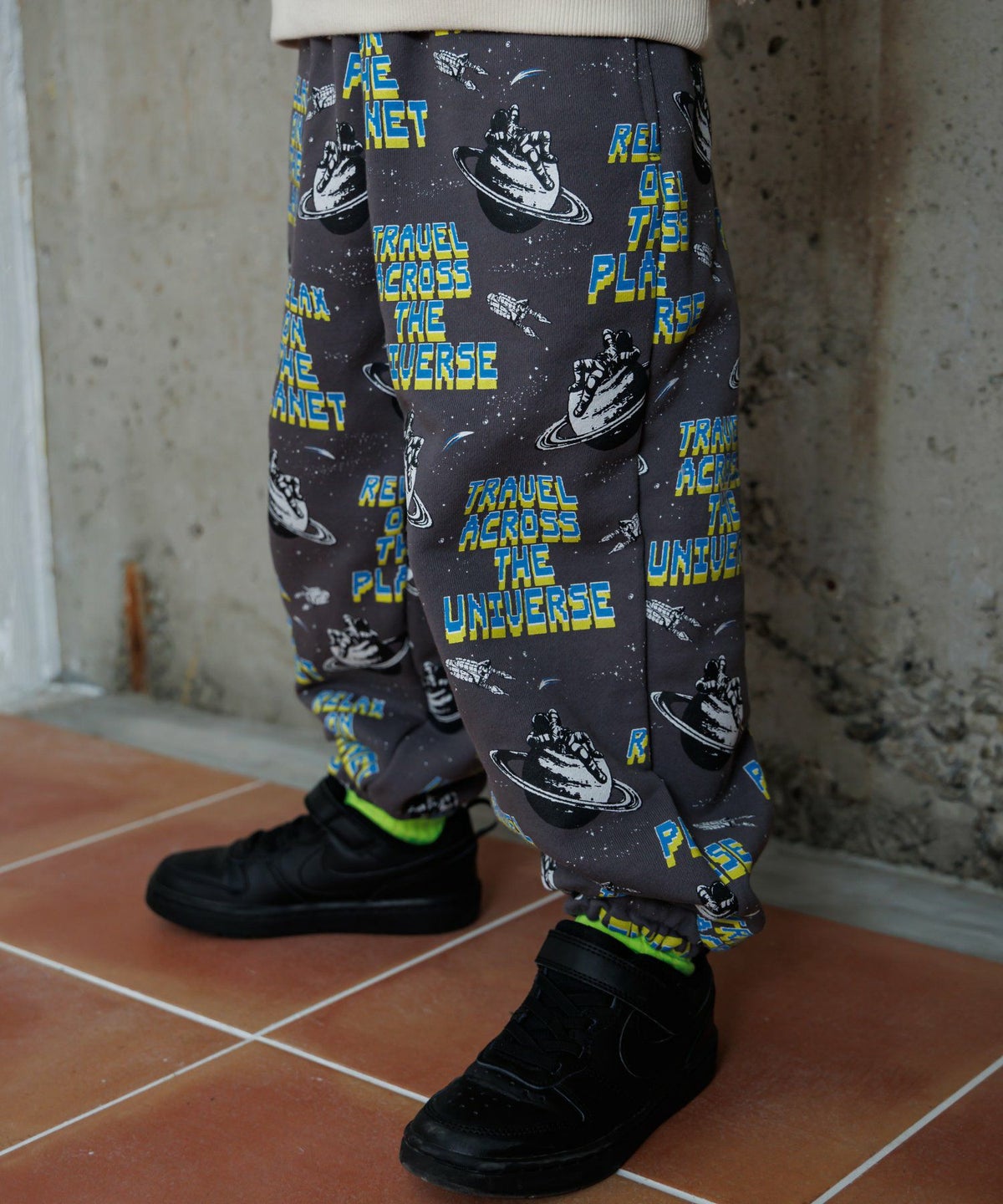 【セール】宇宙でひと休み総柄スウェットパンツ■80~140cm