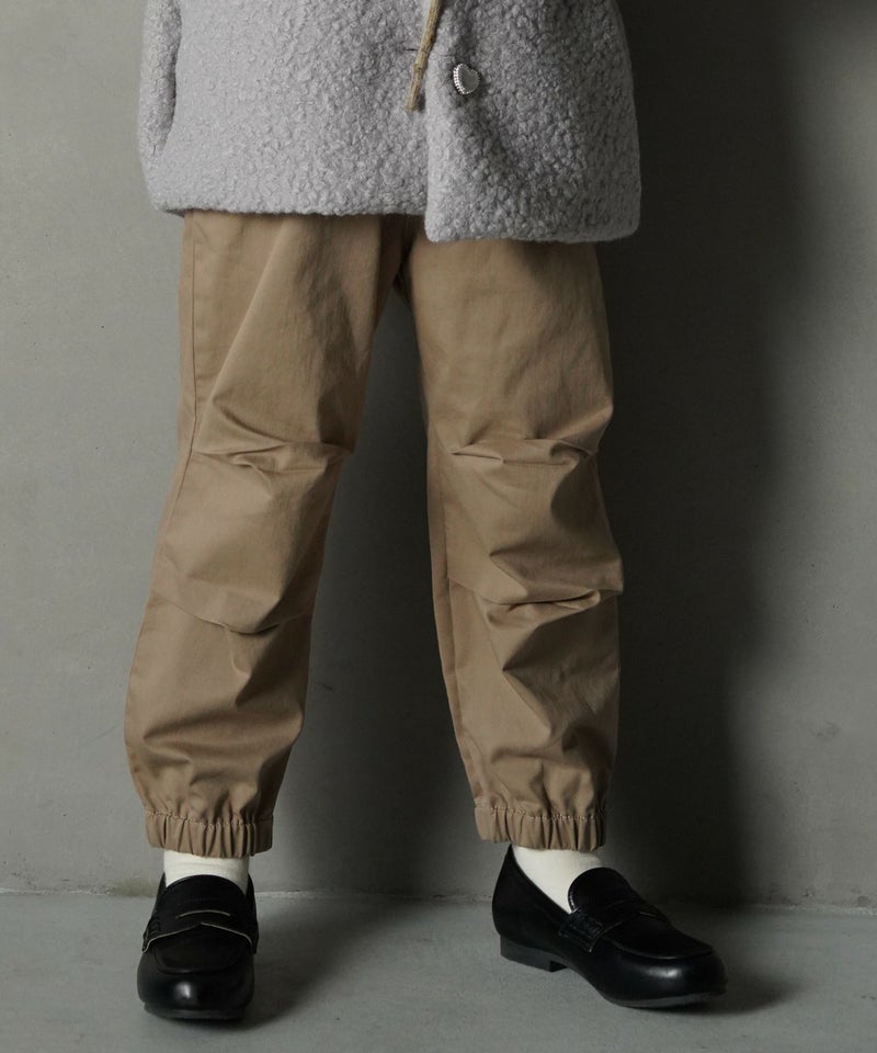 立体的なひざ部分の縫製や、ジョガータイプの裾口は、実はお子どもさんたちにぴったりのデザイン!