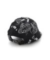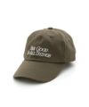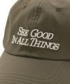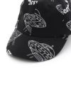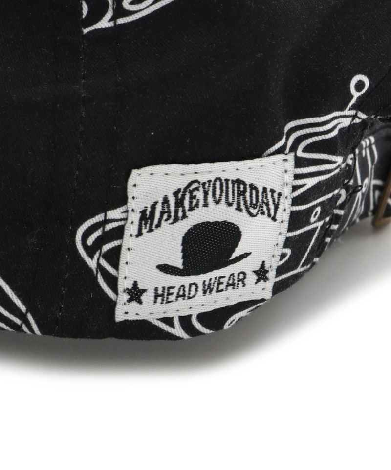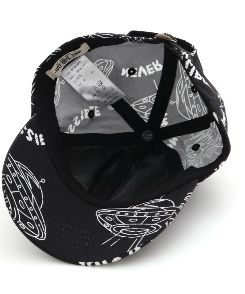 インパクト強めの総柄とシンプルなロゴのキャップ。