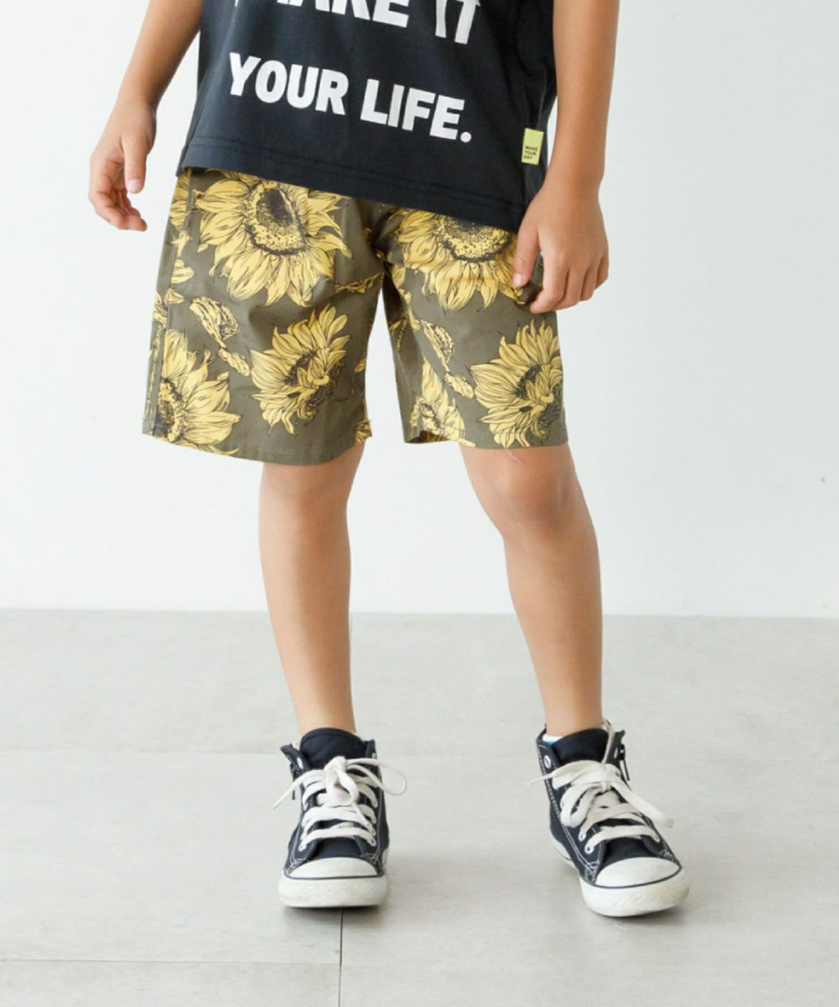 【セール】アートな総柄ワイドハーフパンツ■90~140cm