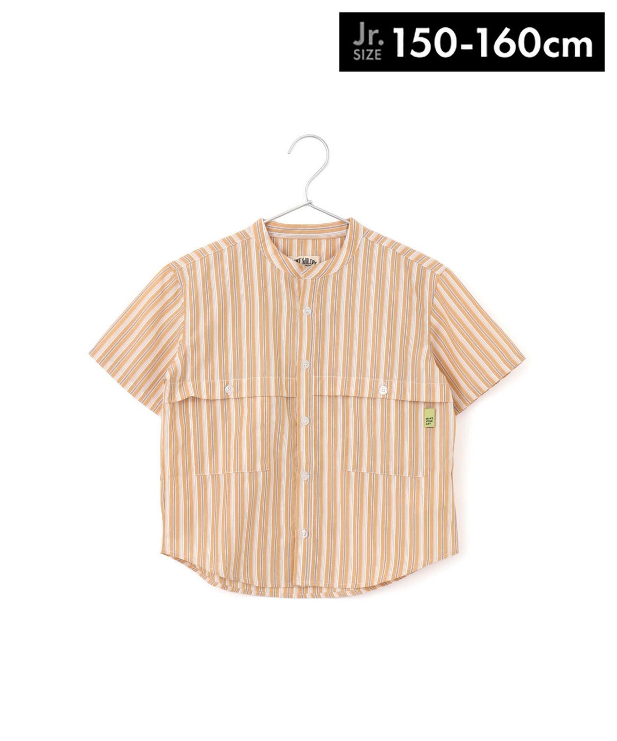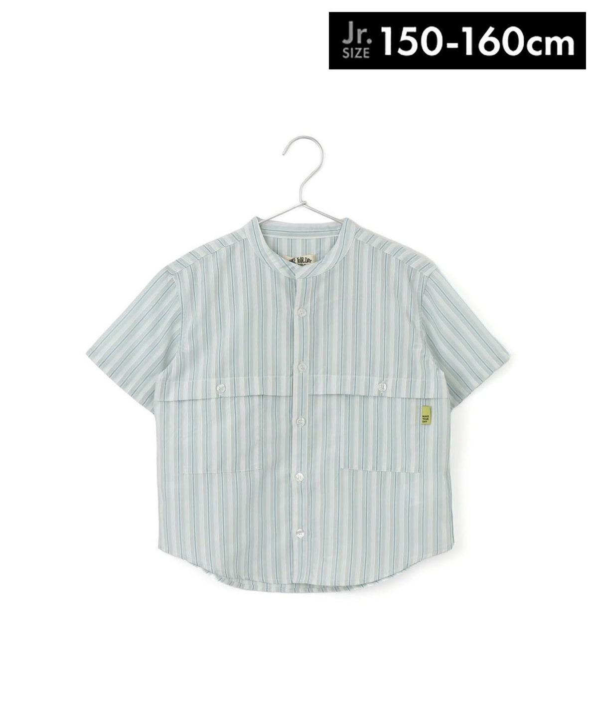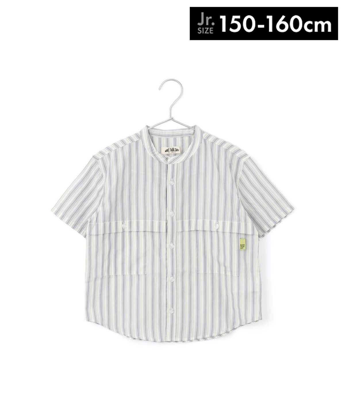 【セール】マルチストライプ半袖バンドカラーシャツ■150.160cm