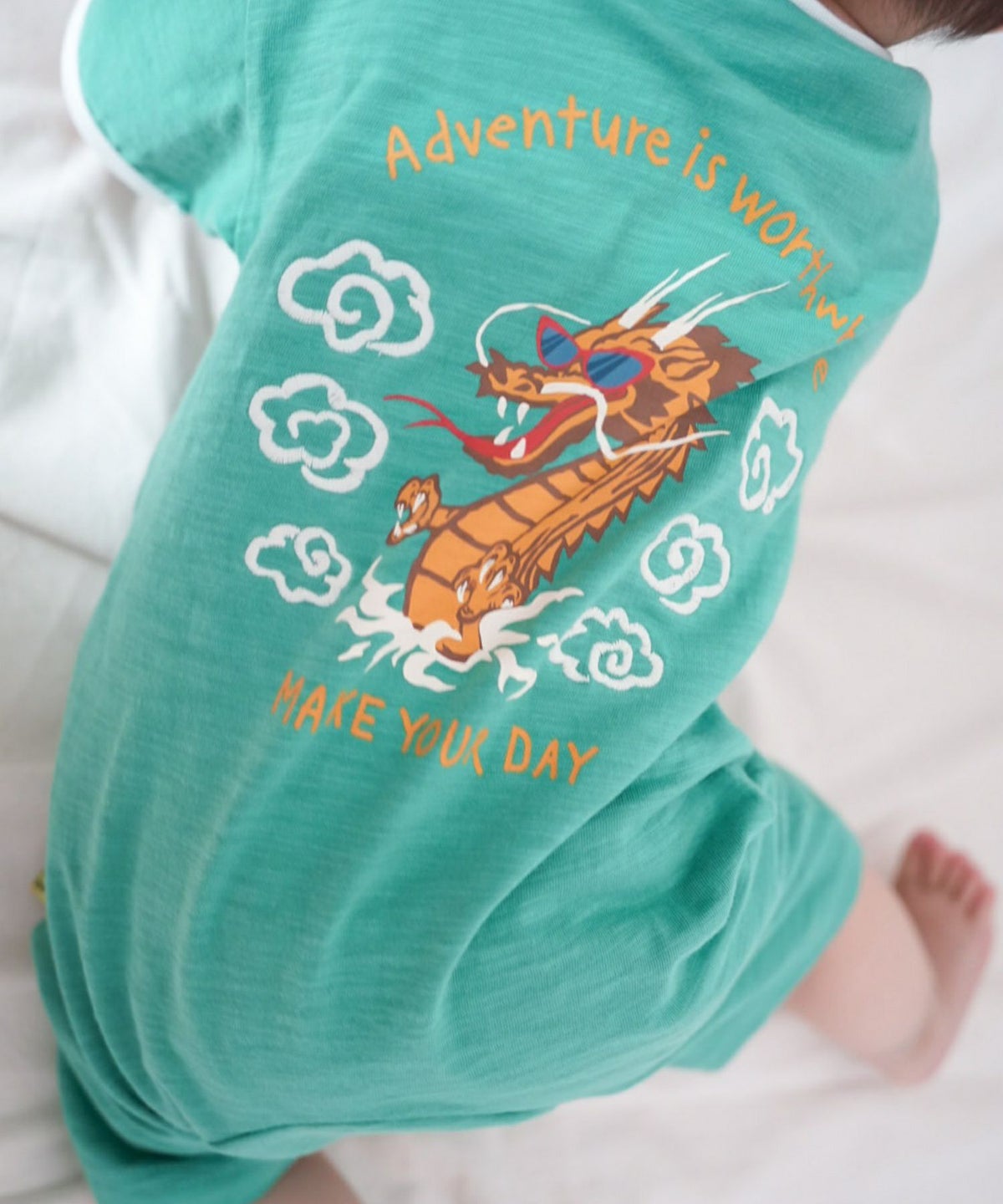 【セール】ドラゴンスカジャン風半袖前開きロンパス