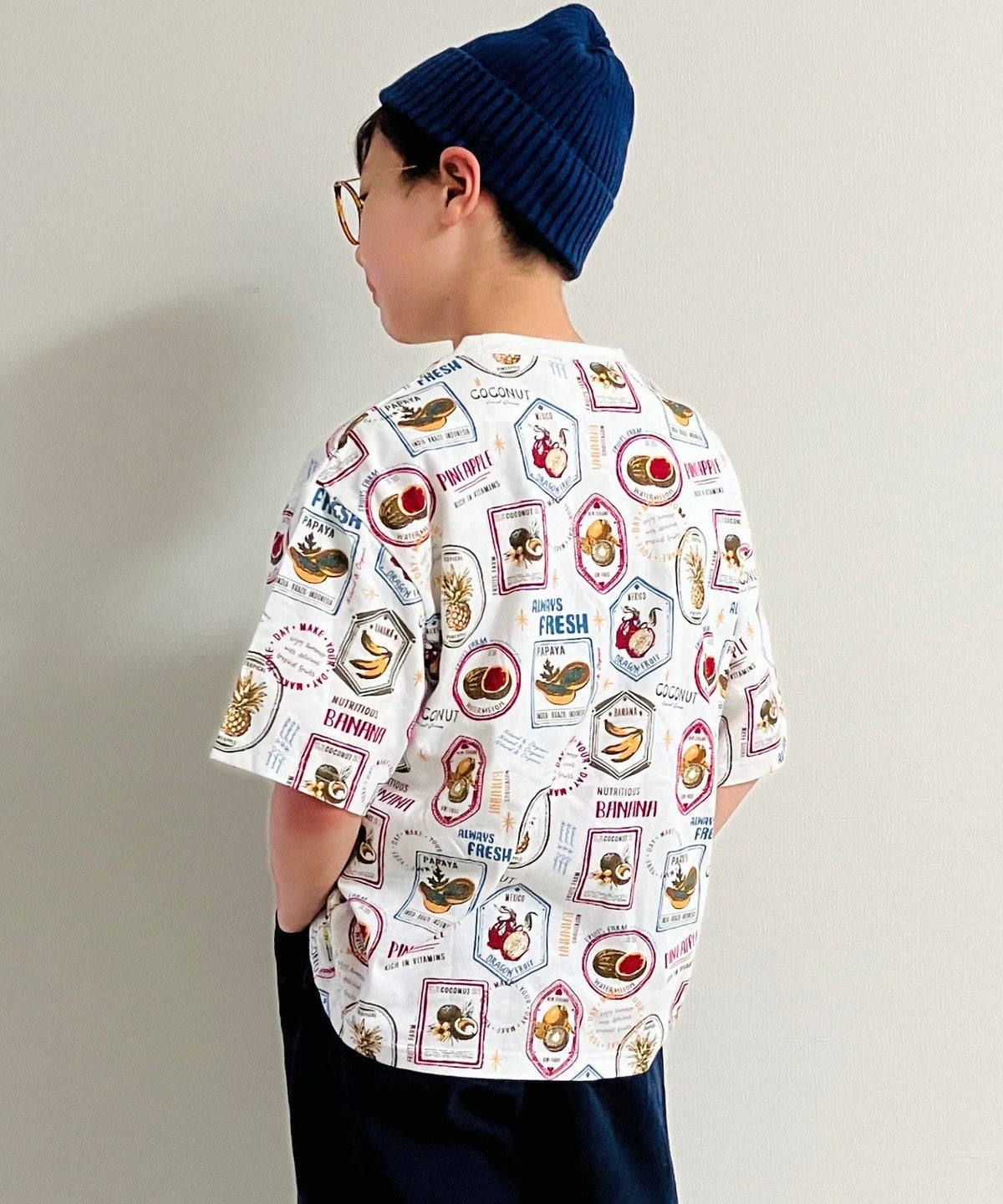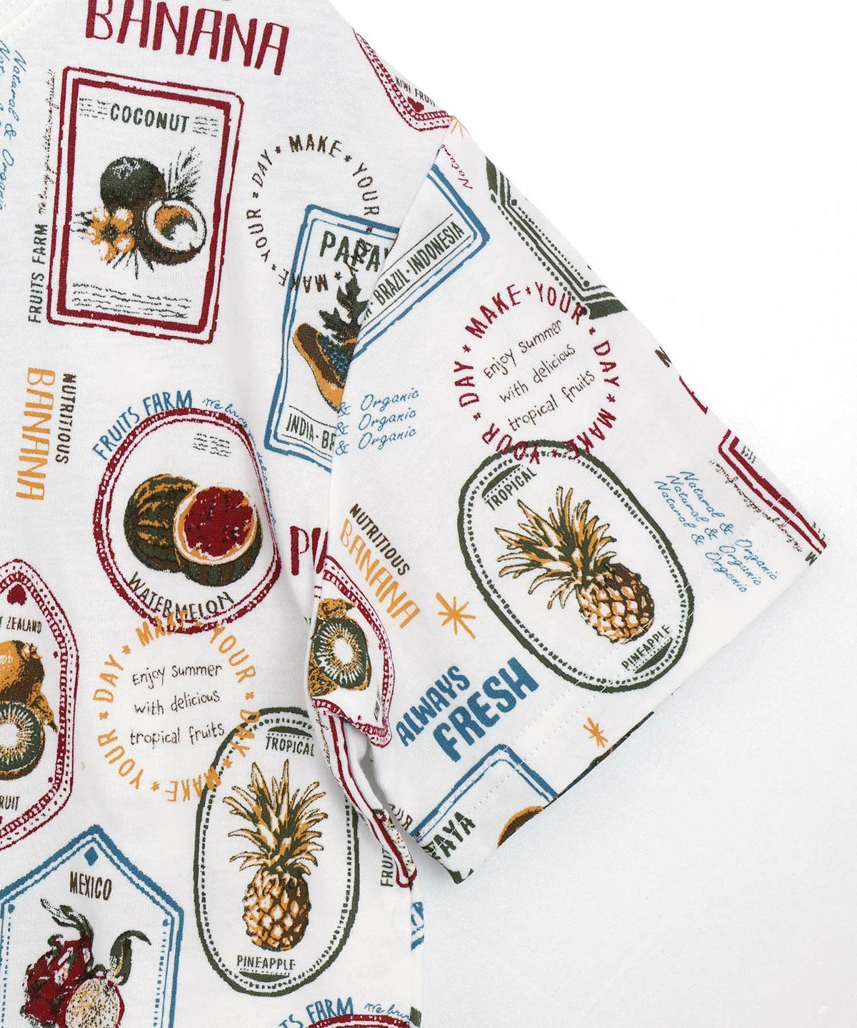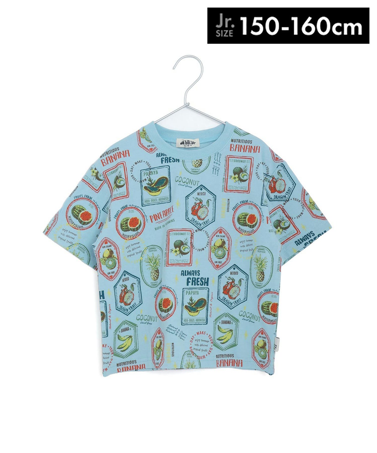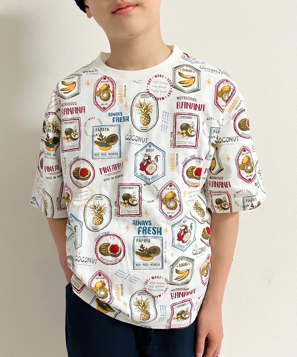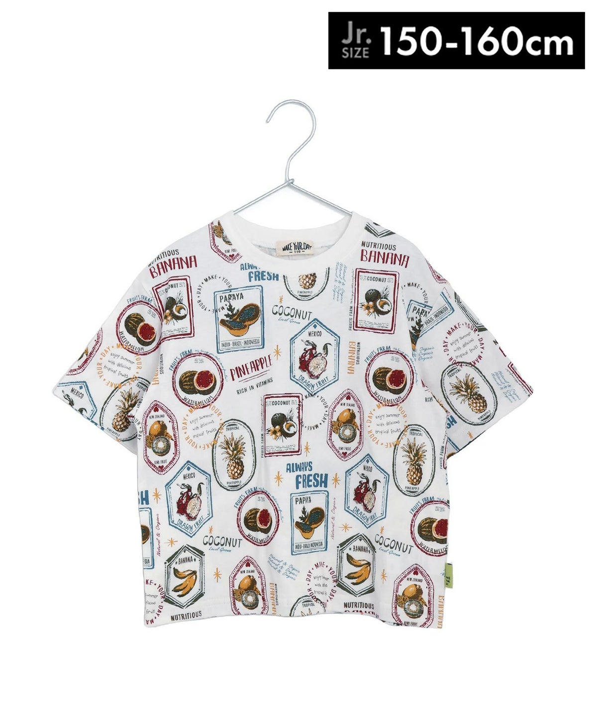 【セール】フルーツステッカー総柄半袖Tシャツ■150.160cm
