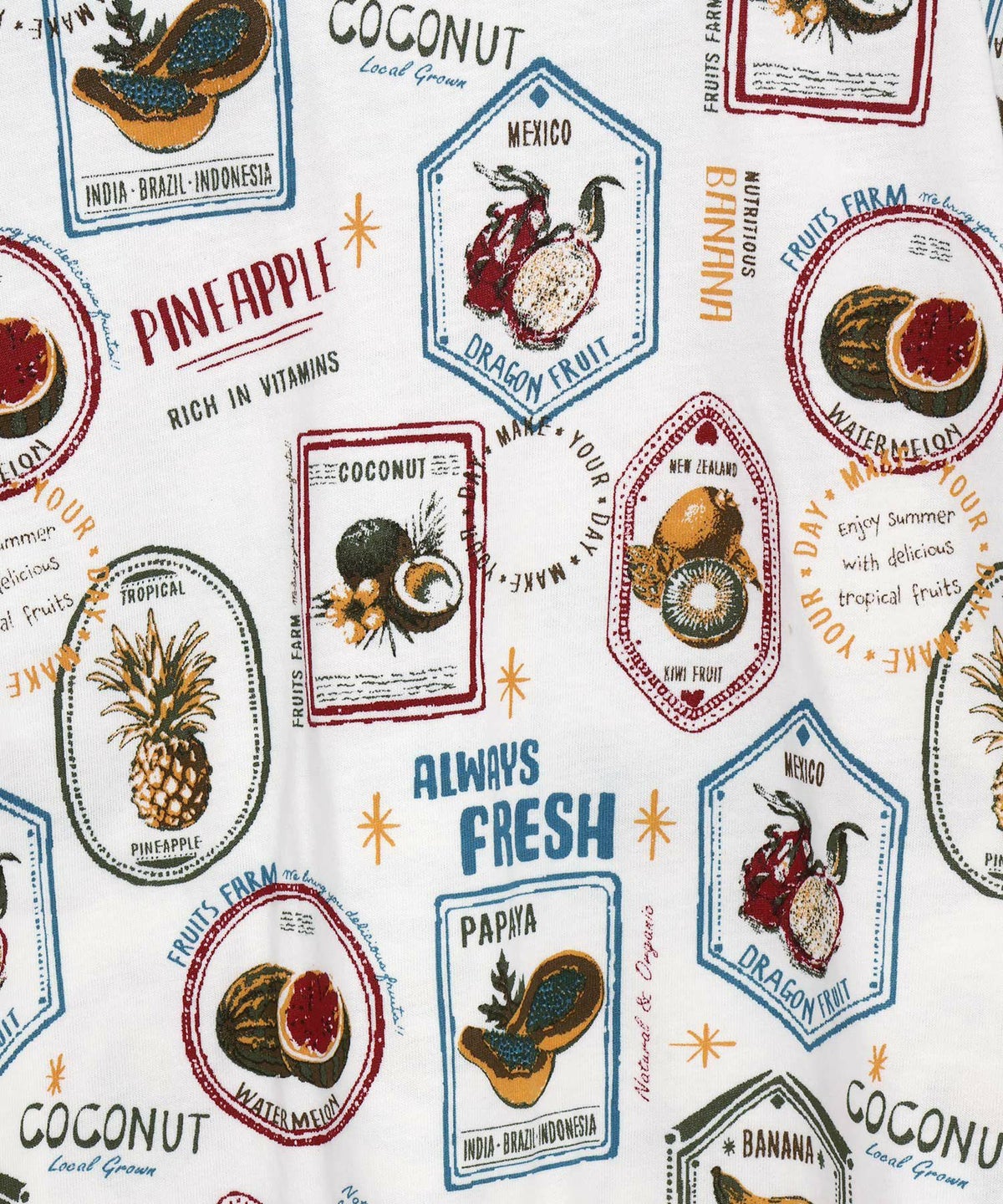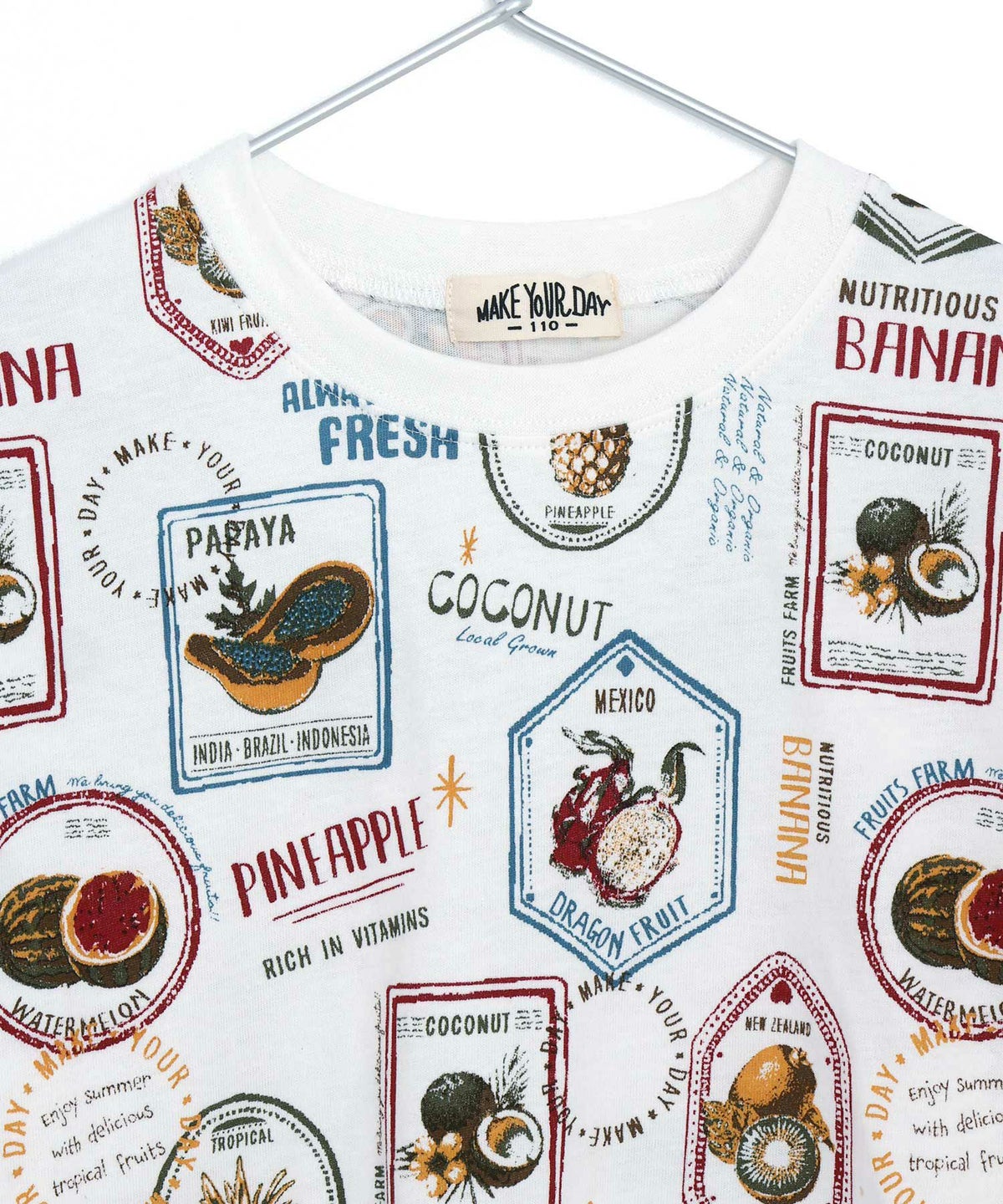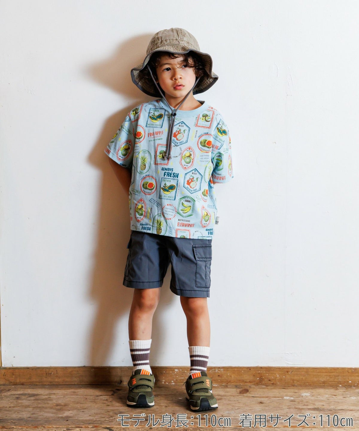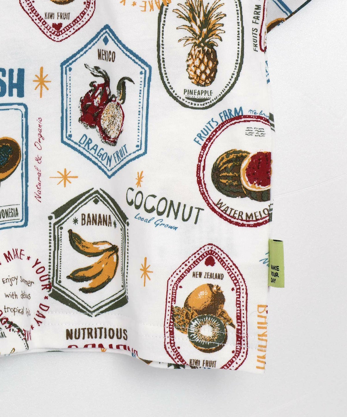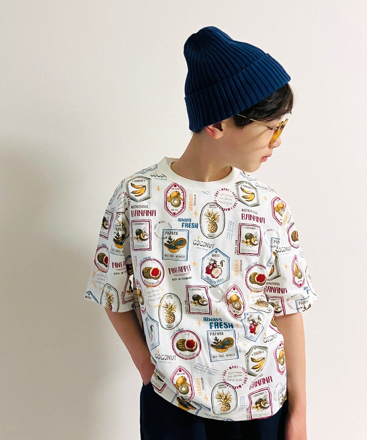 【セール】フルーツステッカー総柄半袖Tシャツ■150.160cm