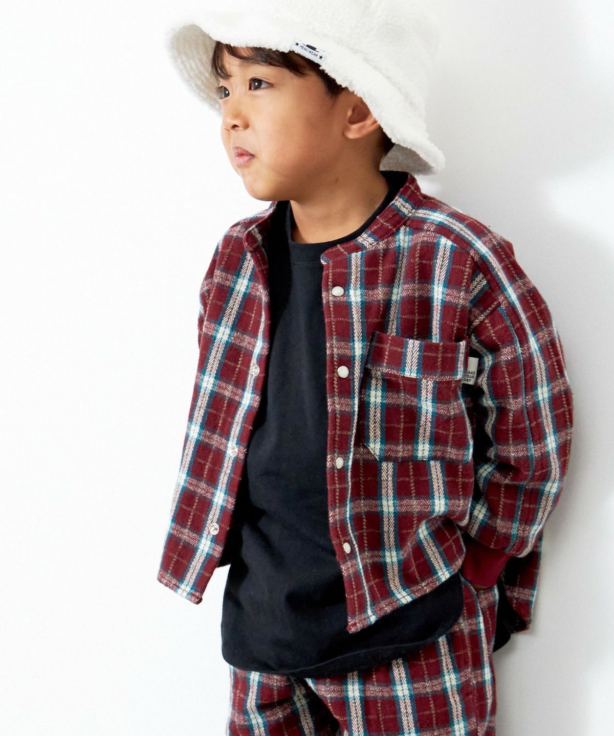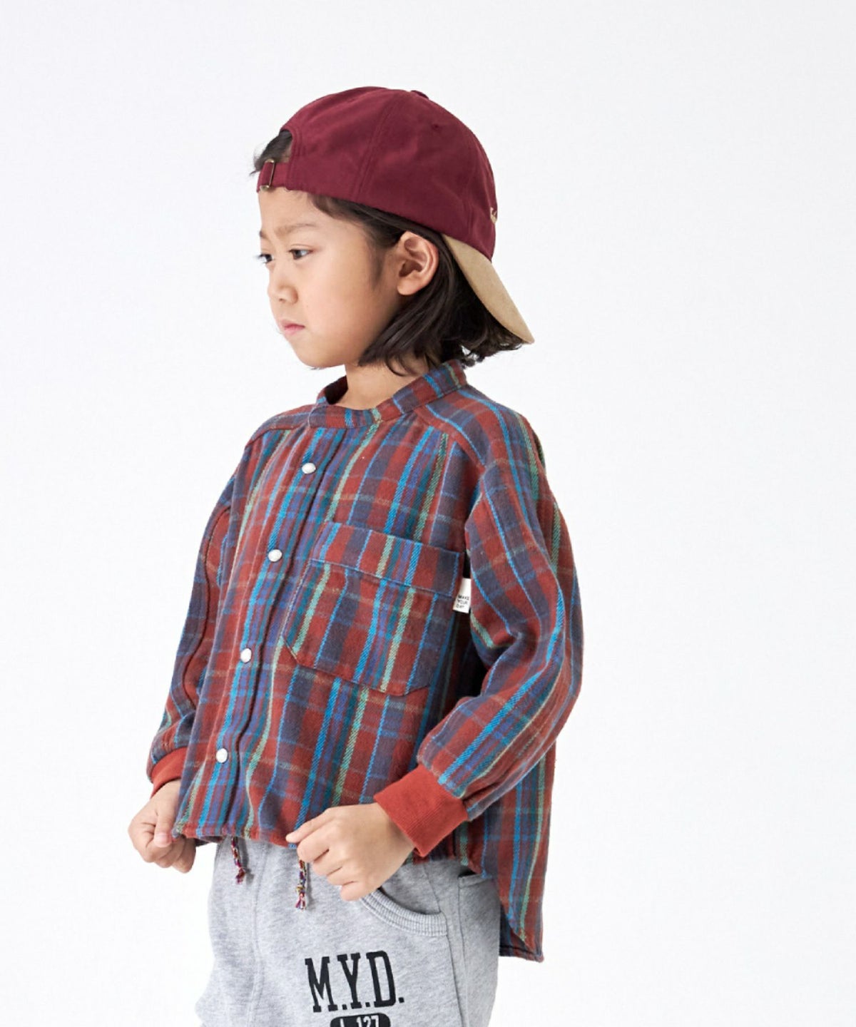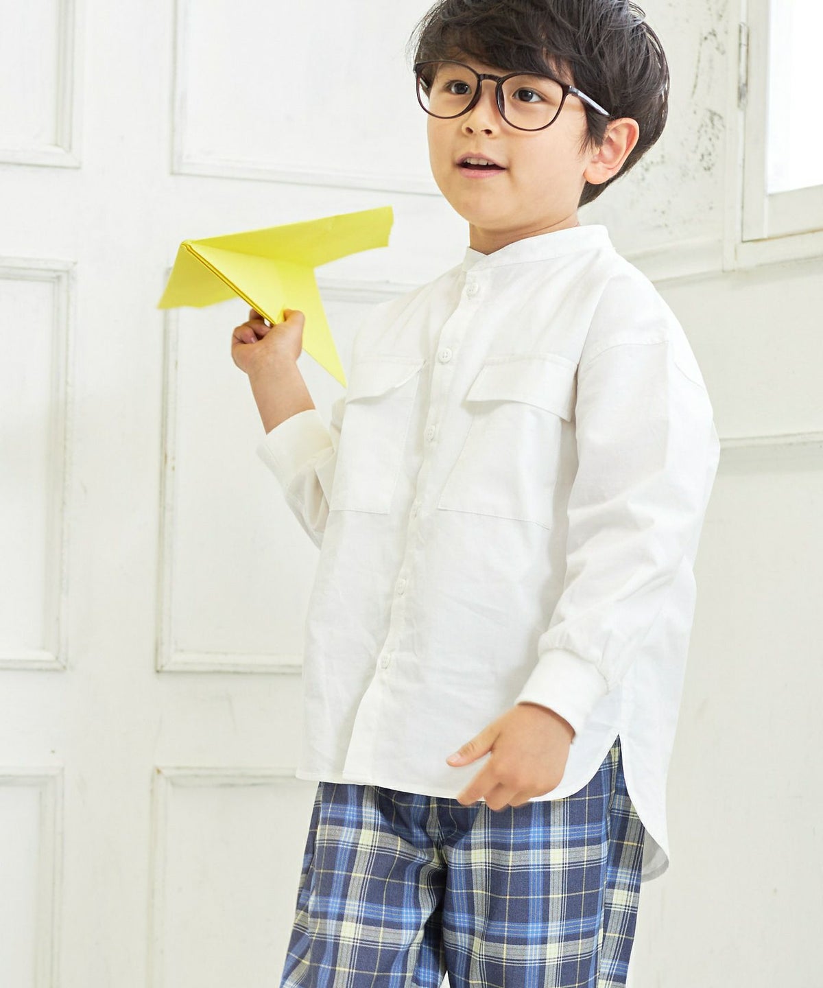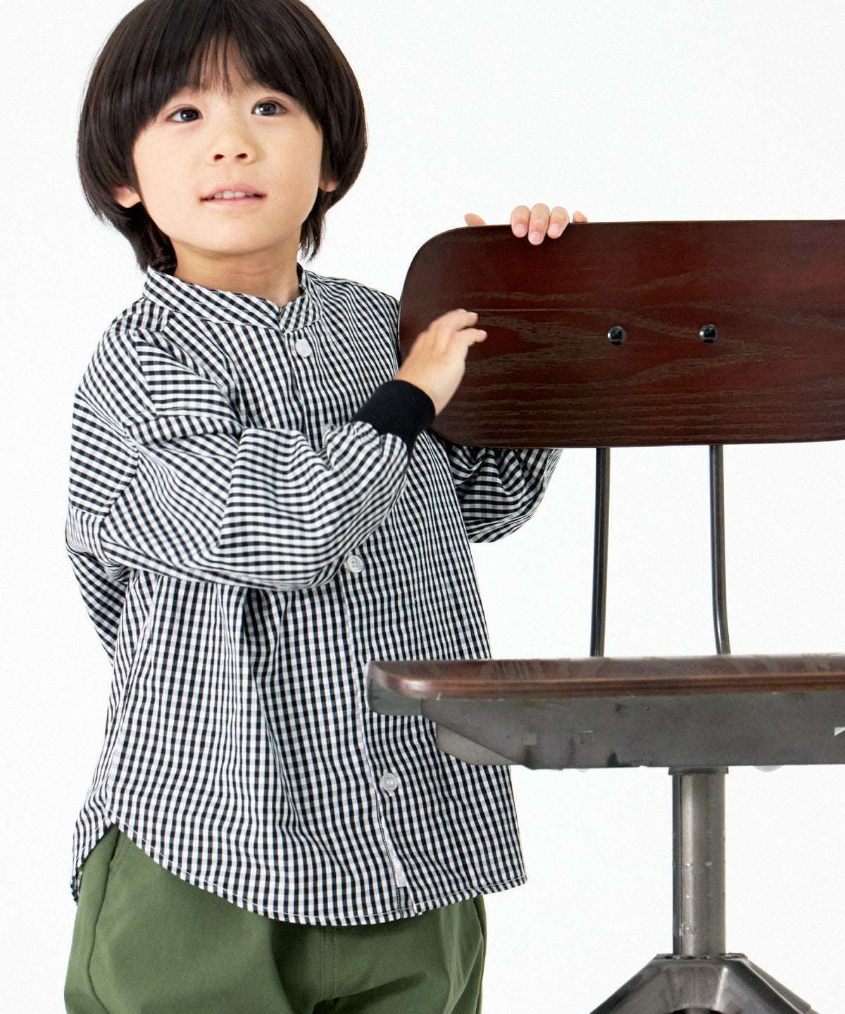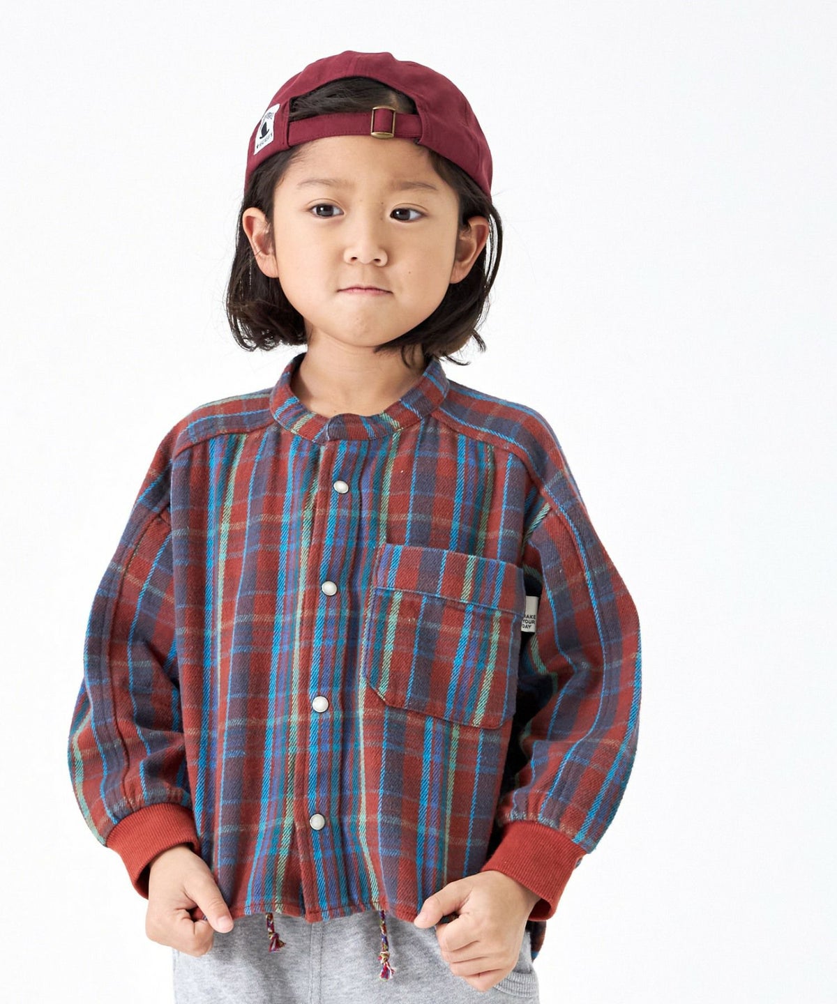【セール】セットアップできるチェックバンドカラーシャツ■90~140cm
