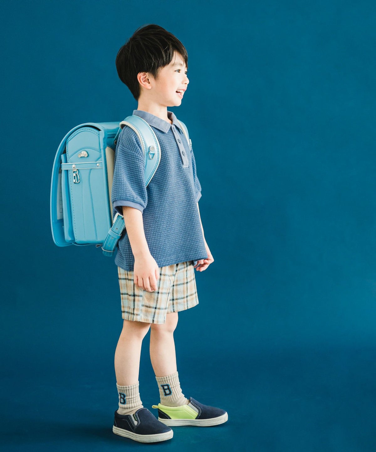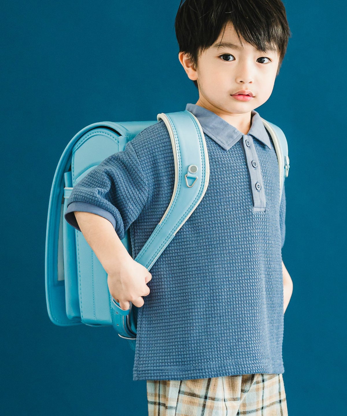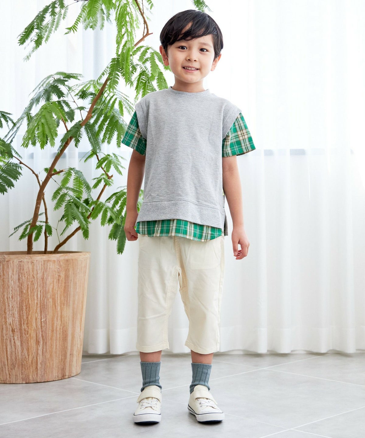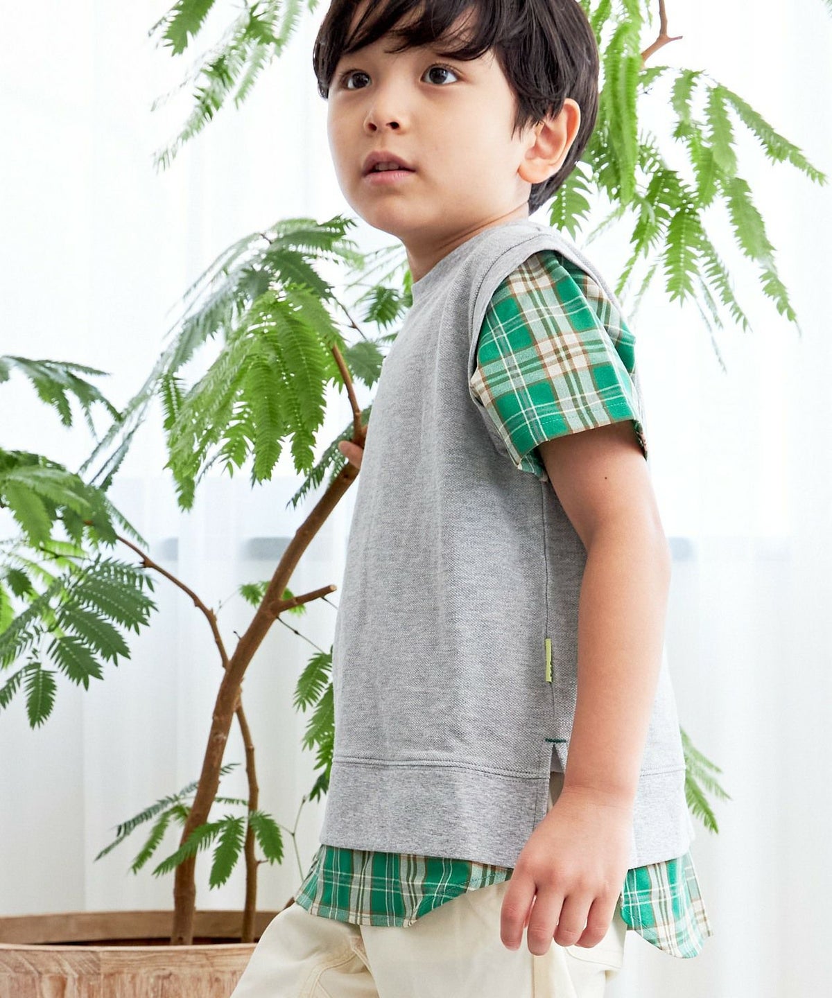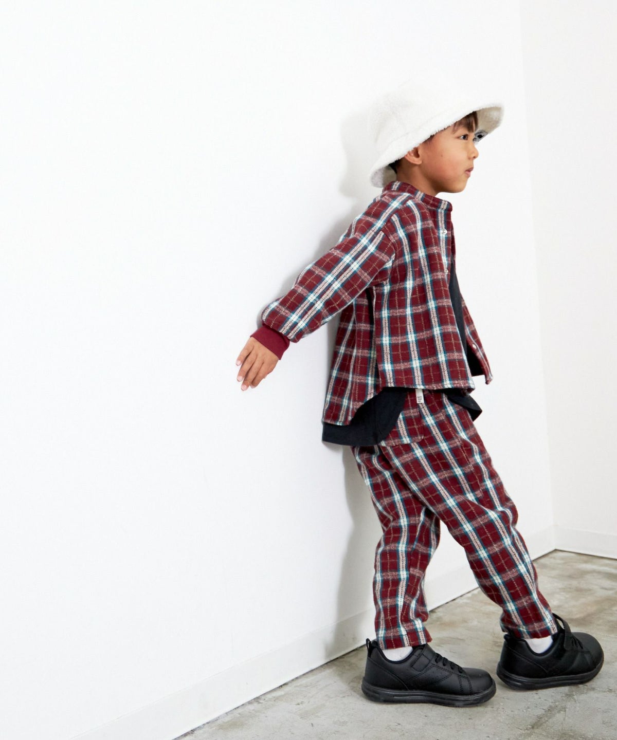 【セール】セットアップできるチェックバンドカラーシャツ■90~140cm