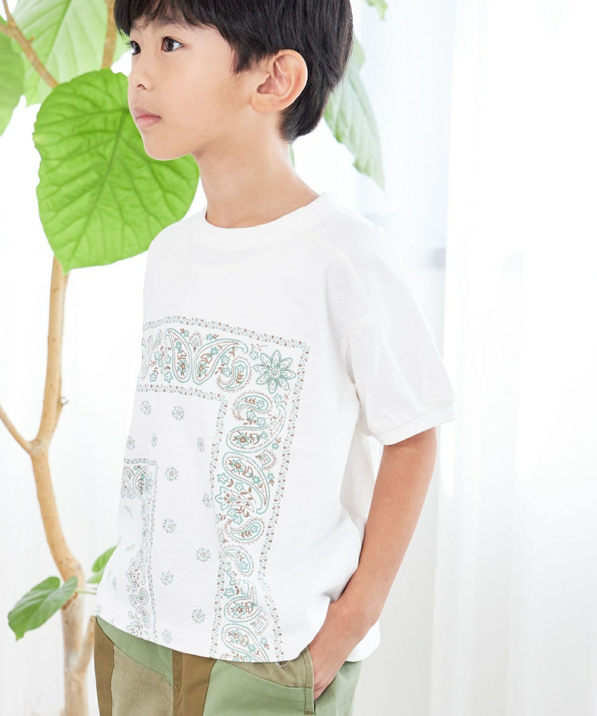 【セール】バンダナ柄ヨーク切替半袖Tシャツ■90~140cm
