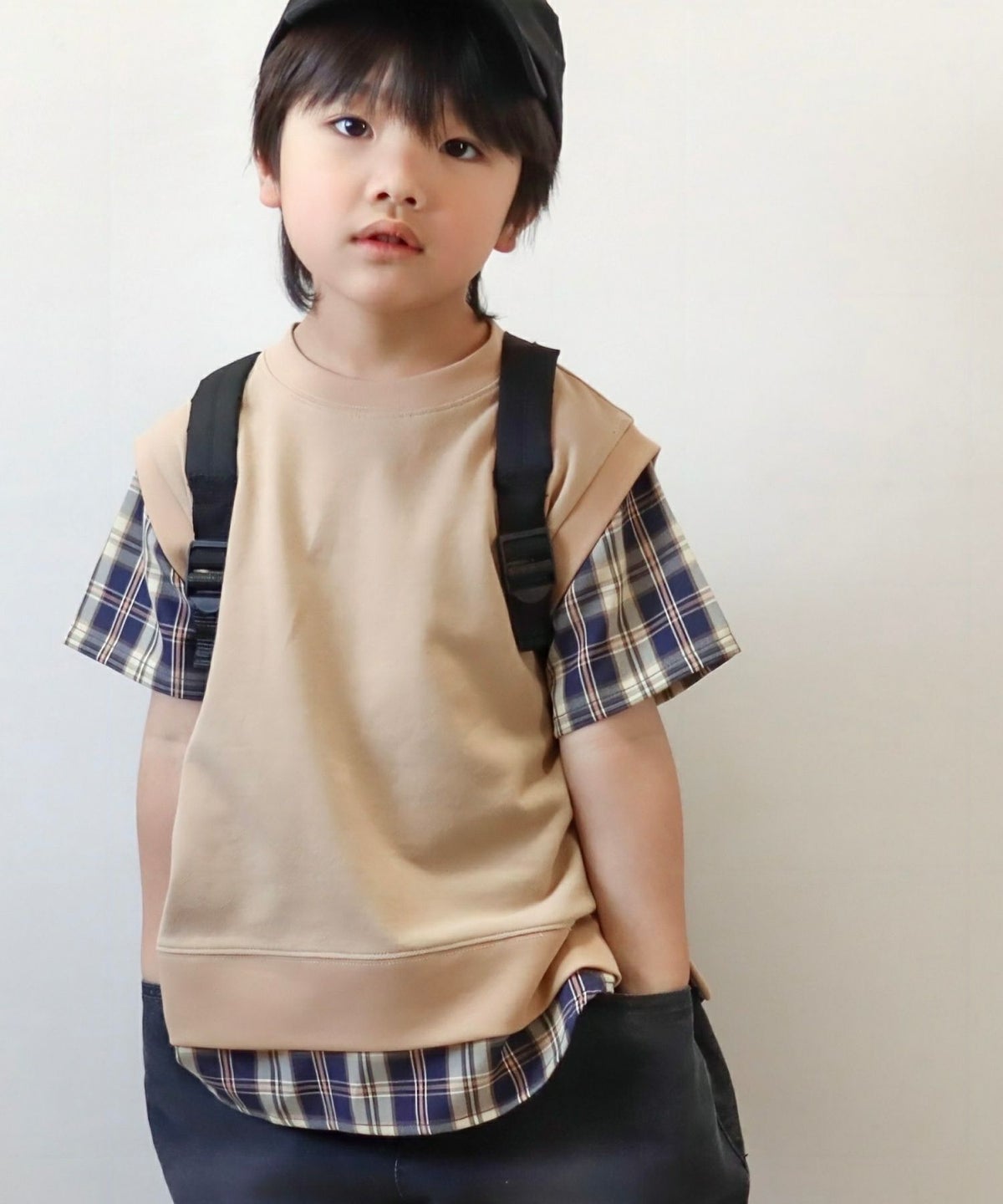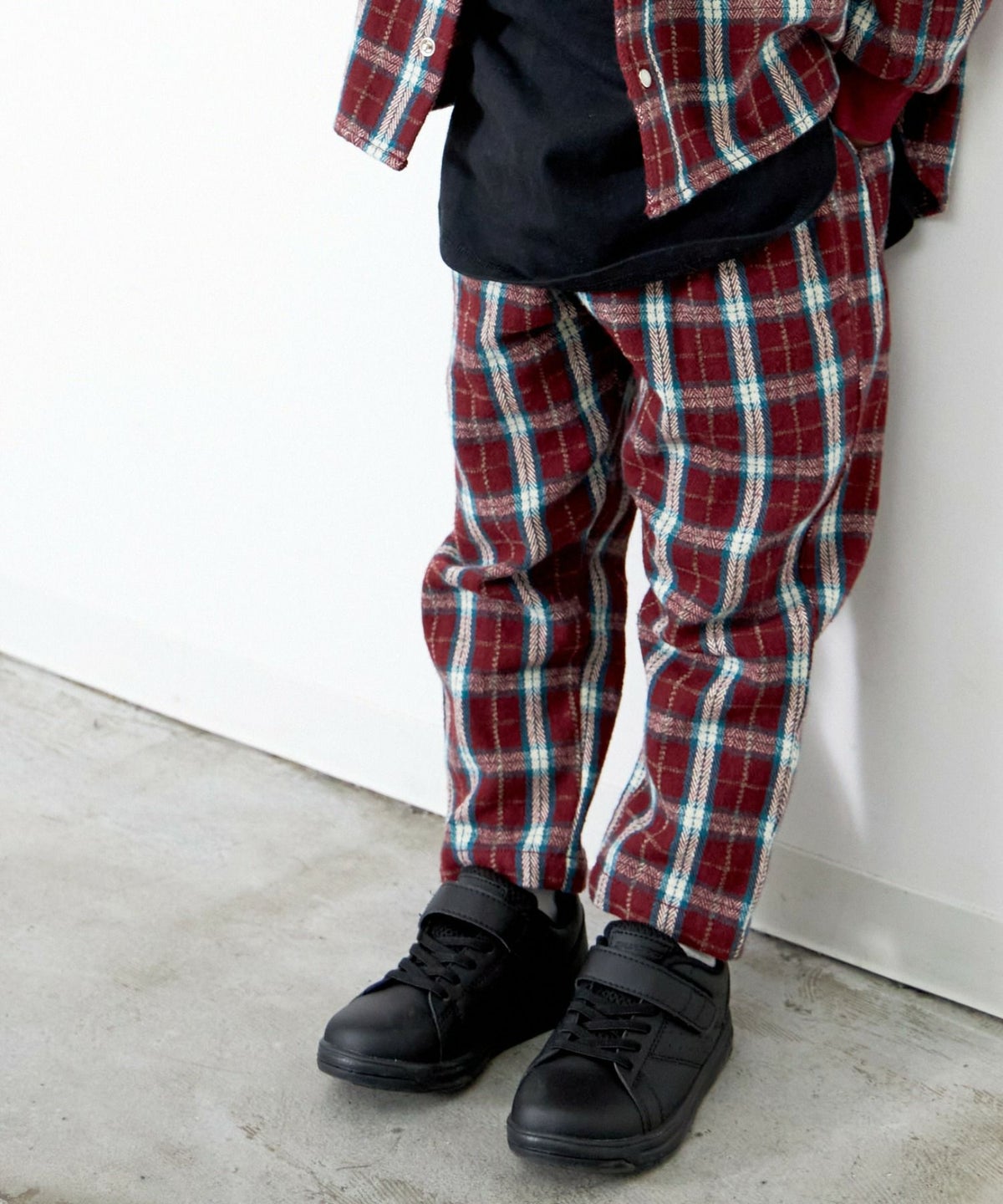 【セール】セットアップできるチェックテーパードパンツ■90~140cm