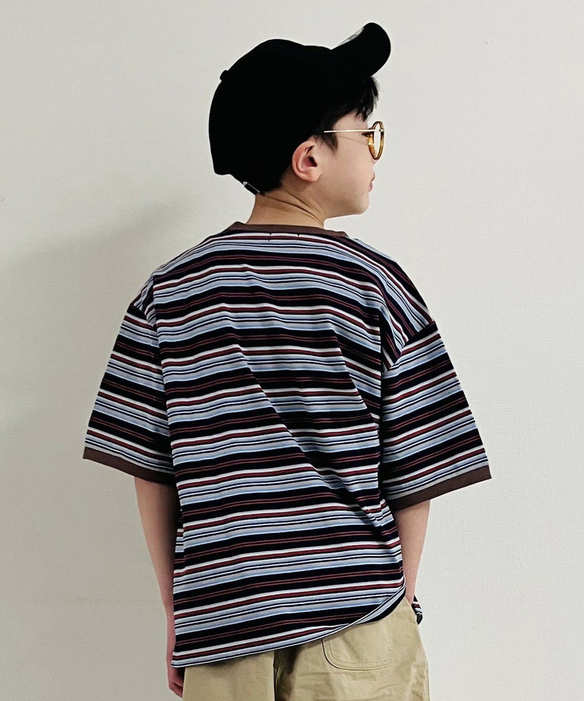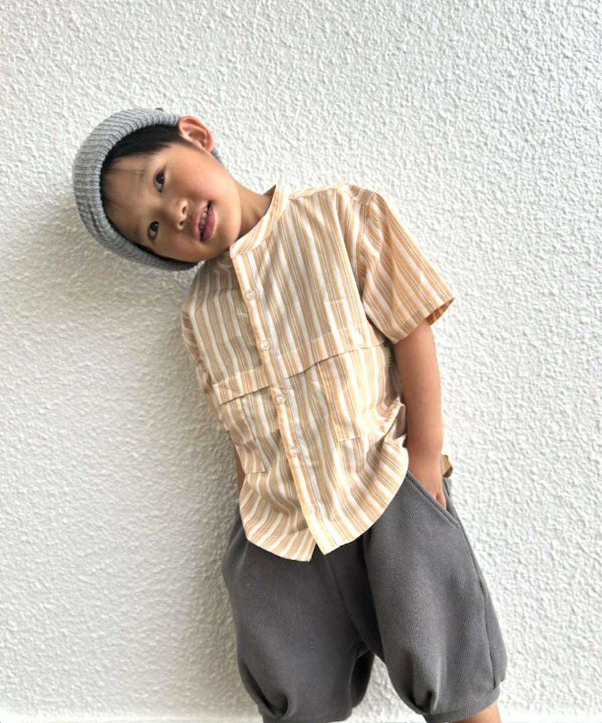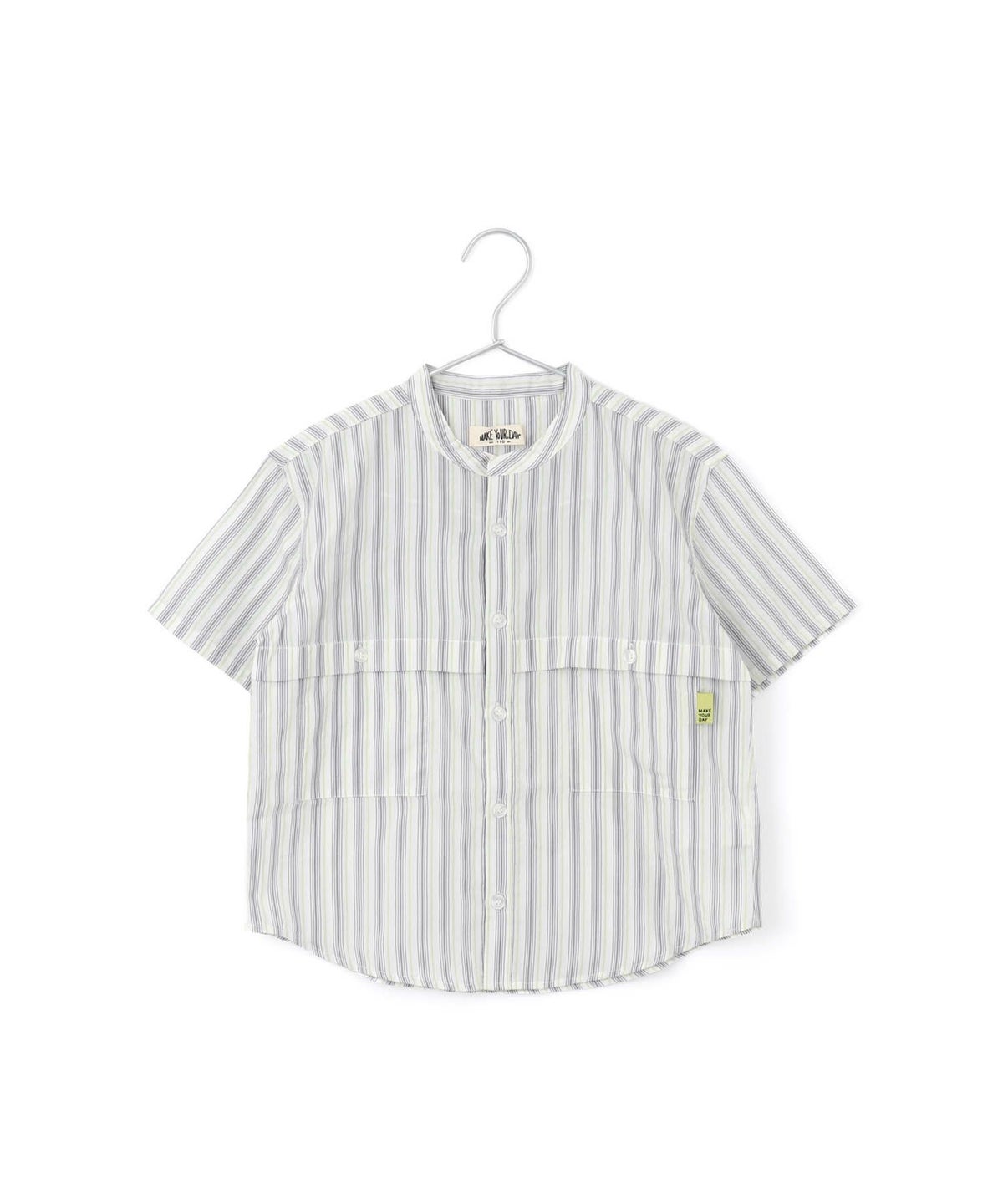 【セール】マルチストライプ半袖バンドカラーシャツ■90~140cm
