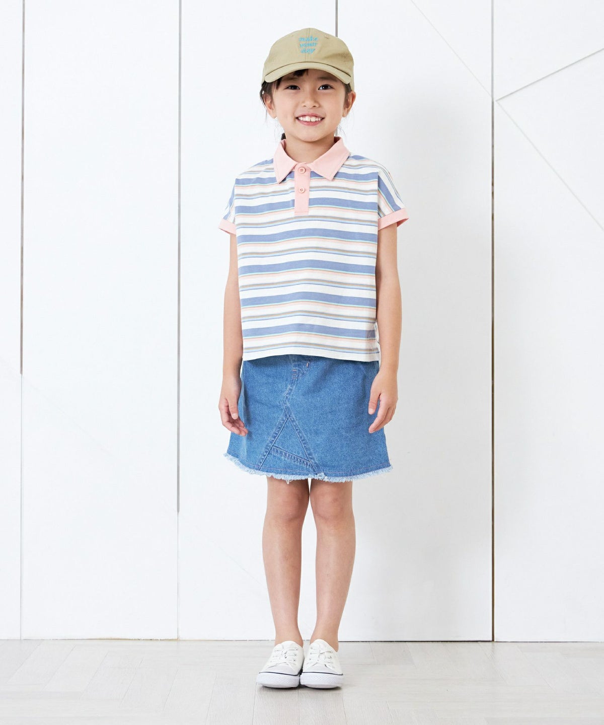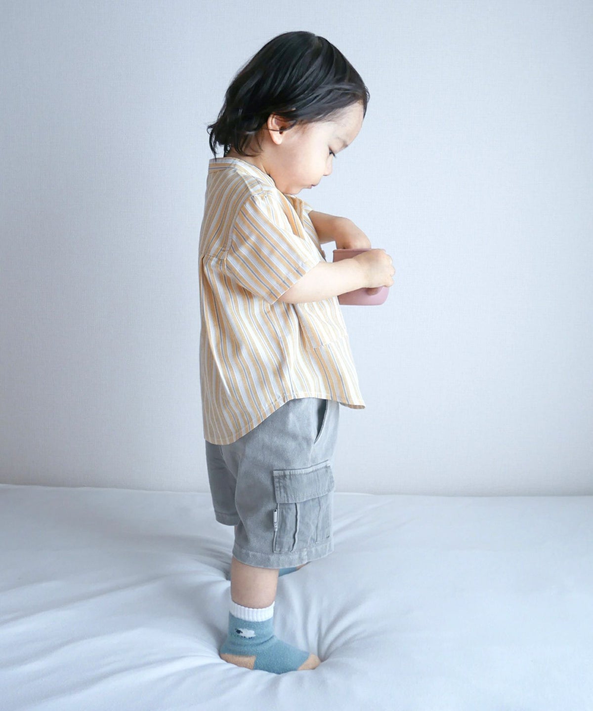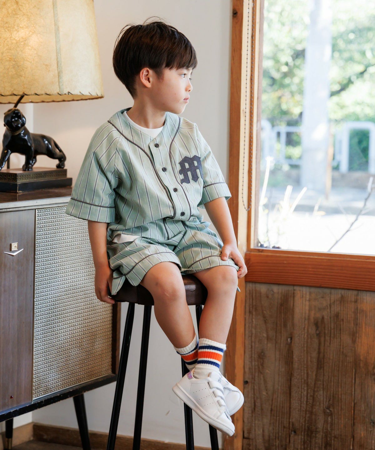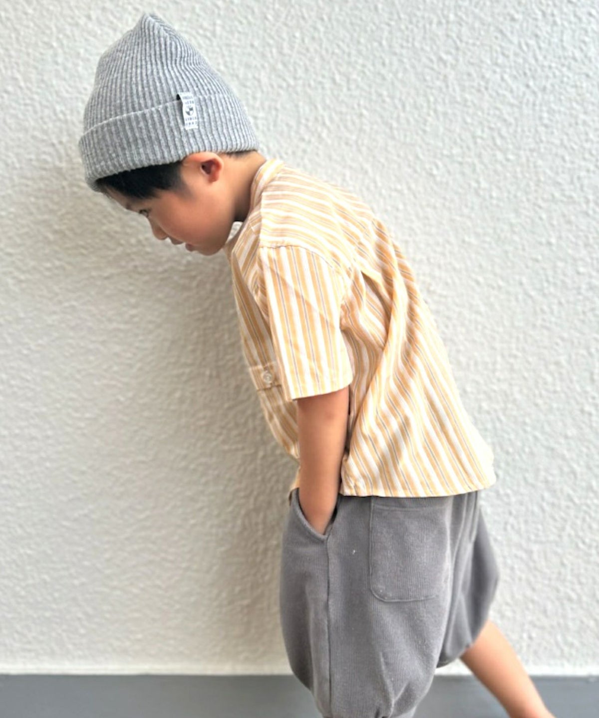 【セール】マルチストライプ半袖バンドカラーシャツ■90~140cm