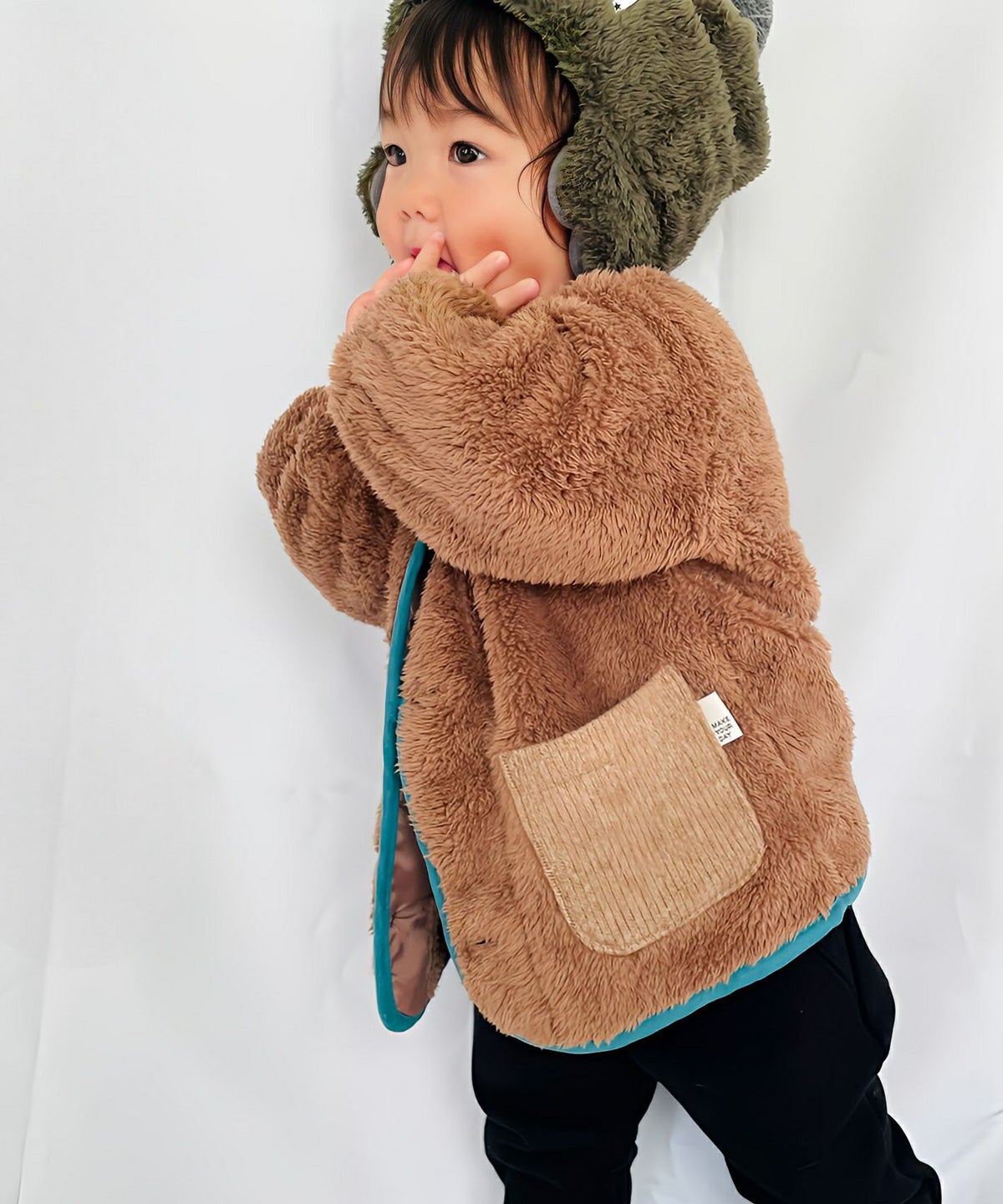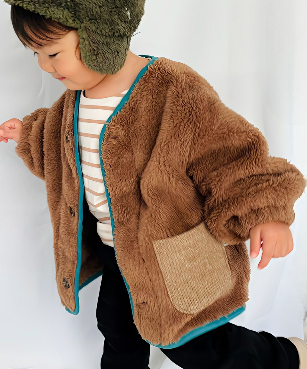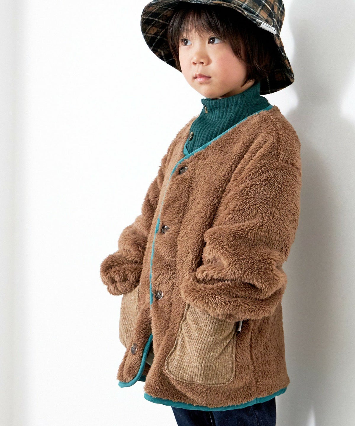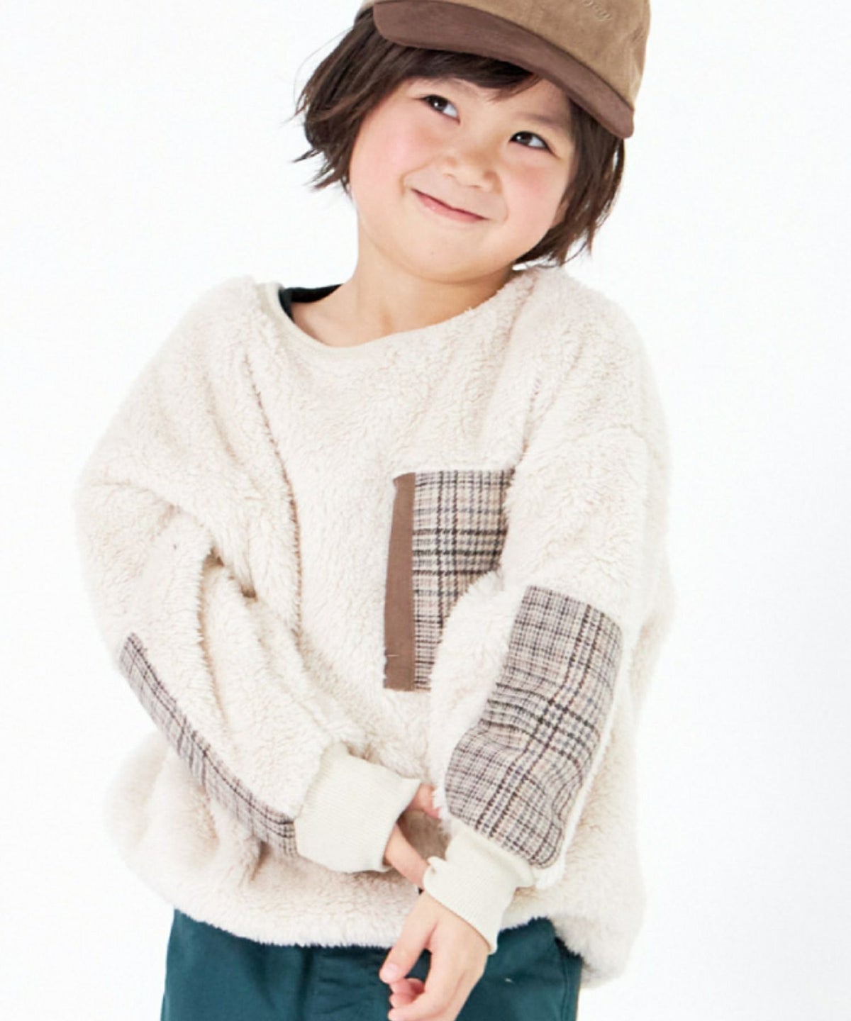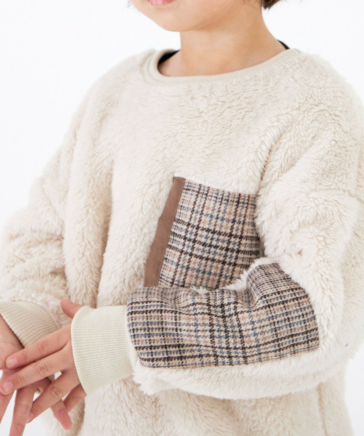 【セール】チェックポケット両面ボアプルオーバー■80~140cm