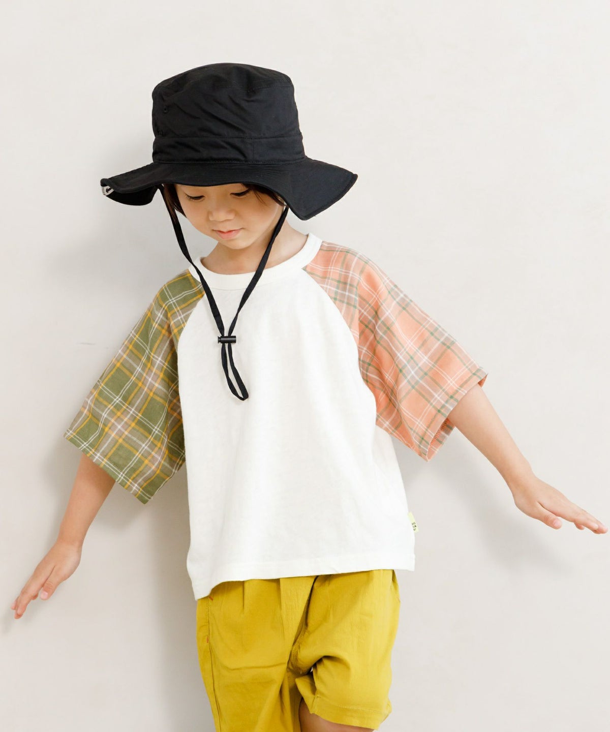 【セール】袖素材切替ラグラン半袖Tシャツ■90~140cm
